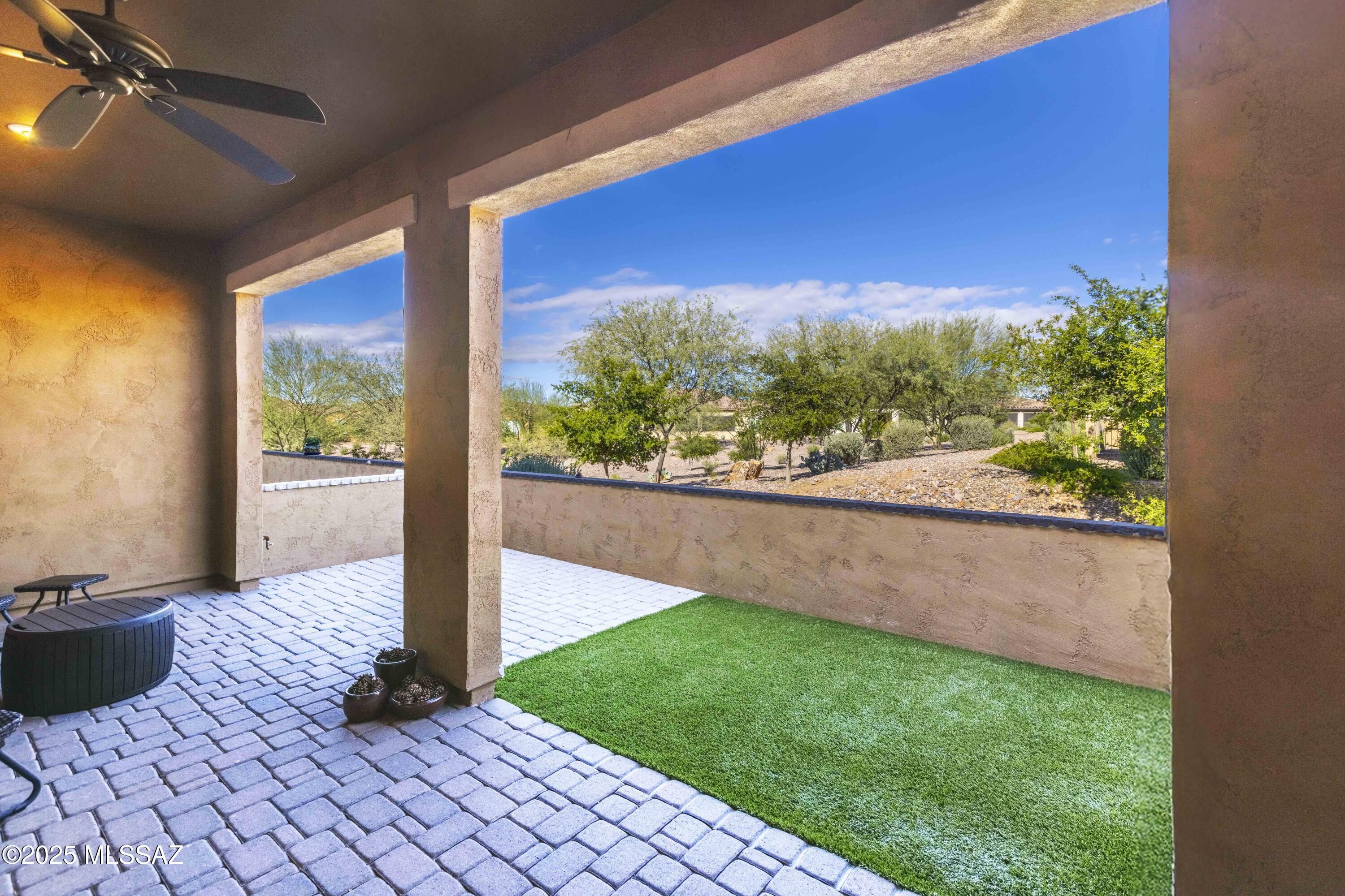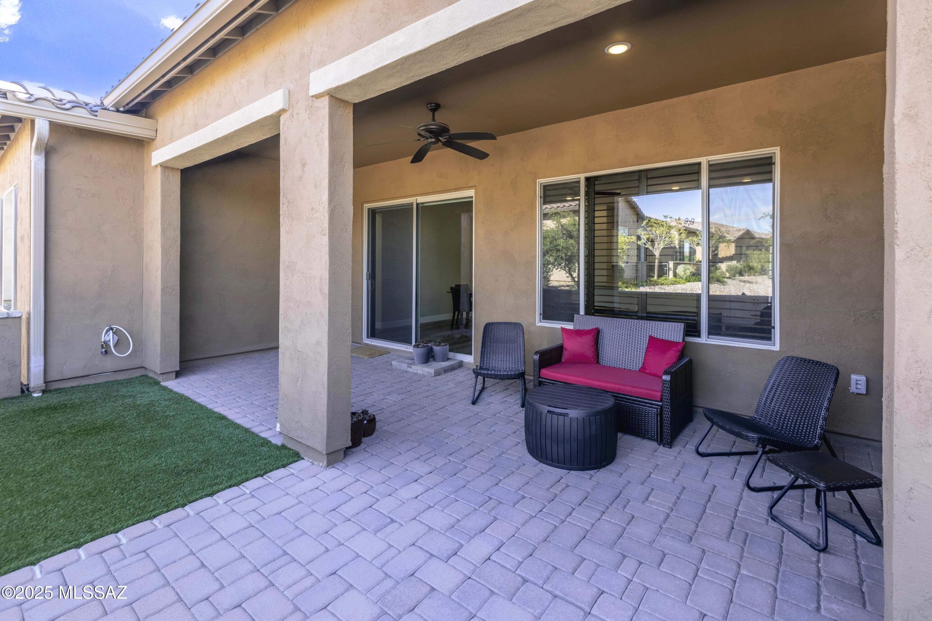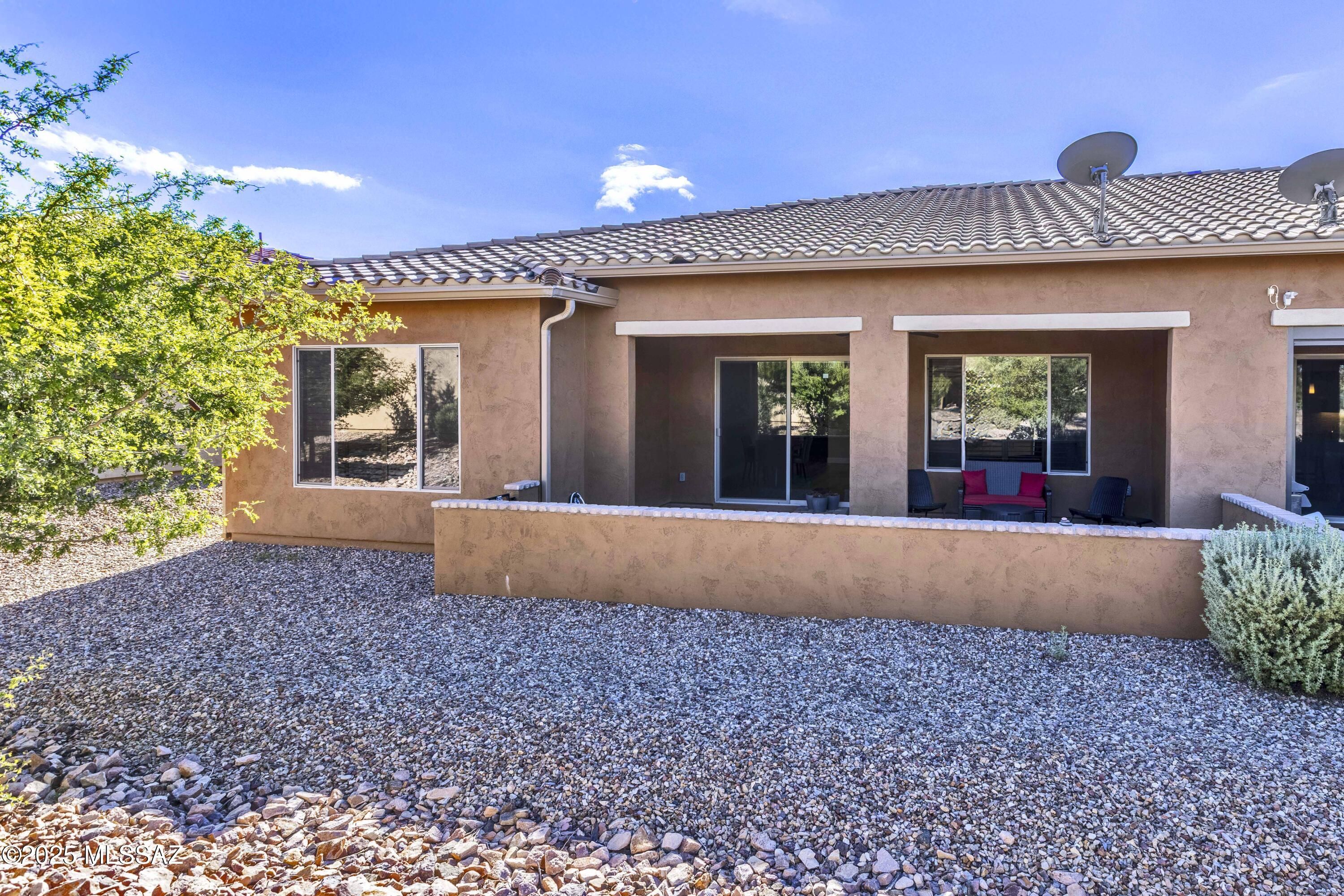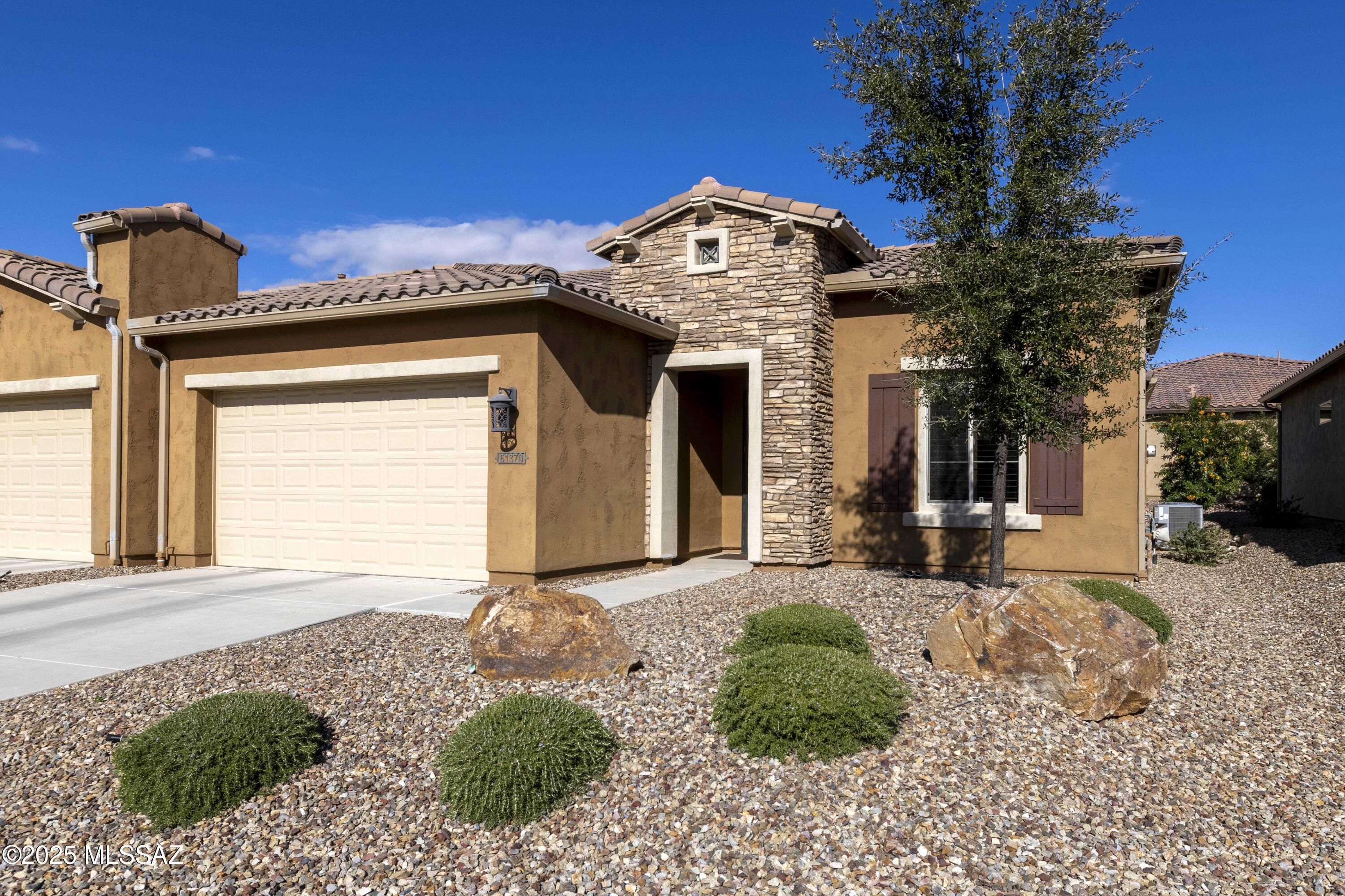 This SaddleBrooke Ranch Ora-plan villa offers 2 bedrooms, 2 baths, a 2-car garage, and a bright north-south direction that fills the home with natural light. The owner completed approximately $60,000 in upgrades, including a fully remodeled primary bathroom with new flooring, cabinetry, and a tiled walk-in shower. Quartz countertops, laminate flooring, a whole-house surge protector, and a water softener complete the interior.The backyard is rare for a villa, with snake fencing, some turf, and a vast open space behind for added privacy. Sony 65'' TV & sound bar, and a full-size bed all convey. With upgrades, a unique outdoor space, and full access to SaddleBrooke Ranch amenities, this villa offers comfortable, low-maintenance luxury living! Call today to schedule a Showing!