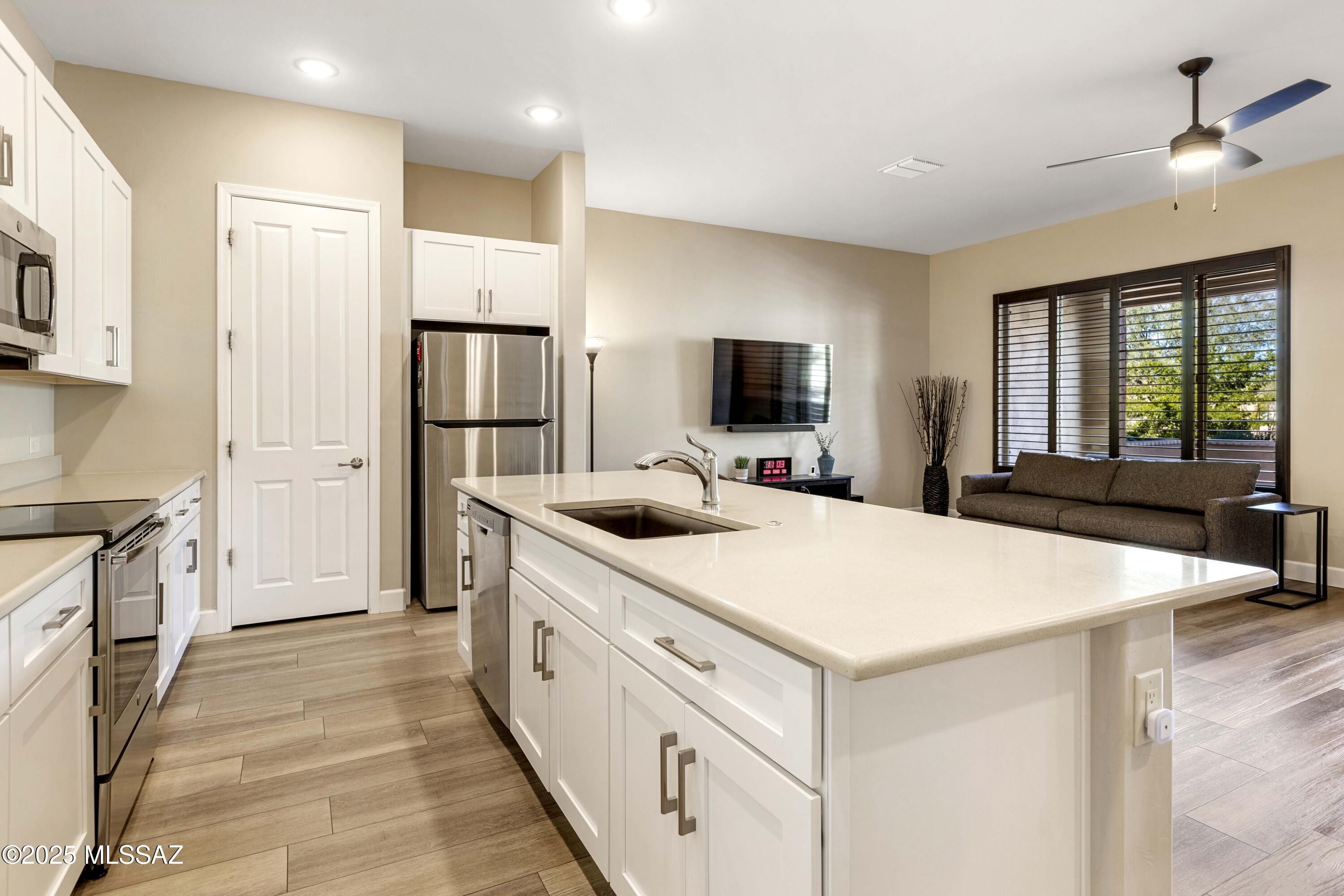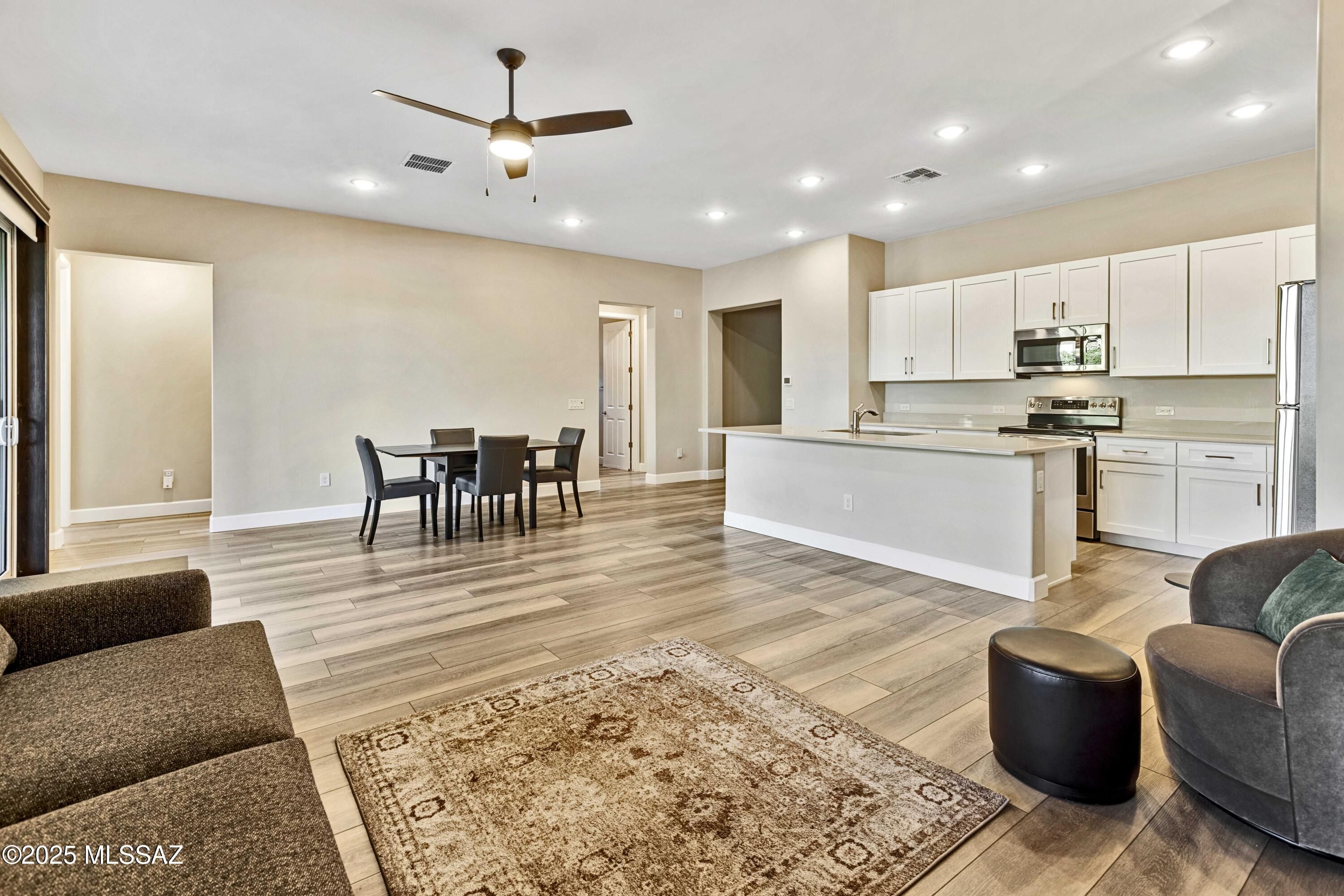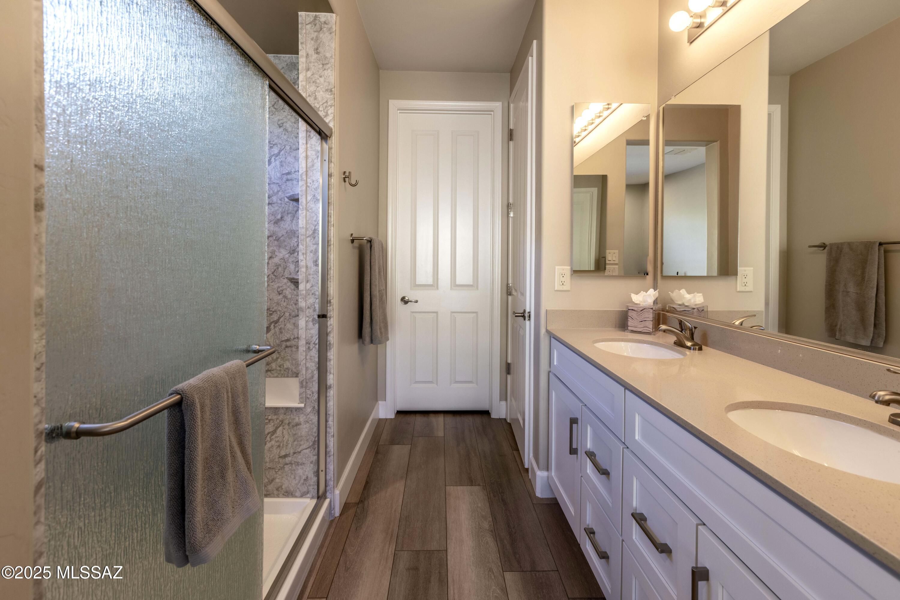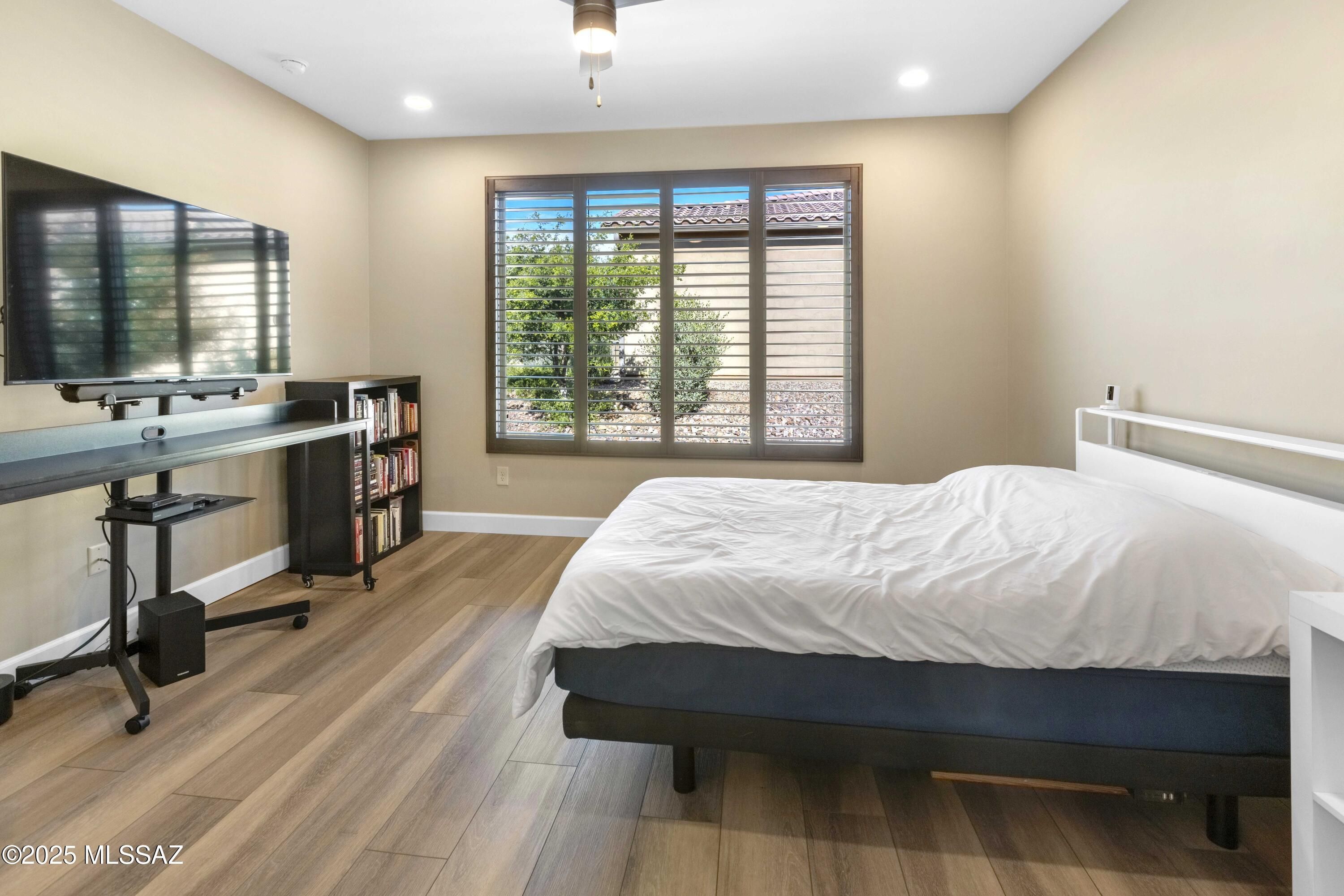 This SaddleBrooke Ranch Ora-plan villa offers 2 bedrooms, 2 baths, a 2-car garage, and a bright north-south direction that fills the home with natural light. The owner completed approximately $60,000 in upgrades, including a fully remodeled primary bathroom with new flooring, cabinetry, and a tiled walk-in shower. Quartz countertops, laminate flooring, a whole-house surge protector, and a water softener complete the interior.The backyard is rare for a villa, with snake fencing, some turf, and a vast open space behind for added privacy. Sony 65'' TV & sound bar, and a full-size bed all convey. With upgrades, a unique outdoor space, and full access to SaddleBrooke Ranch amenities, this villa offers comfortable, low-maintenance luxury living! Call today to schedule a Showing!