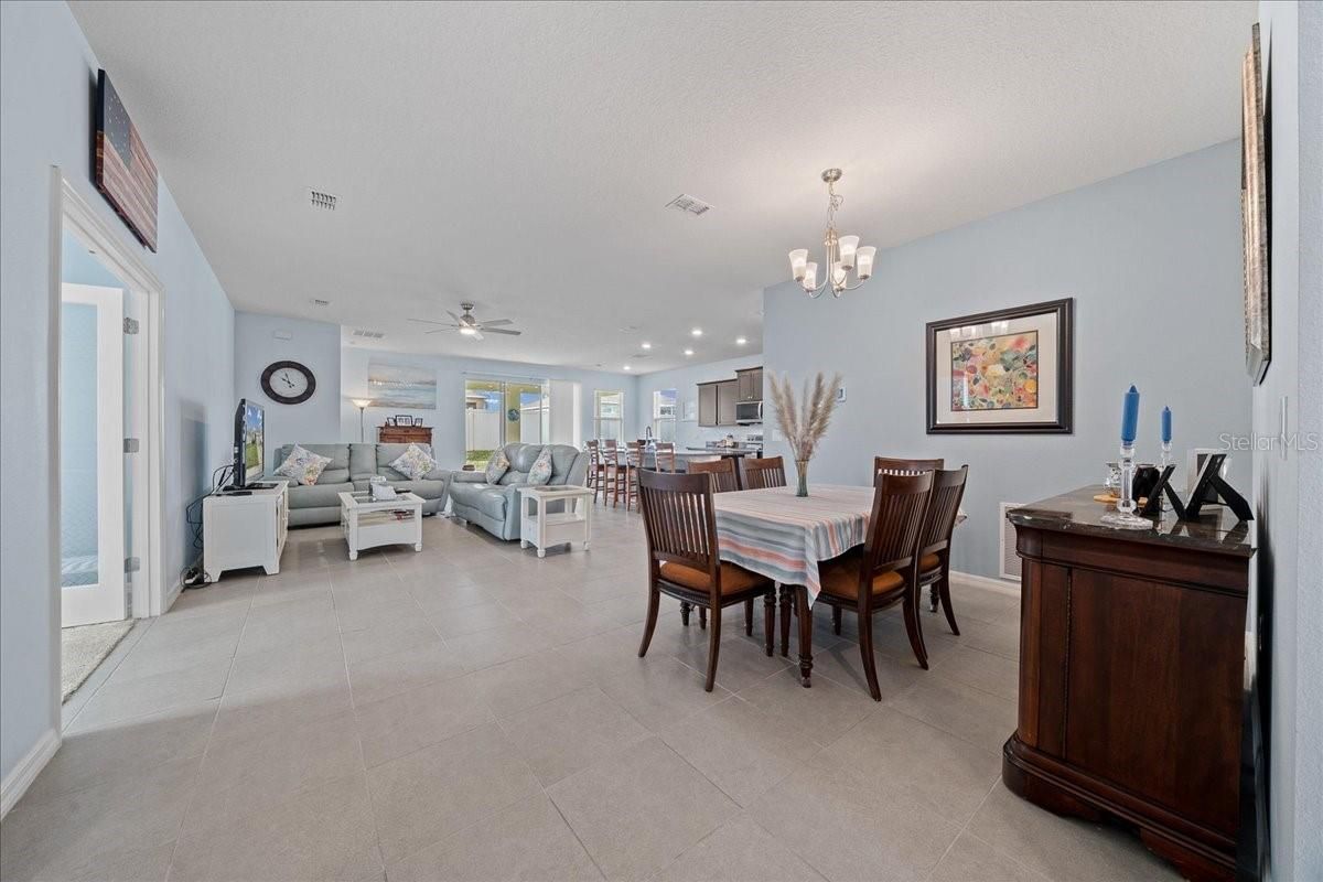 - Ceiling Fan(s), Kitchen/Family Room Combo, Living/Dining Room, Open Floorplan, Main Level Primary, Smart Home, Solid Surface Counters, Split Bedrooms, Thermostat, Tray Ceiling(s), Walk-In Closet(s), Window Treatments