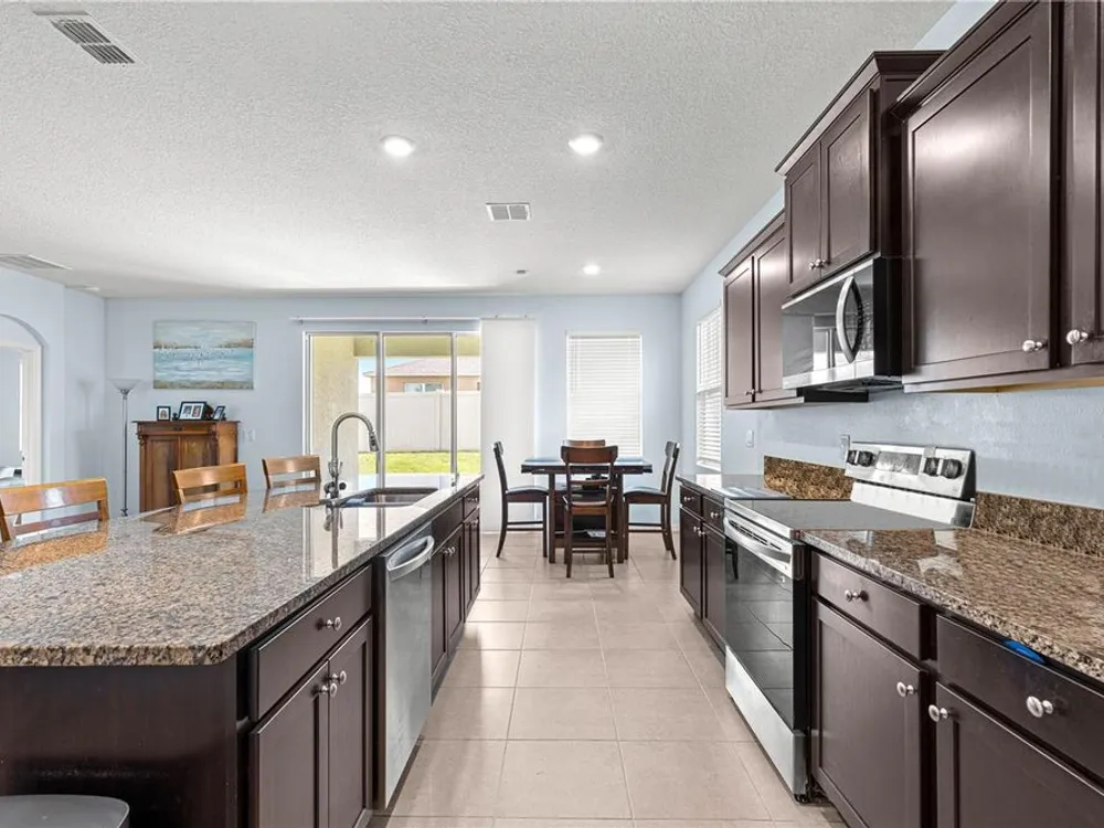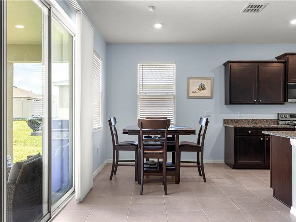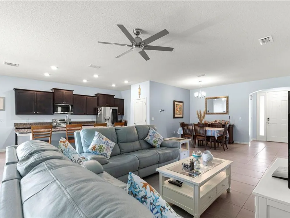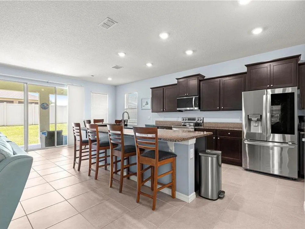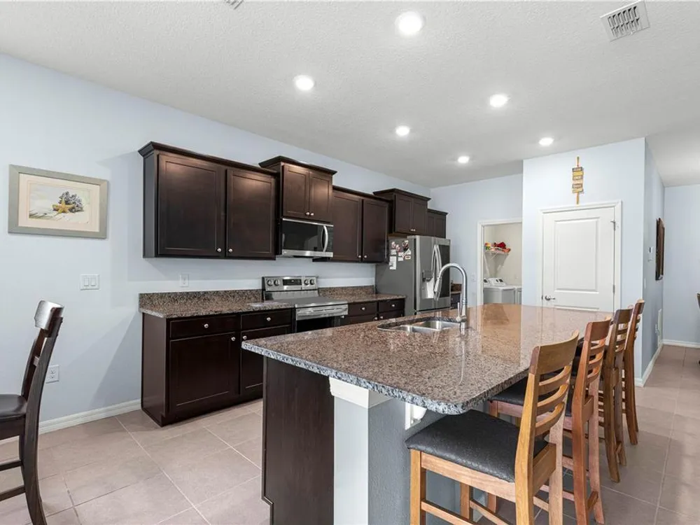 Welcome to this immaculate 3-bedroom, 2-bathroom home nestled in a highly sought-after 55+ gated community. Thoughtfully updated, this manicured property offers both comfort and modern convenience. The spacious kitchen features high-end stainless steel appliances, granite countertops, rich cabinetry, and an oversized island with bar seating—perfect for both cooking and entertaining. A separate dining area completes the space, ideal for family gatherings or hosting friends. The open-concept living area is warm and inviting, enhanced by updated light fixtures, elevated blinds, and sliding glass door coverings that provide style and functionality. Both bathrooms are tastefully designed with modern finishes, and the home includes a dedicated indoor laundry room for added convenience. Additional highlights include a garage door, rebuilt garage door wheels and new springs less than 2 years old, ample natural light, and a layout designed for both relaxation and entertaining. This home is located in a secure, active-adult gated community, offering peace of mind and a vibrant lifestyle. Whether you’re enjoying community amenities or the comfort of your own beautifully maintained space, this property is truly move-in ready.