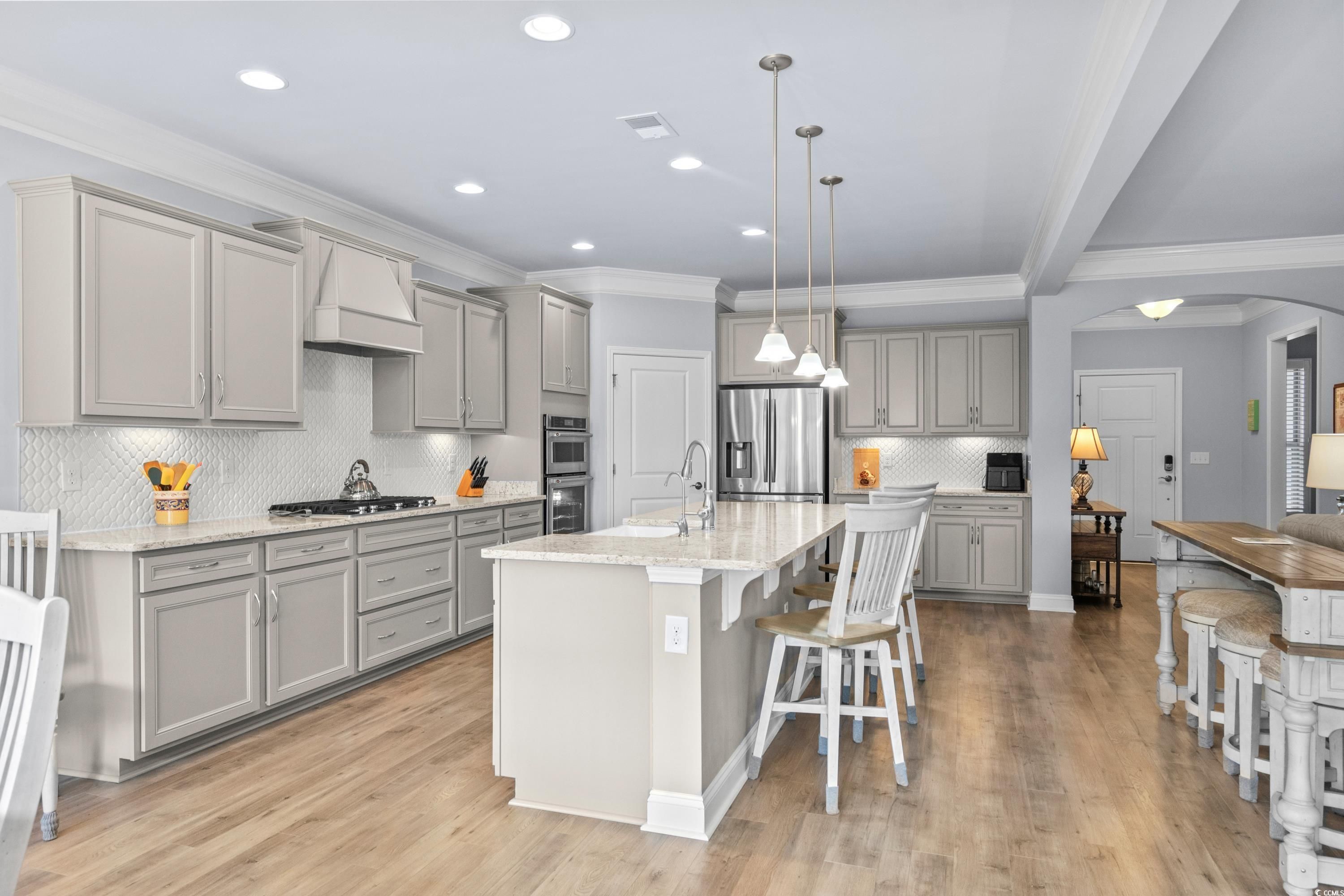 Welcome to your new home in the prestigious Del Webb at Grande Dunes community, an exclusive retreat designed for those 55 and above. Perfectly located just a short golf cart ride from shopping, dining, and the beach, this Dunwoody Way floor plan blends comfort, elegance, and functionality in every detail. Featuring 3 bedrooms, 3 full bathrooms, and a versatile flex-room that can serve as a study, library or den, the home is thoughtfully positioned on a serene, private homesite with beautifully maintained landscaping that enhances its curb appeal. A whole home generator provides year-round peace of mind, and the oversized attic features a convenient walk-up staircase, making it far easier than traditional pull-down access and offering abundant, easily accessible storage Step inside to an open-concept design that invites effortless living and entertaining. At the heart of the home, a stunning gourmet kitchen seamlessly flows into the expansive great room. The kitchen is a chef’s dream, featuring built-in appliances, a 5-burner cooktop, quartz countertops, and a spacious island perfect for gatherings. A large farmhouse sink serves as both a functional centerpiece and a design statement, while the reverse osmosis water filtration system provides fresh, purified water right at the sink. Soft-close cabinetry with pull-out trays and a walk-in pantry ensure both style and practicality. From the adjoining screened porch, take in tranquil views of the private backyard, an ideal setting for relaxation or hosting friends. The study provides a quiet and versatile space, complete with a custom built-in desk that makes it ideal for working from home, pursuing hobbies, or simply staying organized. Elegant finishes continue throughout the home, including upgraded trim, two-piece crown molding, six-inch baseboards, and brushed nickel fixtures. The owner’s suite is a private retreat with peaceful backyard views, a custom-designed walk-in closet, and a spa-like ensuite featuring a luxurious walk-in shower. Each guest bedroom offers its own private bath, including a spacious guest suite with walk-in shower, providing comfort and privacy for visitors. Additional features showcase the home’s thoughtful design and modern conveniences, from energy-efficient details like radiant barrier roof sheathing to the screened lanai that seamlessly blends indoor and outdoor living. The spacious 2.5-car garage offers abundant storage and includes a dedicated bay for golf cart parking. Everyday peace of mind is provided by practical enhancements such as an irrigation system, gutters, a whole-home water softener, and a built-in pest protection system, ensuring this residence is every bit as reliable as it is beautiful. The Del Webb amenities are unparalleled, offering a vibrant active community experience. Meet new friends at the monthly events and daily activities hosted at the Amenity Center, take a refreshing dip in the indoor or outdoor pool, or stay active with facilities like the gym, bocce ball, pickleball, and tennis courts. Enjoy leisurely strolls or bike rides along the countless sidewalks and the paved path running alongside the beautiful intracoastal waterfront. Running errands or heading to the beach is a breeze with your own golf cart—the ultimate beach life necessity! And speaking of the beach, easy access is granted via the Grande Dunes Beach Club, a delightful amenity included in your monthly HOA dues. Additionally, landscaping maintenance is covered, ensuring the community stays beautiful and you have more time to enjoy the exceptional lifestyle Del Webb offers Don’t miss the chance to experience this exceptional home, where luxury, comfort, and functionality come together in perfect harmony. Schedule your tour today and start living the dream in Del Webb at Grande Dunes!