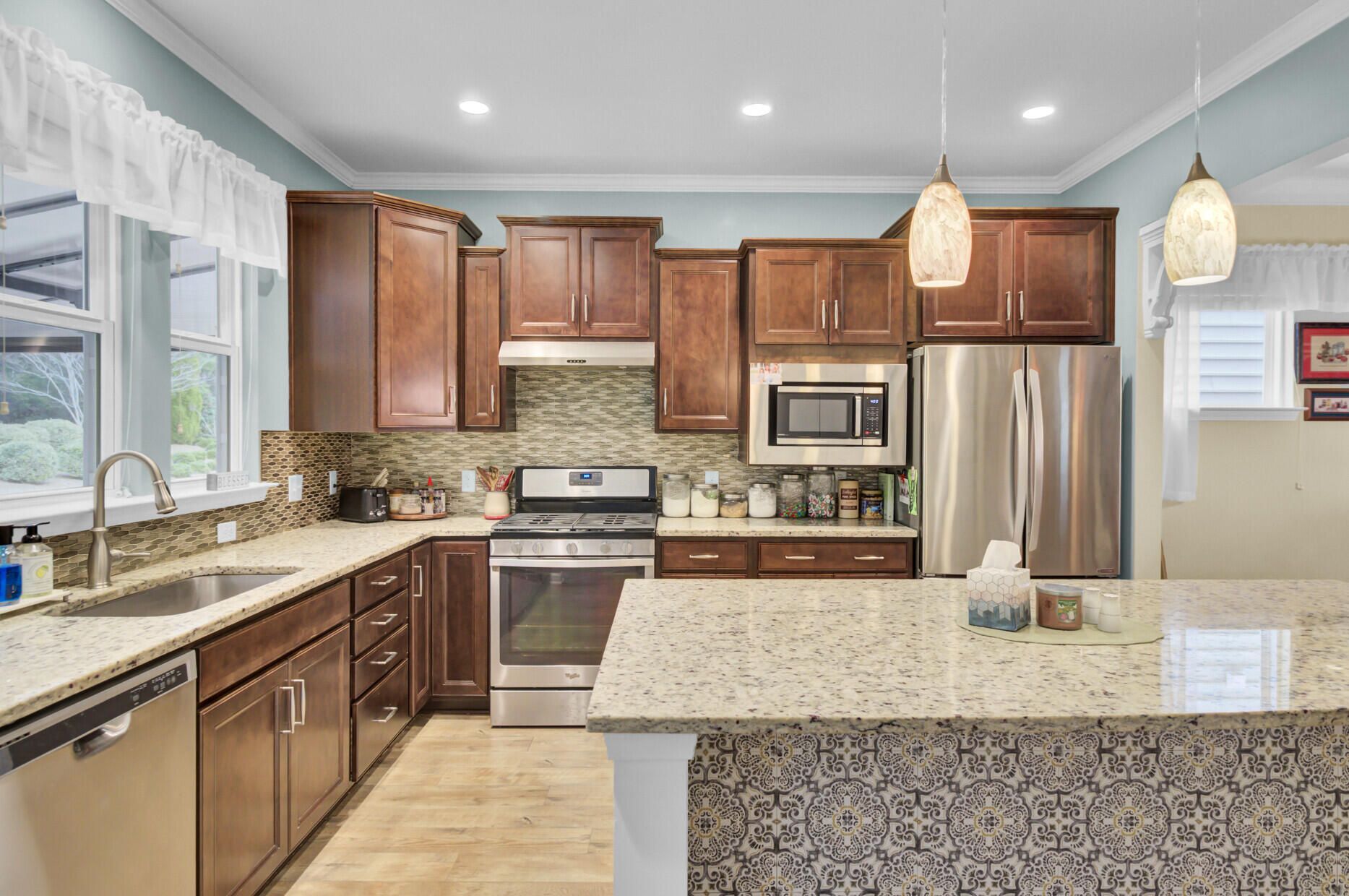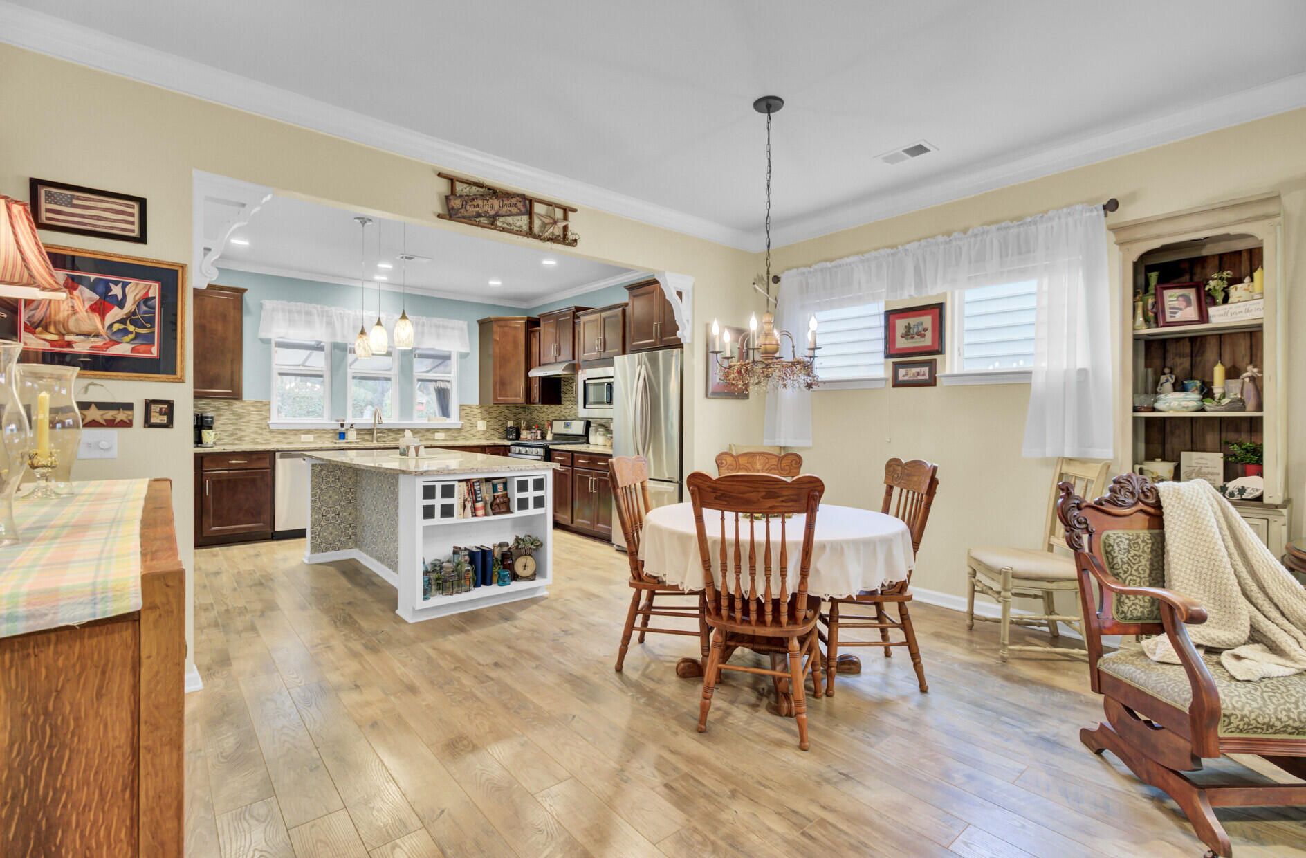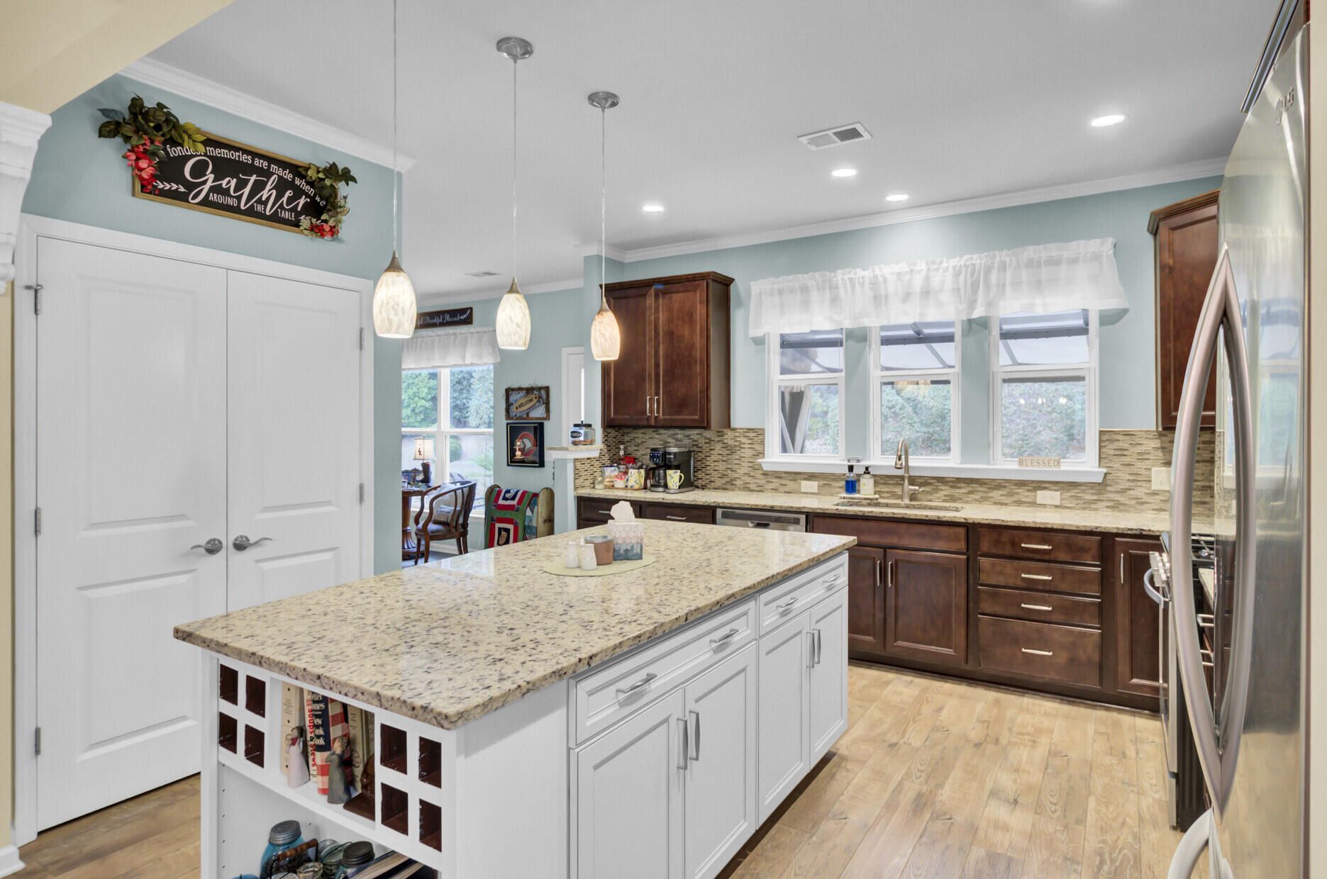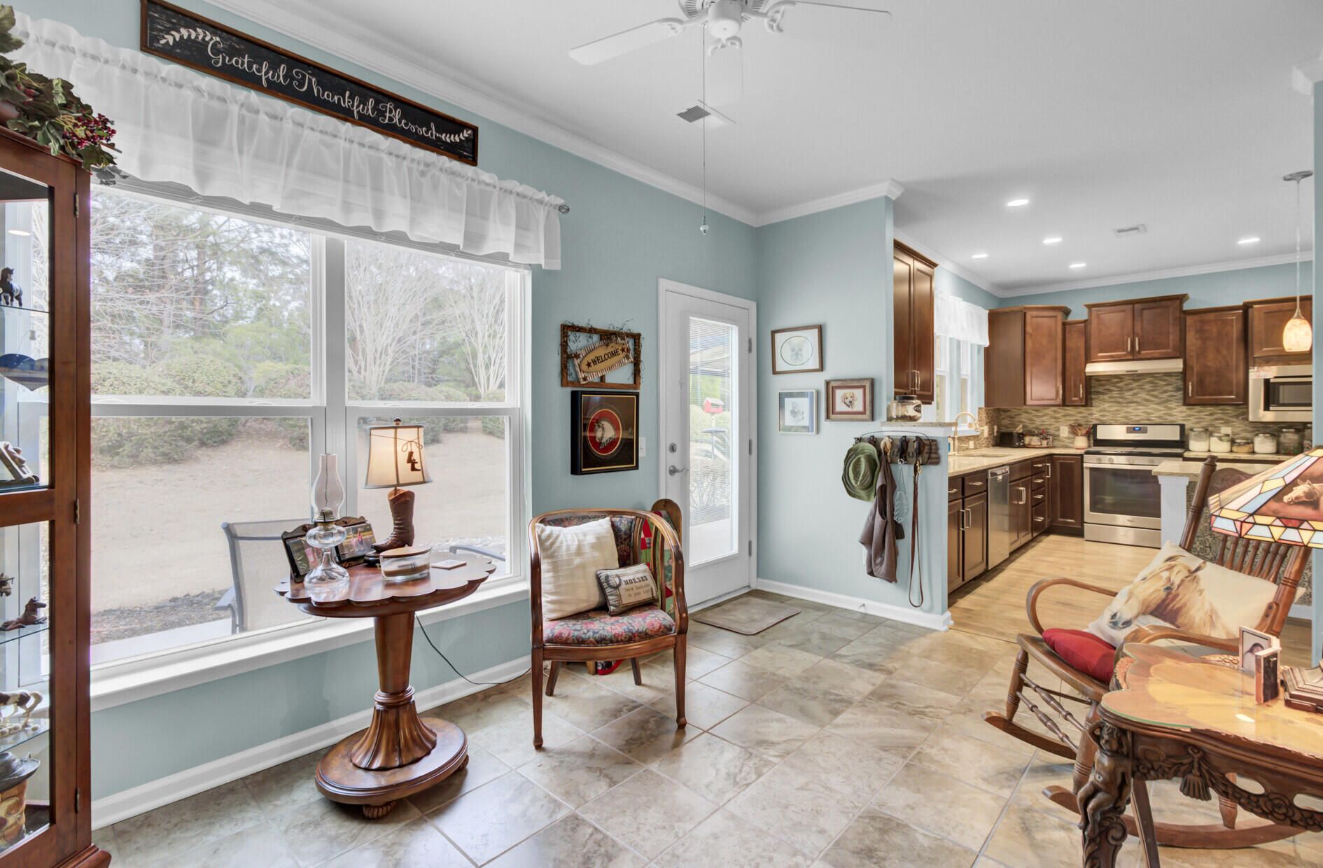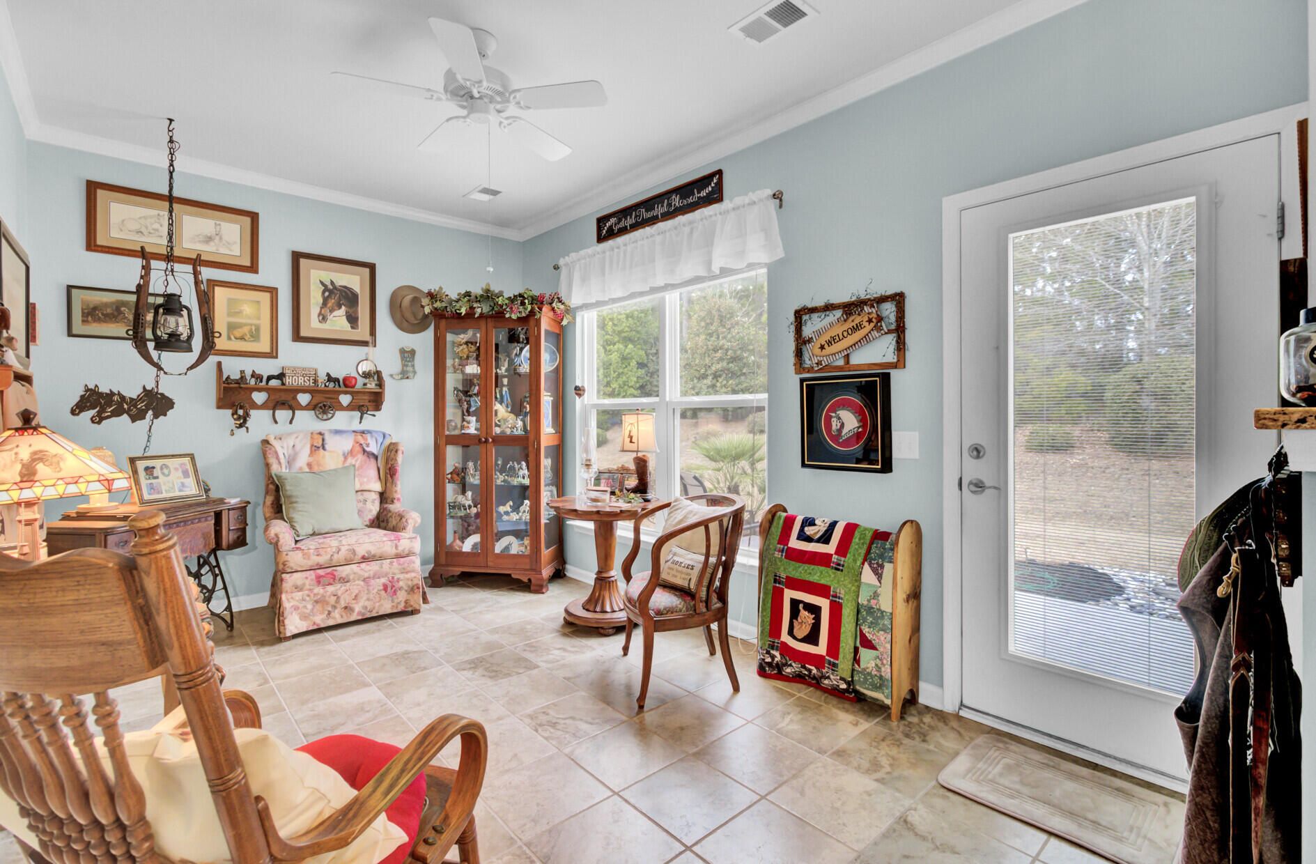 - Smooth Ceilings, High Ceilings, Kitchen Island, Ceiling Fan(s), Living/Dining Room, Home Office, Pantry, Sunroom