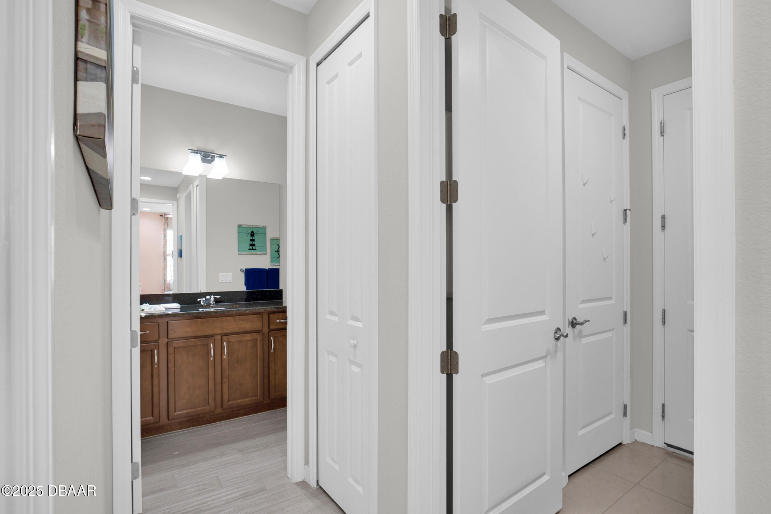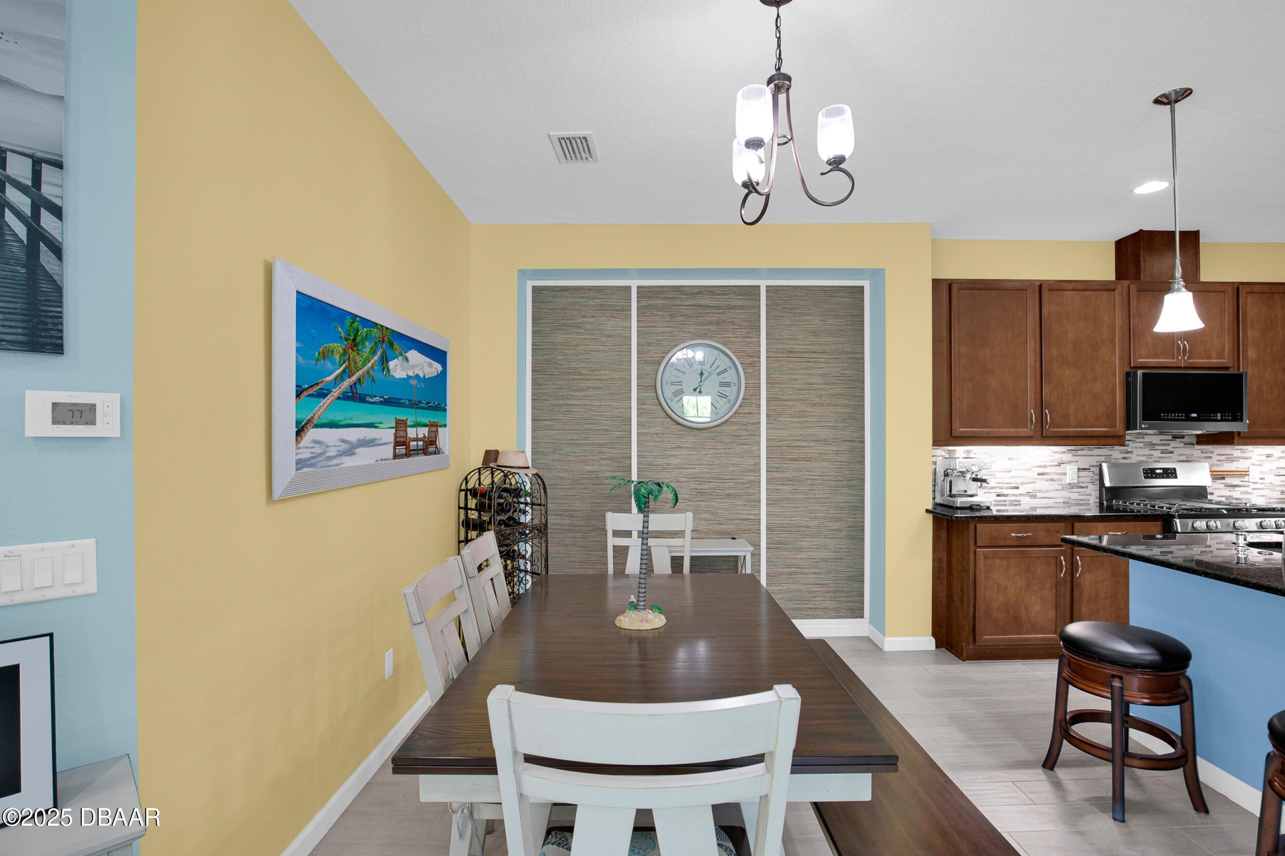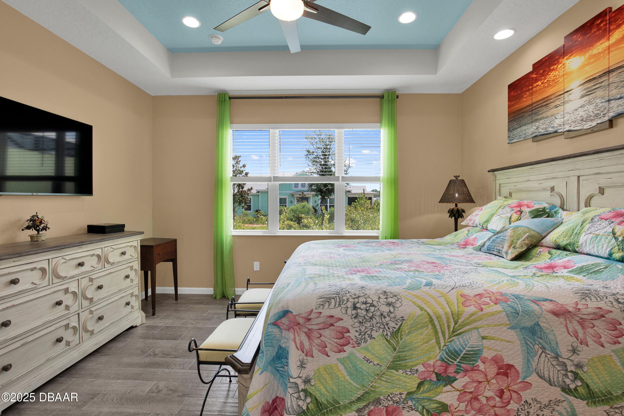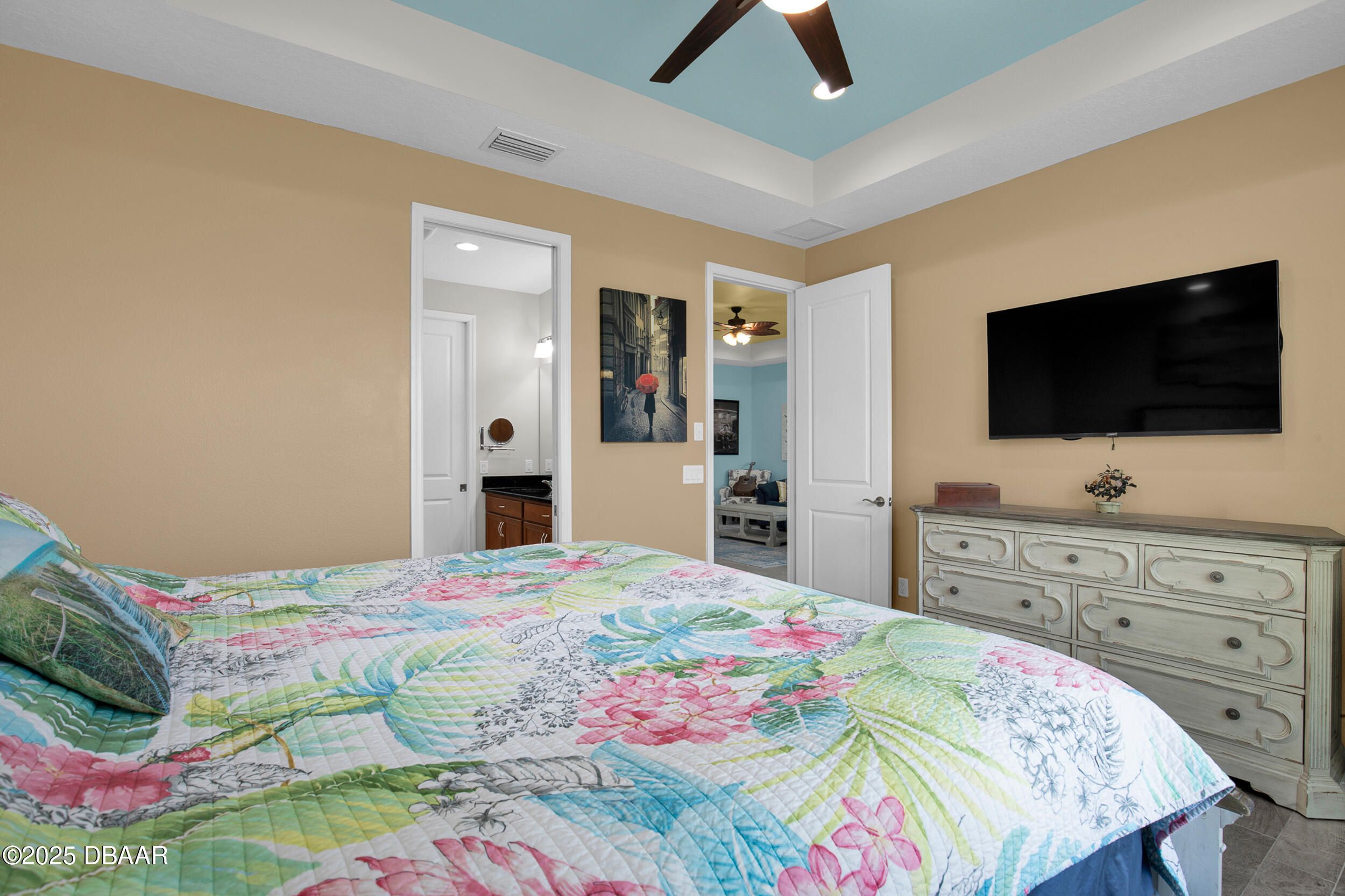 Live vibrantly in this upgraded Antigua Villa in Latitude Margaritaville—perfect for those seeking the ability to live their best life now. Enjoy light plank tile flooring, tropical designer paint, and French doors on the den for a flexible guest space or hobby room. The kitchen shines with stainless steel appliances, gas range, granite counters, glass tile backsplash, pendants over the island, and under-cabinet lighting. Tropical ceiling fans, 8' interior doors, recessed lighting in all rooms add comfort and style. Primary and Guest bathrooms have walk in shower. Guest area has pocket door for additional privacy. Relax on the screened lanai with privacy shades with friends & family. Just minutes from the beach and packed with amenities—fitness center, pools, pickleball, live music, and more—this home is your gateway to an active, carefree lifestyle. Furniture is available . Garage freezer and refrigerator convey.