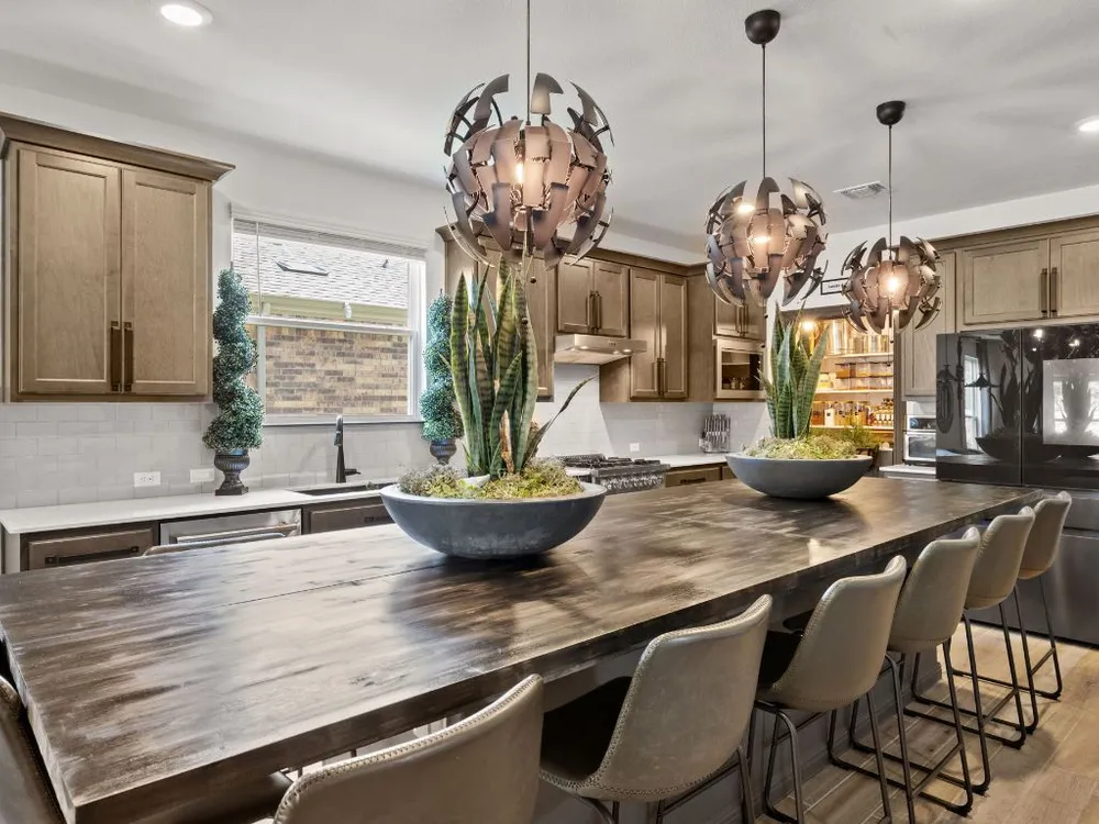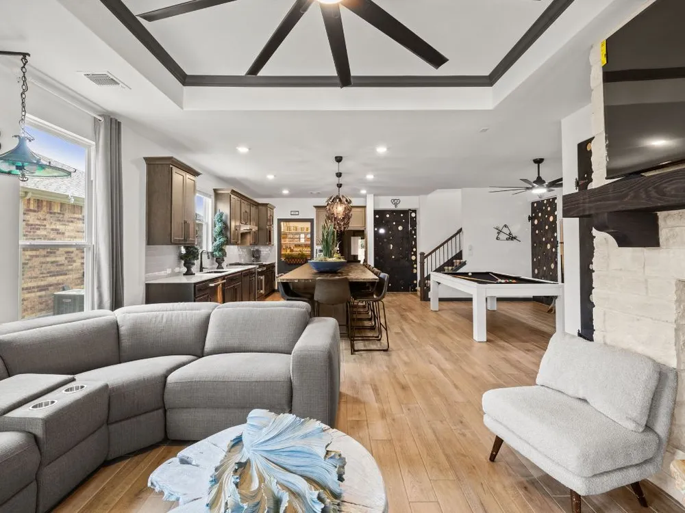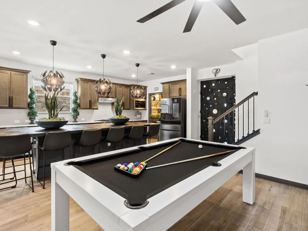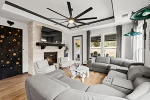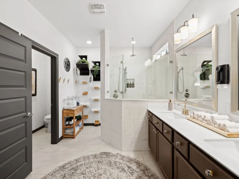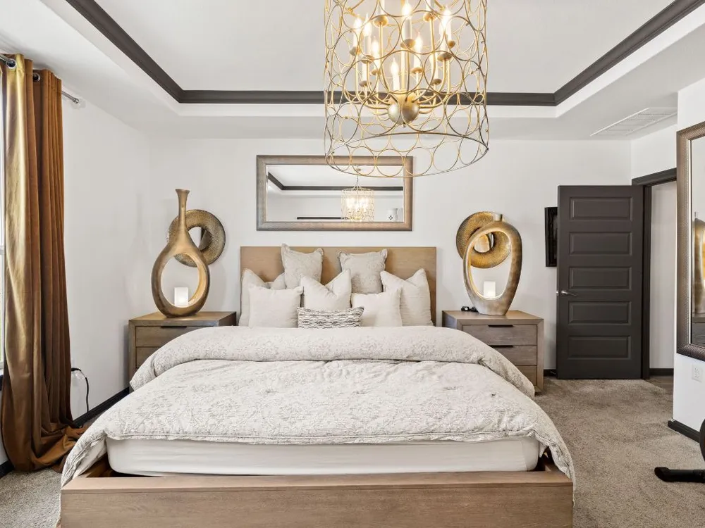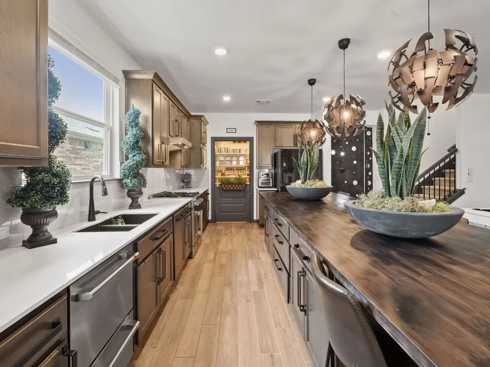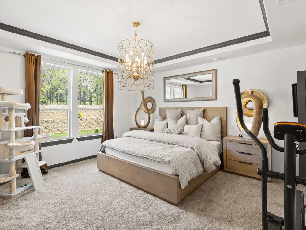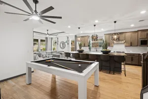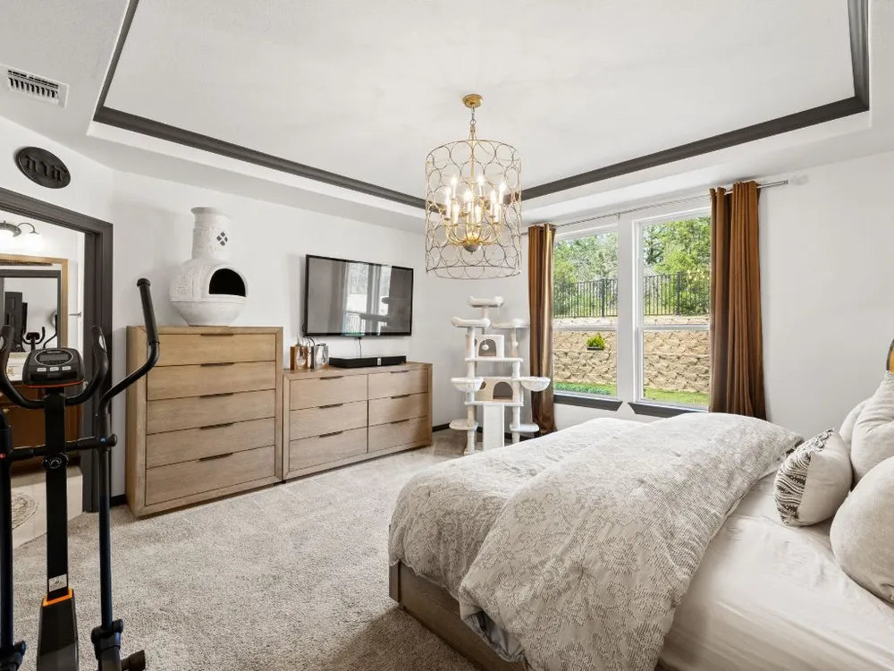 - Breakfast Bar, Tray Ceiling(s), Ceiling Fan(s), Chandelier, Double Vanity, Entrance Foyer, Eat-in Kitchen, French Door(s)/Atrium Door(s), InteriorSteps, Kitchen Island, Multiple Living Areas, Main Level Primary, Open Floorplan, Pantry, Quartz Countertops, Recessed Lighting, Smart Home, Walk-In Closet(s)