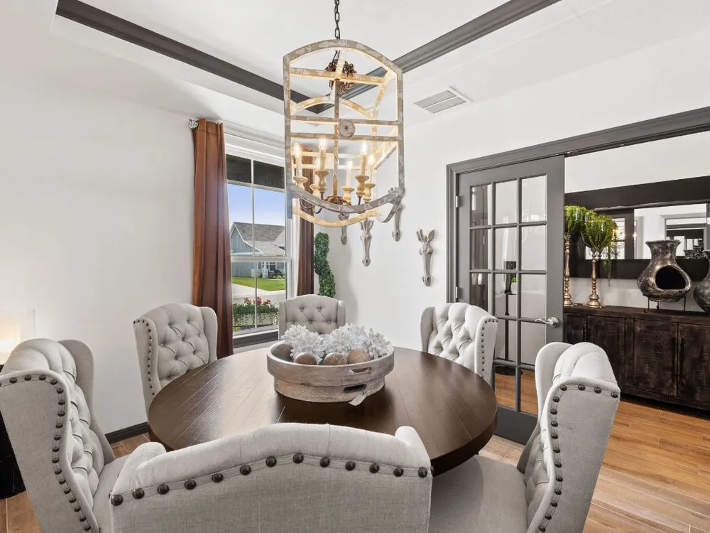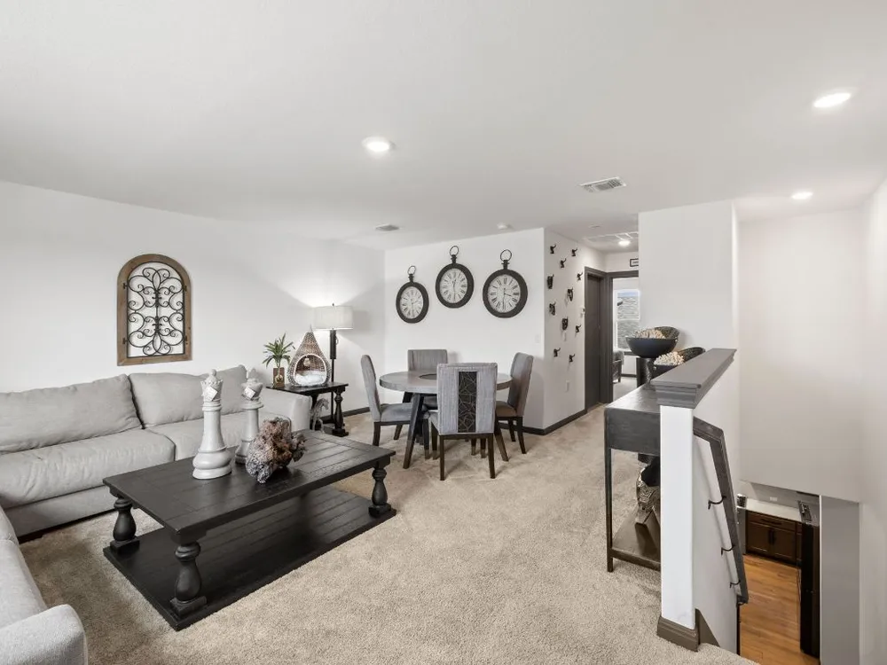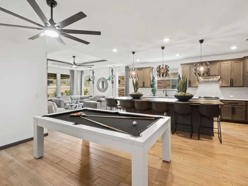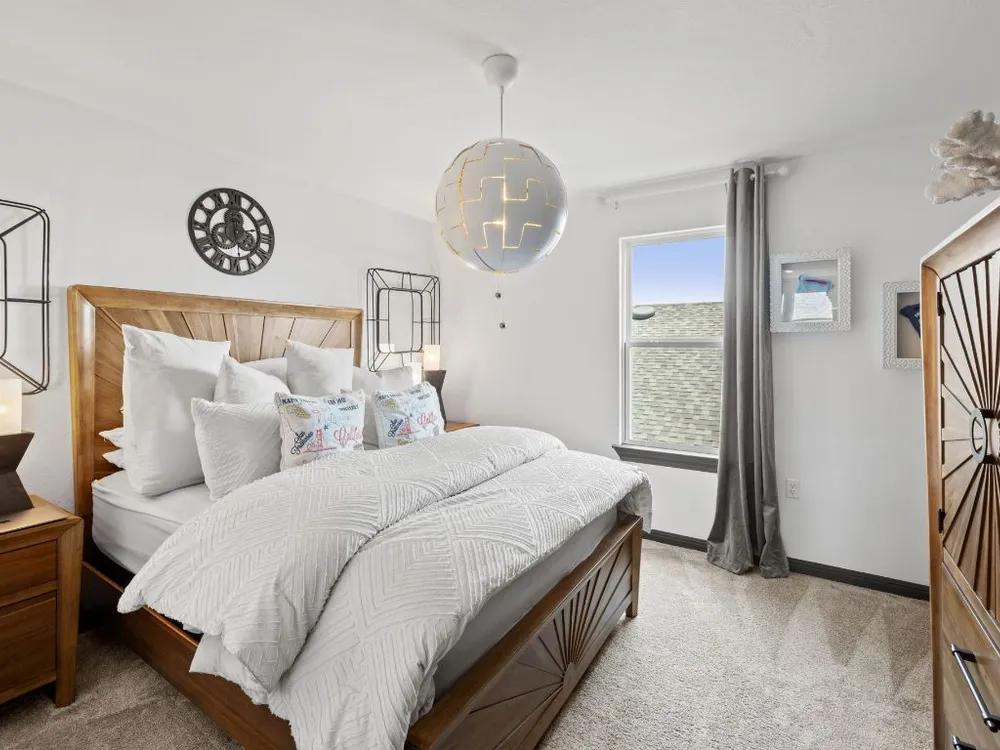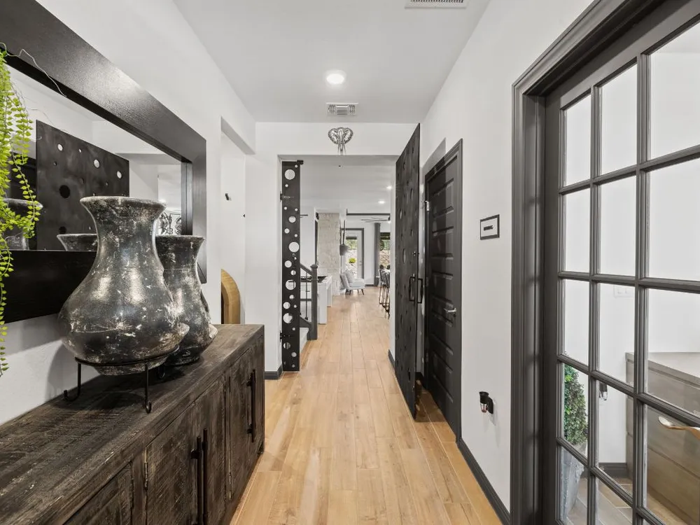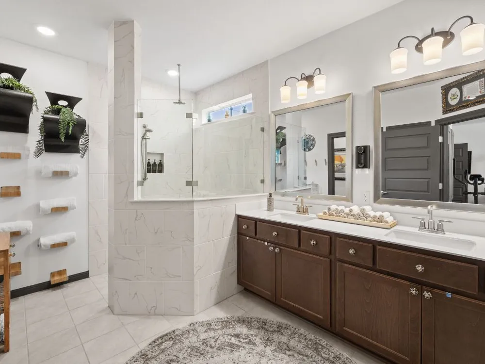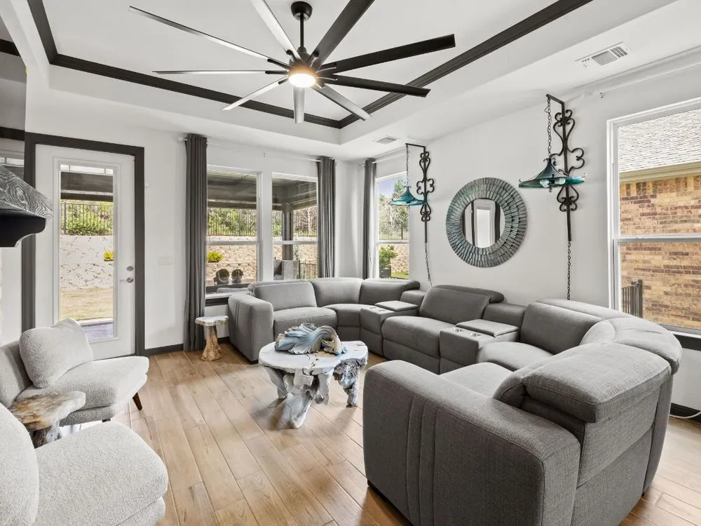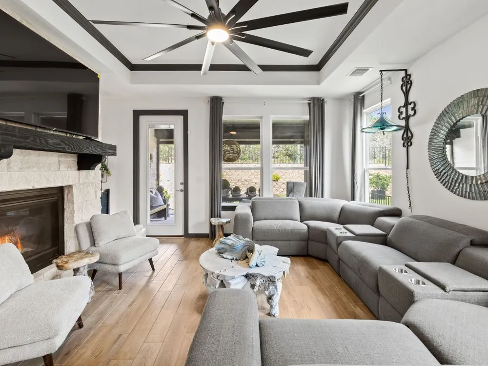 - Breakfast Bar, Tray Ceiling(s), Ceiling Fan(s), Chandelier, Double Vanity, Entrance Foyer, Eat-in Kitchen, French Door(s)/Atrium Door(s), InteriorSteps, Kitchen Island, Multiple Living Areas, Main Level Primary, Open Floorplan, Pantry, Quartz Countertops, Recessed Lighting, Smart Home, Walk-In Closet(s)