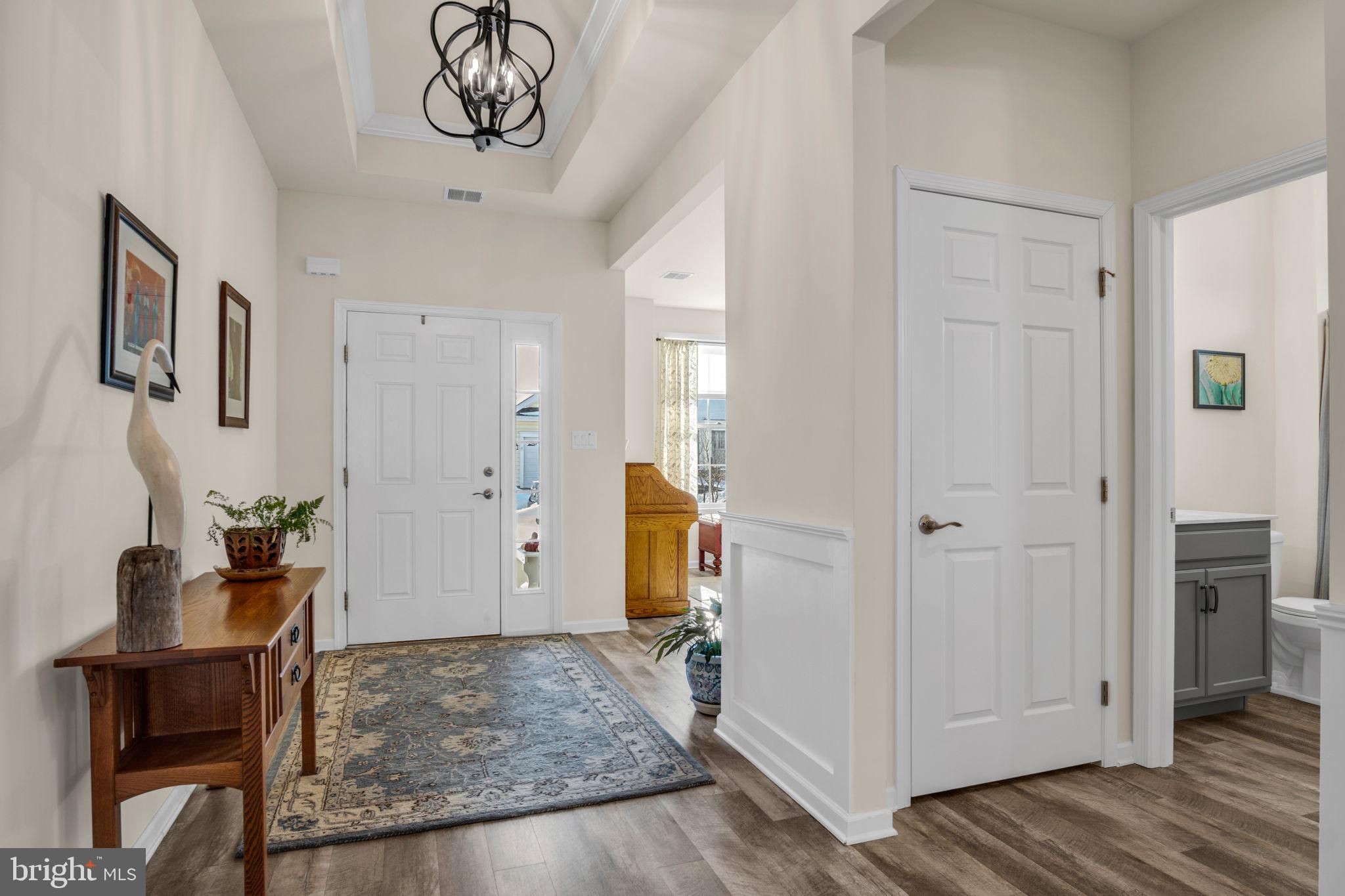 Beautiful detached home located in the highly desirable Active Adult community of Traditions of America at Silver Spring, offering first-floor living and a modern, open layout. This 2-bedroom, 2-bath home also features a versatile third room ideal for a den or home office, plus a small flex space perfect for hobbies or crafts. Luxury vinyl plank flooring flows throughout, enhancing the home’s clean, contemporary feel. The gourmet kitchen showcases crisp white cabinetry, granite countertops, and stainless steel appliances, all open to the spacious great room—perfect for everyday living and entertaining. A gas fireplace anchors the great room, while modern fixtures throughout reflect the home’s newer construction. The primary suite is a relaxing retreat with a tray ceiling, two walk-in closets, and a private en-suite bath. Step outside to enjoy the large, fenced patio spanning the rear of the home, ideal for outdoor dining or relaxing in privacy. Additional highlights include a 2-car garage with extra storage. Residents enjoy resort-style amenities including a clubhouse, indoor and outdoor pools, pickleball and tennis courts, bocce, putting green, hot tub, saunas, gym and exercise rooms, billiard room, library, media room, and a spacious event room. Low-maintenance living with exceptional amenities—this home truly has it all.
