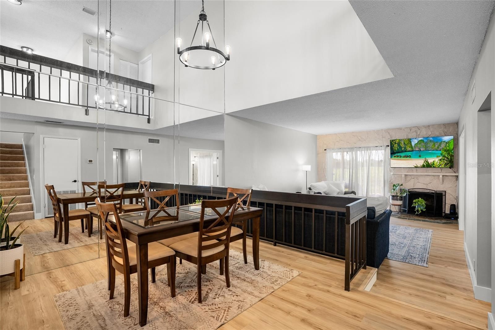 - Ceiling Fan(s), High Ceilings, Living/Dining Room, Open Floorplan, Upper Level Primary, Solid-Wood Cabinets, Stone Counters, Thermostat, Walk-In Closet(s), Window Treatments