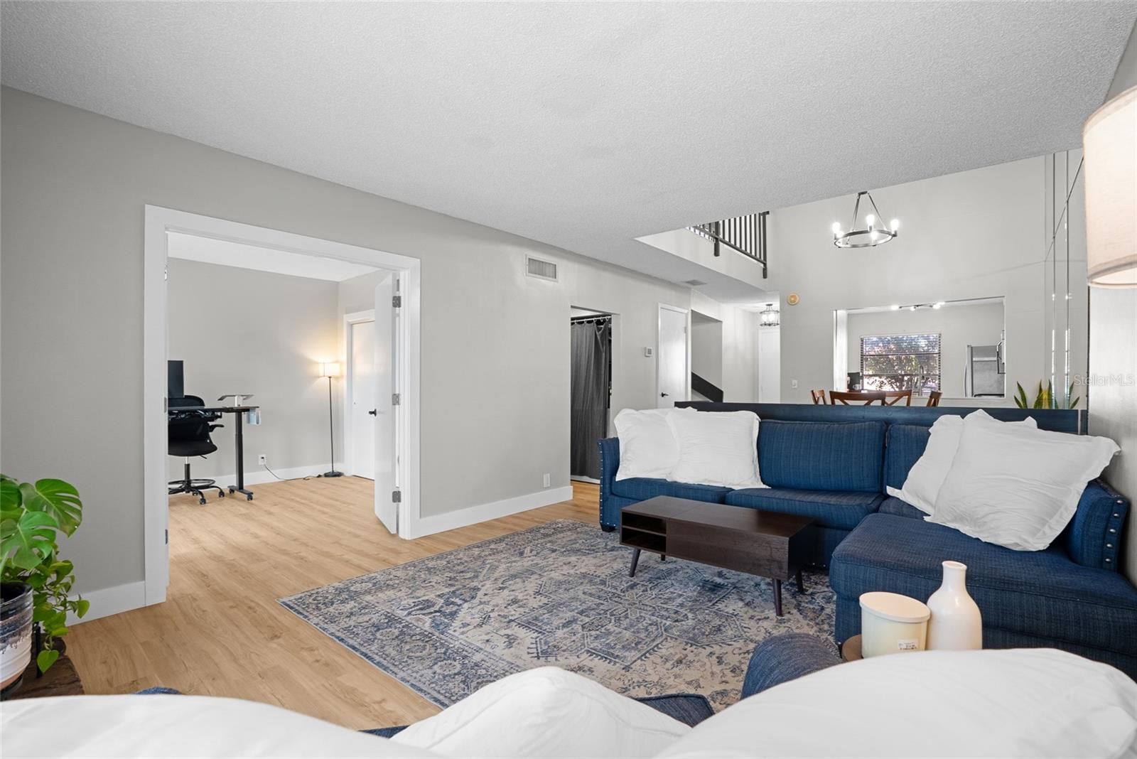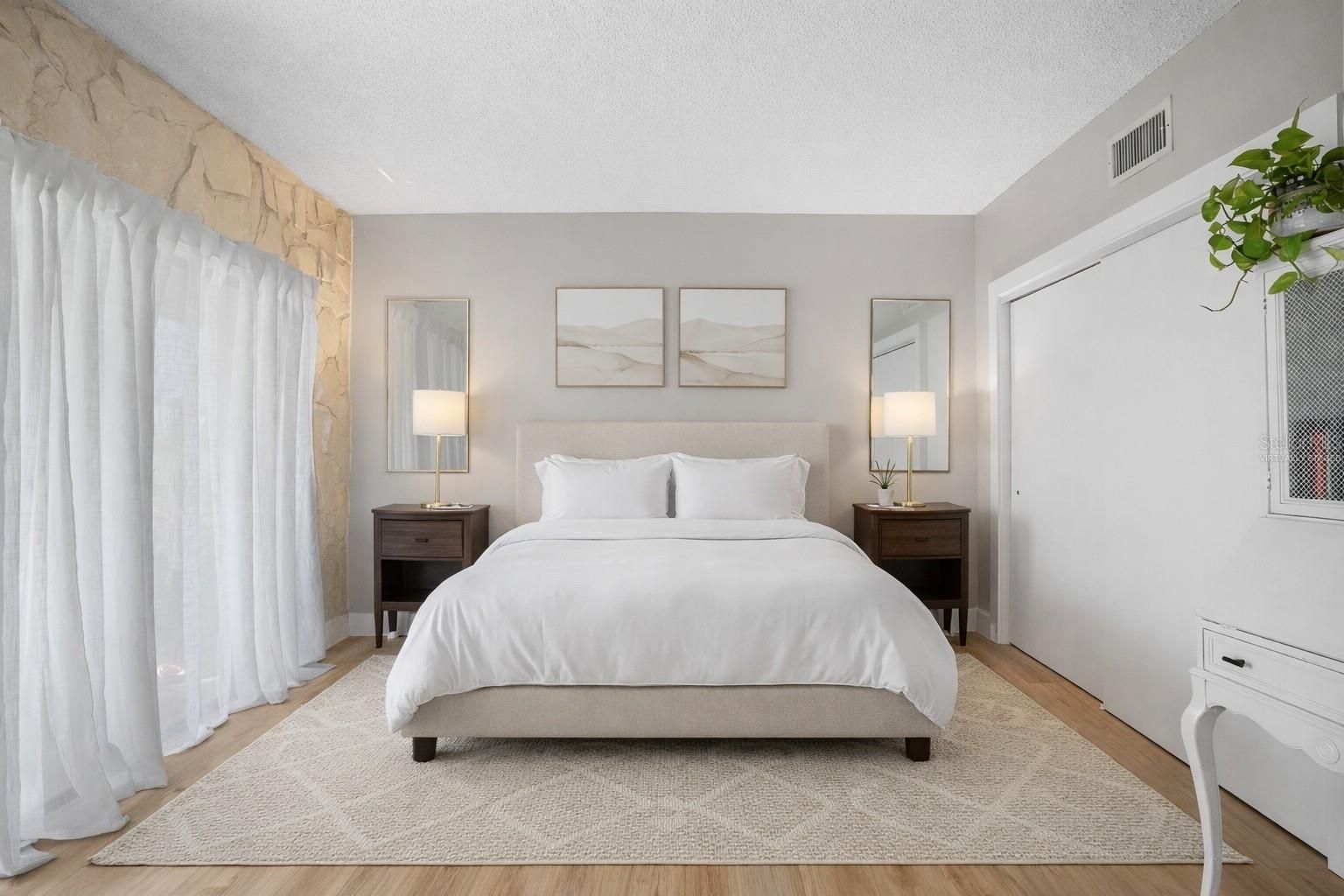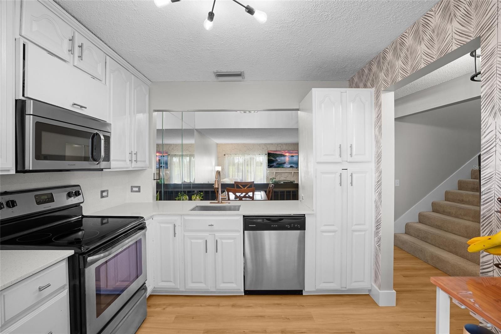 One or more photo(s) has been virtually staged. BACK ON MARKET AFTER A FRESH FLOORING & BATHROOM RENOVATION!!! LARGEST 3 BEDROOM CONDO FOR SALE ON THE ISLAND !!! Have no fear, FLOOD INSURANCE is INCLUDED in your monthly HOA fees! No need for private flood insurance. This "townhome style" condo offers 2 levels of living space, a covered carport, and screened in lanai overlooking the 10th hole tee box on the golf course! Brand new luxury vinyl plank flooring on the first floor, a brand new main floor bedroom and full bathroom, and freshly painted interior, all new light fixtures, bathroom faucets and cabinet hardware, and a $20,000 screened in lanai are just some of the recent updates to this townhome style condominium. 1 of only 28 townhome-style condos on the desirable Northwest side of the Isla Del Sol, this property offers endless possibilities for living across two floors and 1,650 square feet. As a resident you can indulge in several community amenities, such as a heated community pool and hot tub with breathtaking views of Boca Ciega Bay. Direct water access for launching kayaks, paddleboards, or fishing. Two community club rooms, including one with a bar area and indoor/outdoor entertainment space. Commercial laundry center for added convenience. Miles of picturesque walking paths across the island. For those seeking the ultimate Florida lifestyle, the option to join the Isla Del Sol Yacht and Country Club offers access to a private club, beach, pool, boat slips, restaurant, golf, and tennis. HOA FEES INCLUDE: Community Pool, Escrow Reserves Fund, Internet, Maintenance Exterior, Maintenance Grounds, Association Manager, Pool Maintenance, Recreational Facilities, Security, Water, Sewer, Trash, Flood Insurance. AGE OF MAJOR MECHANICS: Roof - 2020, HVAC - 2023, Water Heater - 2022, Screened in Lanai – 2022, Quartz Countertops & Freshly Painted Kitchen Cabinets- 2022, All New Light Fixtures, Interior Paint, Bathroom Faucets & Main Floor Bathroom Shower – 2025. **Flood Insurance is INCLUDED in the Monthly HOA fees