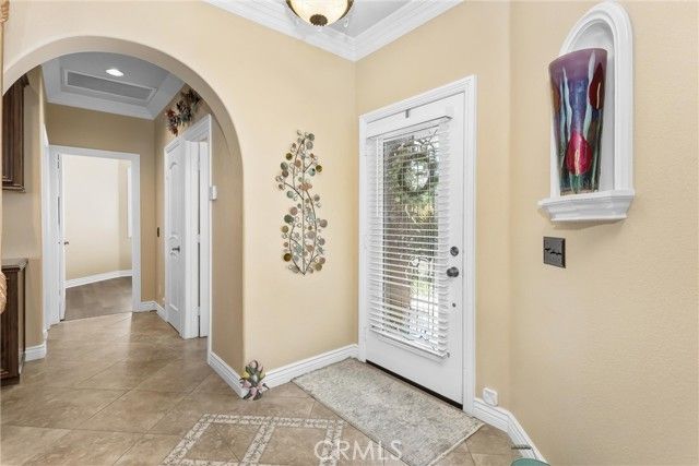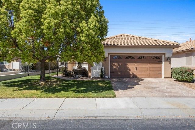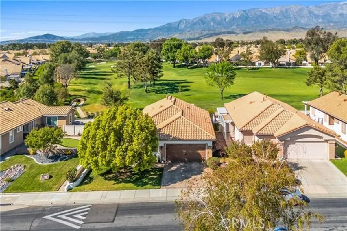 Where Views, Upgrades & Lifestyle Meet – Exceptional Golf Course Home From the moment you arrive, this beautifully upgraded Magnolia model impresses with hand-crafted textured concrete driveway and walkways, manicured landscaping, and a tranquil front fountain. Beyond the wrought-iron gate, a private courtyard with sitting area, grass, and direct doggie door access offers a peaceful and functional outdoor space. Inside, this 2-bedroom, 2-bath home features new luxury vinyl plank (LVP) flooring in the living room and bedrooms, along with crown molding, plantation shutters, recessed lighting, custom arched entries, and a see-through gas fireplace with custom built-in entertainment center. The kitchen opens to the living area and showcases high-end appliances, granite countertops, tile backsplash, and custom cabinetry throughout, with matching finishes carried into the bathrooms with tiled showers. The primary suite offers dual closets, including a walk-in and a secondary closet with direct laundry room access, plus French doors leading to a private sitting area with golf course views. The backyard is perfectly positioned on Hole #14 with unobstructed golf course and mountain views, and a large covered patio with insulated cover, lighting, and ceiling fan—ideal for entertaining. Additional features include a 16-SEER HVAC system, 220V outlet for spa, and garage with built-in cabinets, overhead storage, and golf cart space. Located near the South Clubhouse with pool, spa, fitness center, and more. Sun Lakes offers 2 golf courses, 3 clubhouses, pools, pickleball, tennis, dining, and extensive amenities. HOA includes Spectrum cable and internet. **VA assumable loan available for qualified buyers at 4.87%.** Move-in ready with exceptional upgrades, views, and lifestyle.