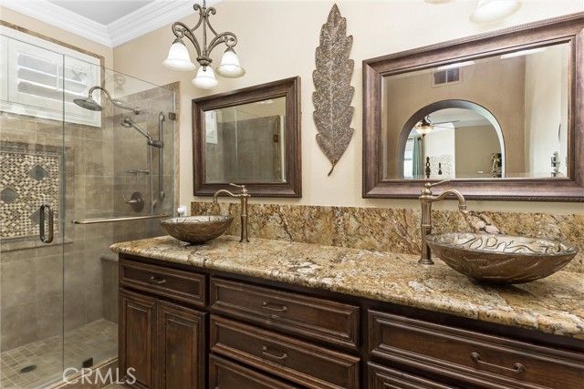 - Crown Molding, Built-in Features, High Ceilings, Ceiling Fan(s), Granite Counters, Formal Entry, All Bedrooms on Lower Level, Main Level Primary, Kitchen, Living Room