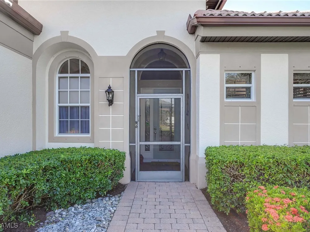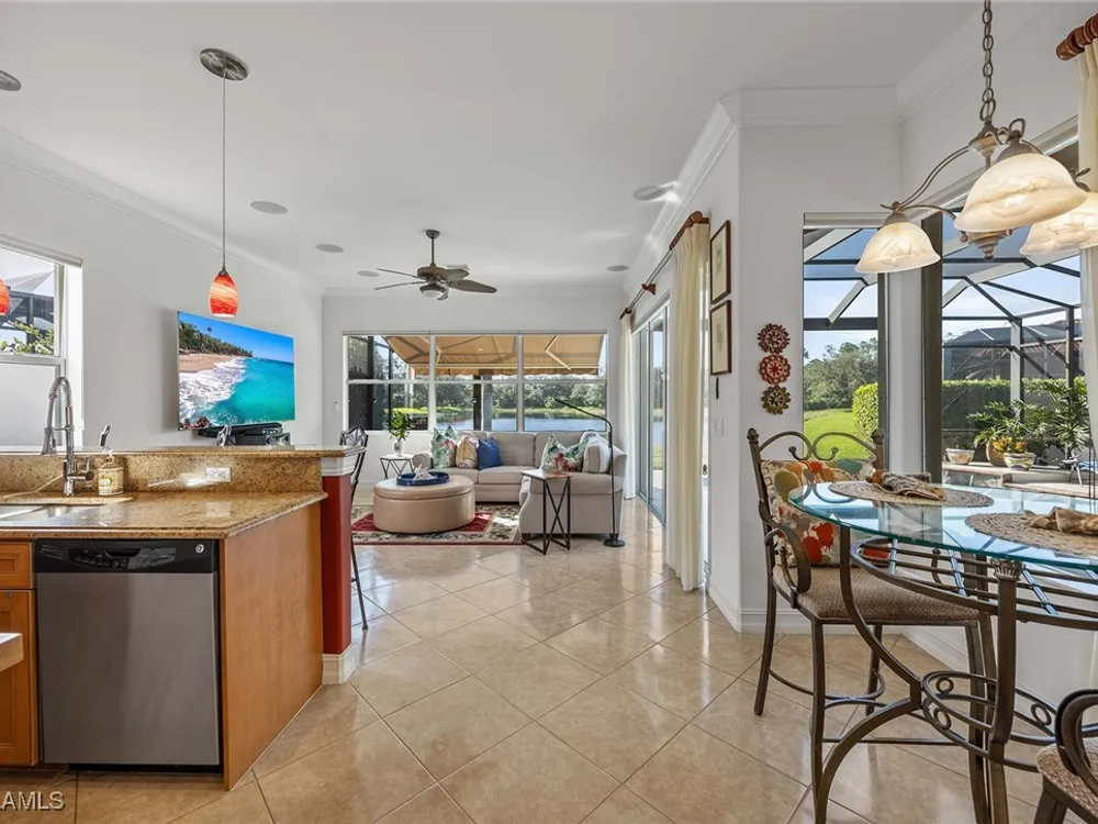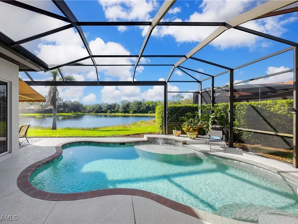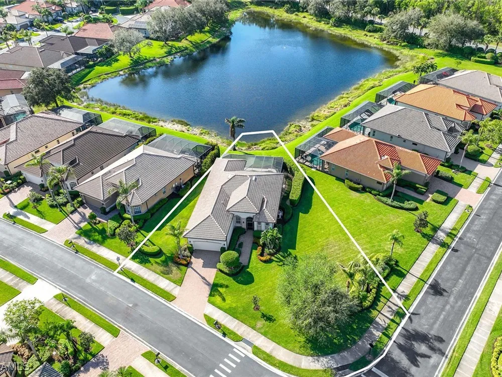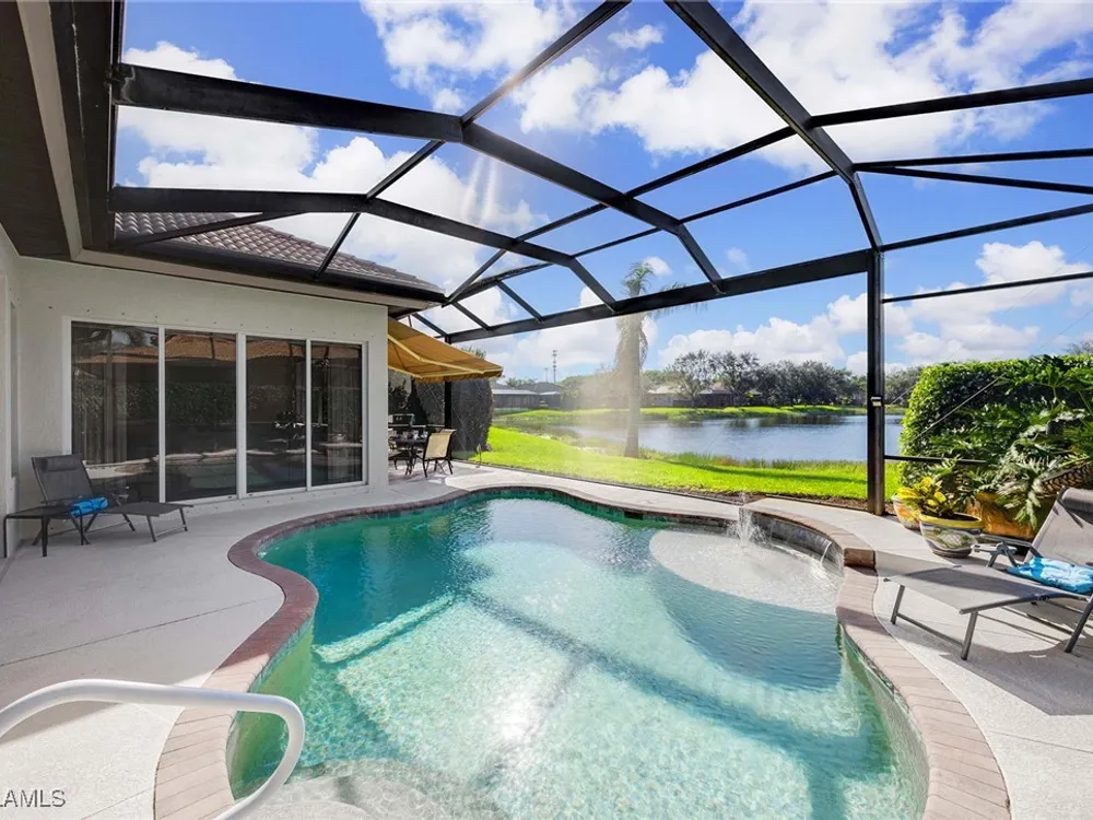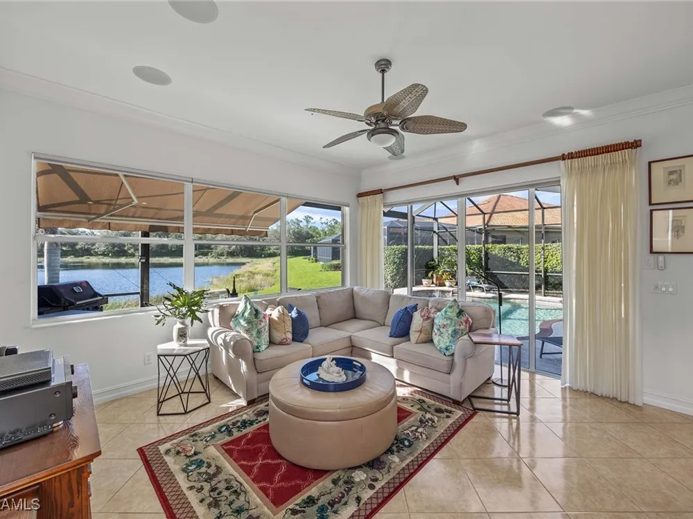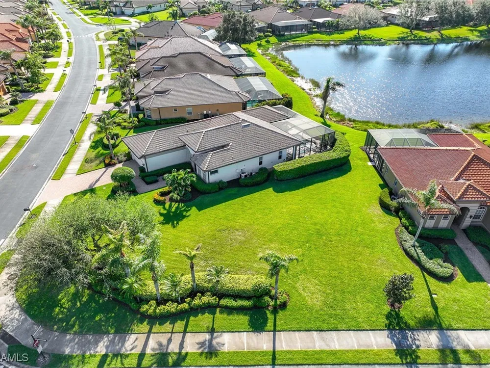 Location is key. This popular west-facing Stock Valdosta model basks in the sun throughout the day and offers beautiful sunsets. The large lanai and pool deck provide hours of relaxation overlooking a lake, in X500 zone. The interior is finely appointed with builder options and upgrades. These include designer tile laid on the diagonal throughout the entire living area. The spacious kitchen is finished with granite countertops and stainless appliances and features a spacious pantry and eat-in morning room. The garage has been customized with overhead storage providing more storage than most homes in this class. Prestwick Place is a friendly neighborhood offering you a great seasonal destination as well as year-round residency. As a deeded member of the award-winning Players Club, you will enjoy formal and casual dining, three pools, attended fitness center and full-service spa, bocce and 13-court championship tennis center with pickleball. Lely Resort is home to the Classics Country Club with 54 holes of spectacular golf on three championship courses, two are open to the public. Furnishings are also available by agreement.
