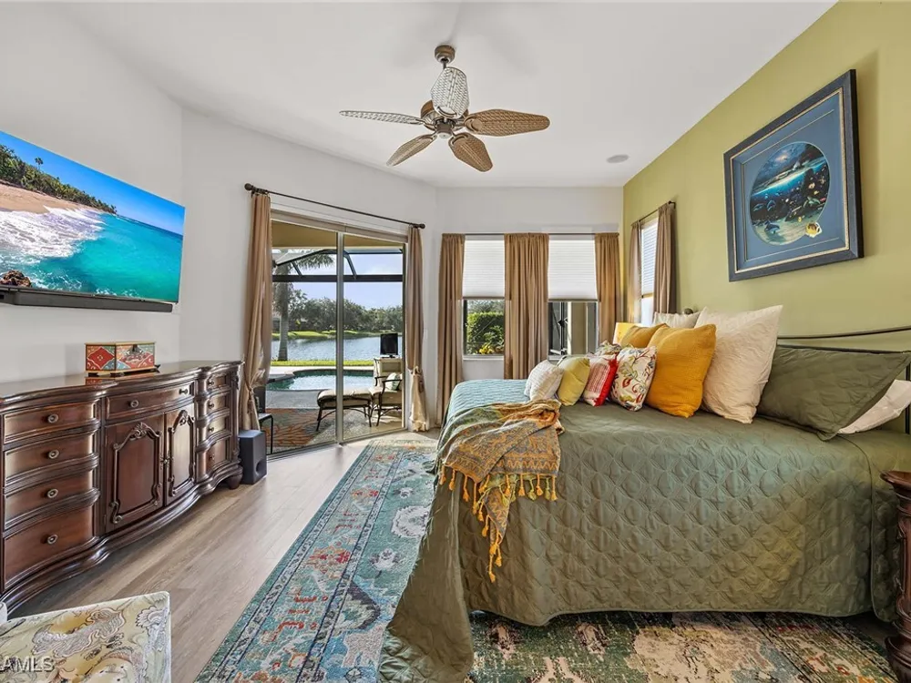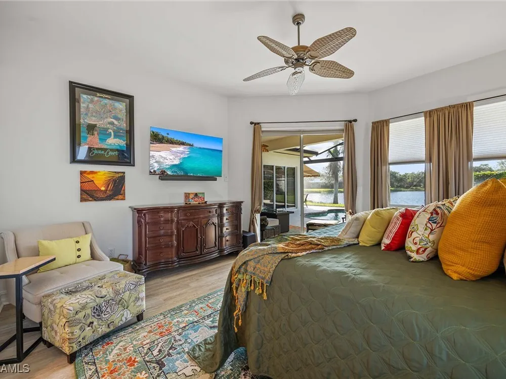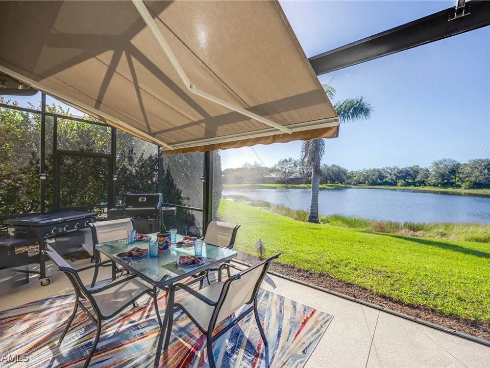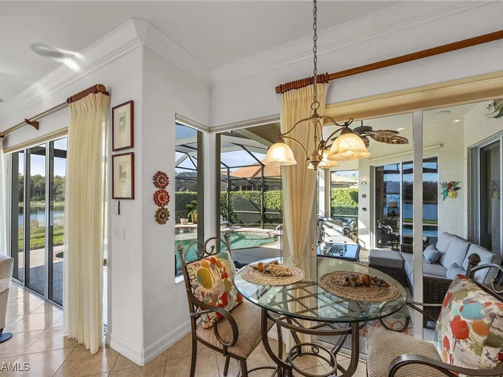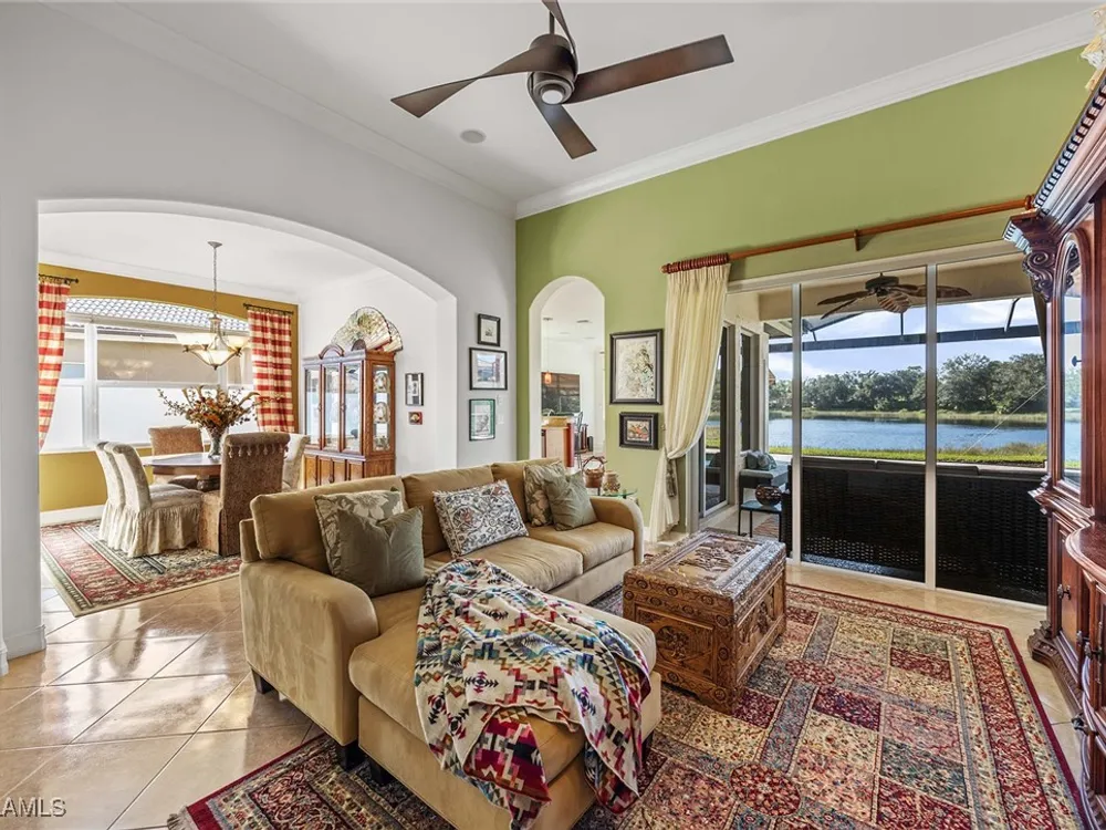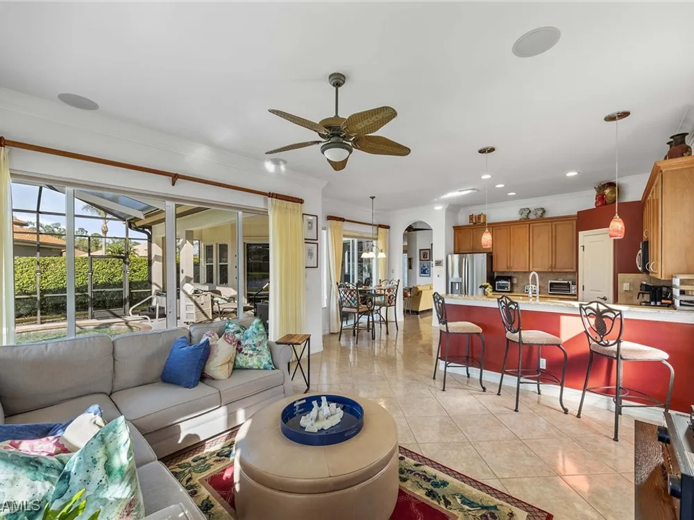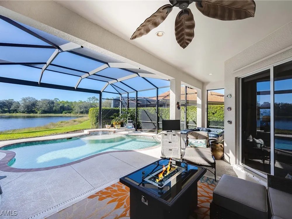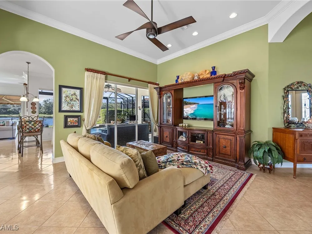 Location is key. This popular west-facing Stock Valdosta model basks in the sun throughout the day and offers beautiful sunsets. The large lanai and pool deck provide hours of relaxation overlooking a lake, in X500 zone. The interior is finely appointed with builder options and upgrades. These include designer tile laid on the diagonal throughout the entire living area. The spacious kitchen is finished with granite countertops and stainless appliances and features a spacious pantry and eat-in morning room. The garage has been customized with overhead storage providing more storage than most homes in this class. Prestwick Place is a friendly neighborhood offering you a great seasonal destination as well as year-round residency. As a deeded member of the award-winning Players Club, you will enjoy formal and casual dining, three pools, attended fitness center and full-service spa, bocce and 13-court championship tennis center with pickleball. Lely Resort is home to the Classics Country Club with 54 holes of spectacular golf on three championship courses, two are open to the public. Furnishings are also available by agreement.