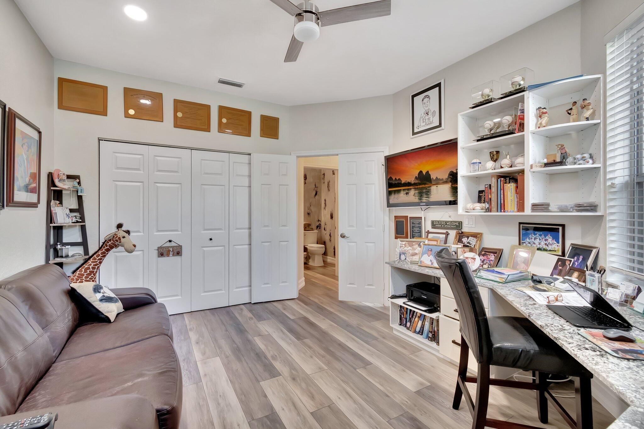 Come see this spacious and updated single family home in the well sought after subdivision of The Glades. This home brings tons of natural lighting, Vaulted ceilings, split bedroom plan and great entertaining spaces. The kitchen appliances 2022, A/C & water Heater (both mid 2021), garage door opener 2024 and many other upgrades. Main Bedroom has 3 walk-in closets all with built-ins, den/3rd bedroom has built in desk and closet, kitchen has a modern look, main bathroom has a walk-in shower, dual sinks and vanity area. This home comes with tons of storage space and built-in cabinets in the garage! Walking distance to the community pool & clubhouse. Membership in INDIAN SPRINGS COUNTRY CLUB is available, but NOT mandatory. Property is close to house of worship