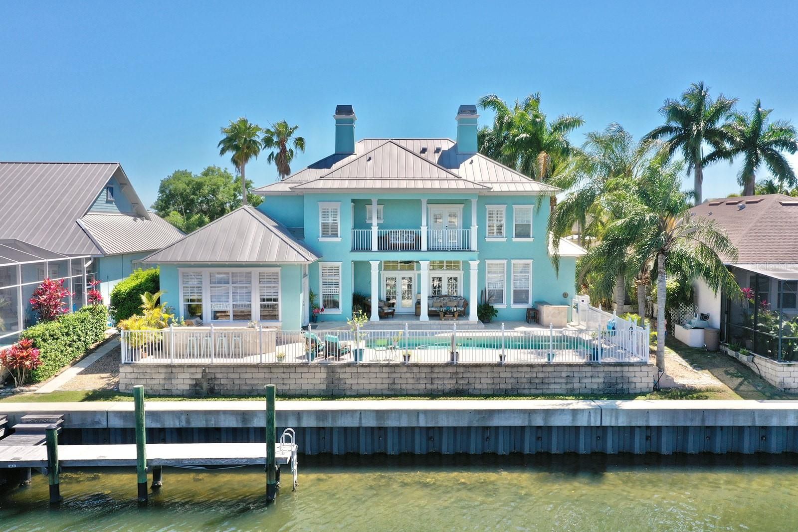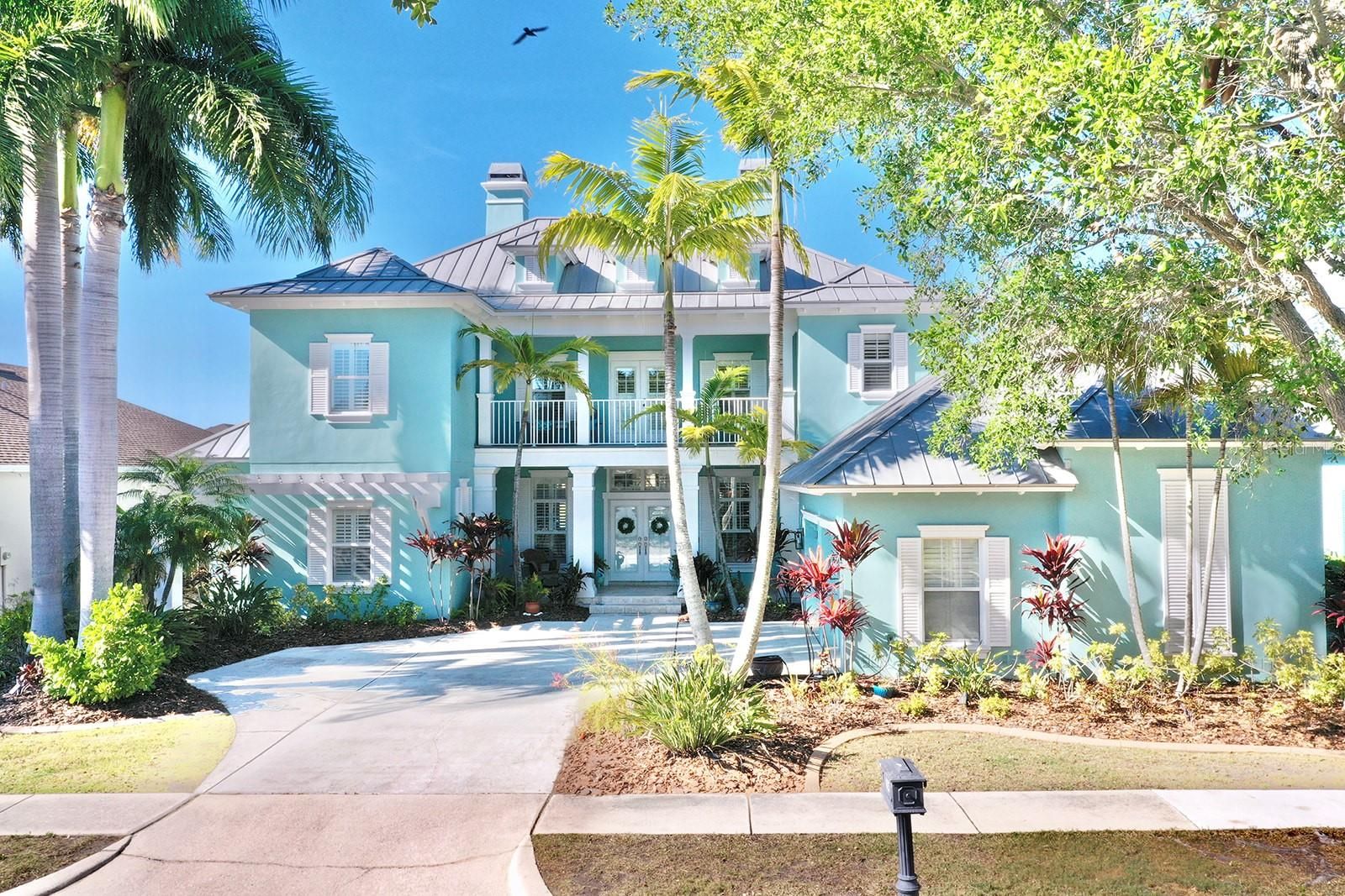 Welcome to 615 Islebay Drive, a beautifully updated waterfront pool home in Mirabay, a gated resort-style community. This spacious 5 bedroom, 3.5 bathroom home offers bright, open living spaces designed for everyday comfort and entertaining. Located on the main canal in Mirabay with direct, quick access to Tampa Bay - home located on lot with no restrictions on boat size! Step outside to enjoy true Florida waterfront living: a private saltwater pool, expansive outdoor living space with built-in grille, two granite countertop bars, expansive travertine patio, and peaceful water views — perfect for sunset evenings, relaxing weekends, and hosting friends and family. Enjoy manatees and dolphins in your backyard! Highlights include: Updated coastal-style kitchen, beautiful 7.5"wide wood floors, spacious main-floor primary suite with a luxury bathroom retreat, master bedroom with large closets, an expansive upstairs loft with wet bar and balcony access — perfect for hangouts, movie nights, gaming, and more. Generous bedrooms and flexible spaces for an office, gym, or guests. Plantation shutters throughout home. Metal roof for long-term peace of mind. Mirabay Lifestyle: Enjoy a true resort community with a clubhouse, café, fitness center, pools, tennis & pickleball, trails, community events, and a vibrant waterfront atmosphere.