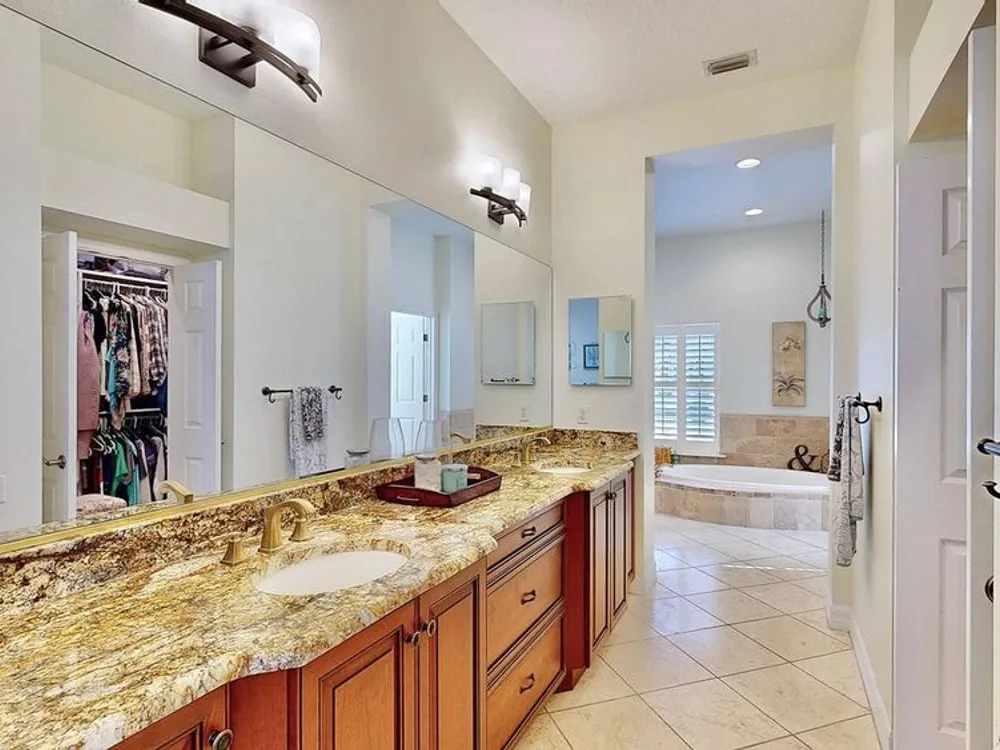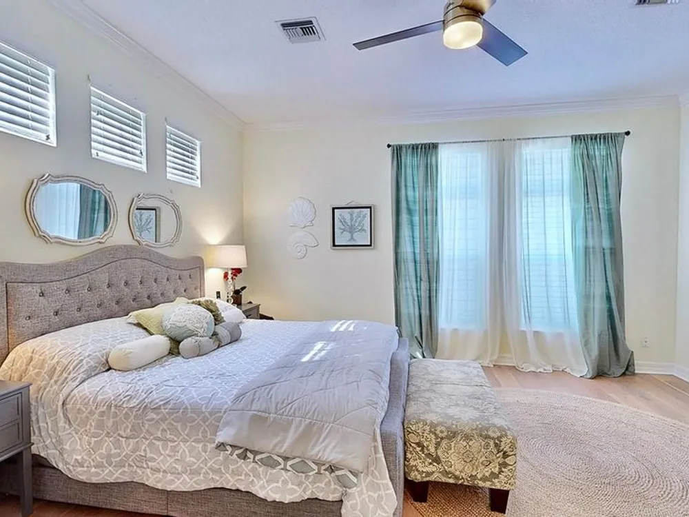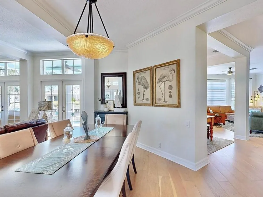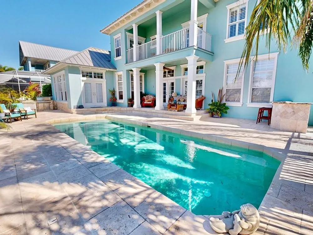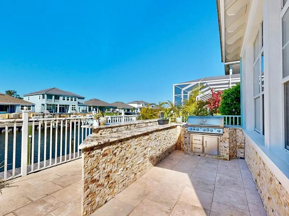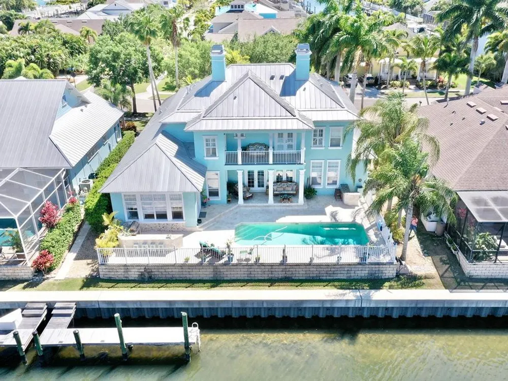 Newly remodeled, 5 bedroom, waterfront home with private dock and outdoor retreat that includes luxurious outdoor living with saltwater pool, travertine patio and kitchen. Updates include a new 'Cape Cod meets Key West Coastal' kitchen, new flooring, new kitchen appliances, plus more! This incredible home offers 3,900 sq ft of move-in-ready, comfortable coastal living space. Every update and feature of this home has been tastefully selected and is complemented by the natural light pouring in through the large windows! The large main level master suite includes a private bath with double vanities, a luxurious garden soaking tub, a separate standing shower stall, and plenty of storage space with two walk in closets! Upstairs, you are greeted by a massive loft area perfect for entertaining and complete with a convenient wet bar and access to the front balcony! Each upstairs bedroom has high ceilings, large closets, and ample lighting through the large windows with plantation shutters. Three bedrooms even feature direct access to one of the two second-story balconies (front and back). You will fall in love with the gorgeous view of the canal and daily sunsets while manatees frequently pass by. Residents of the Mirabay community enjoy resort-style pools, a café, gym, tennis and basketball courts, pickleball, kayaking and paddleboard rentals (free for residents), playgrounds, walking trails, and vibrant community events and festivals. This is not just a home, it is a lifestyle. Immerse yourself in the coastal charm of this property. Don’t miss this rare opportunity—schedule a showing today and experience waterfront living in Mirabay!