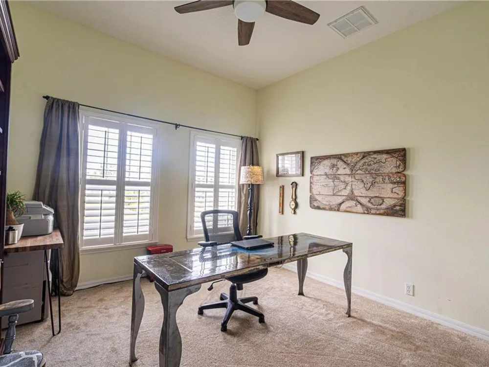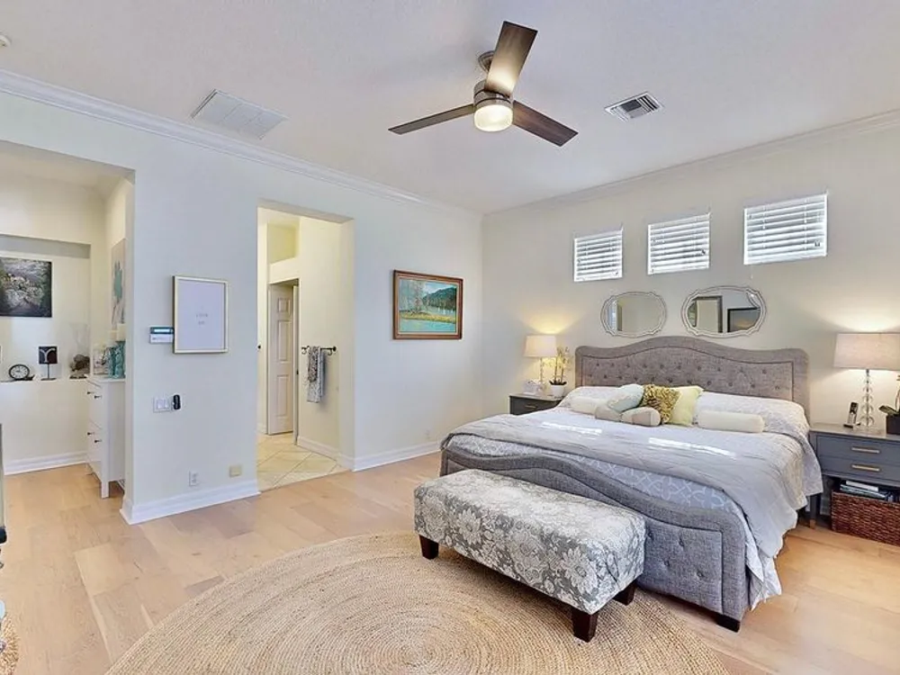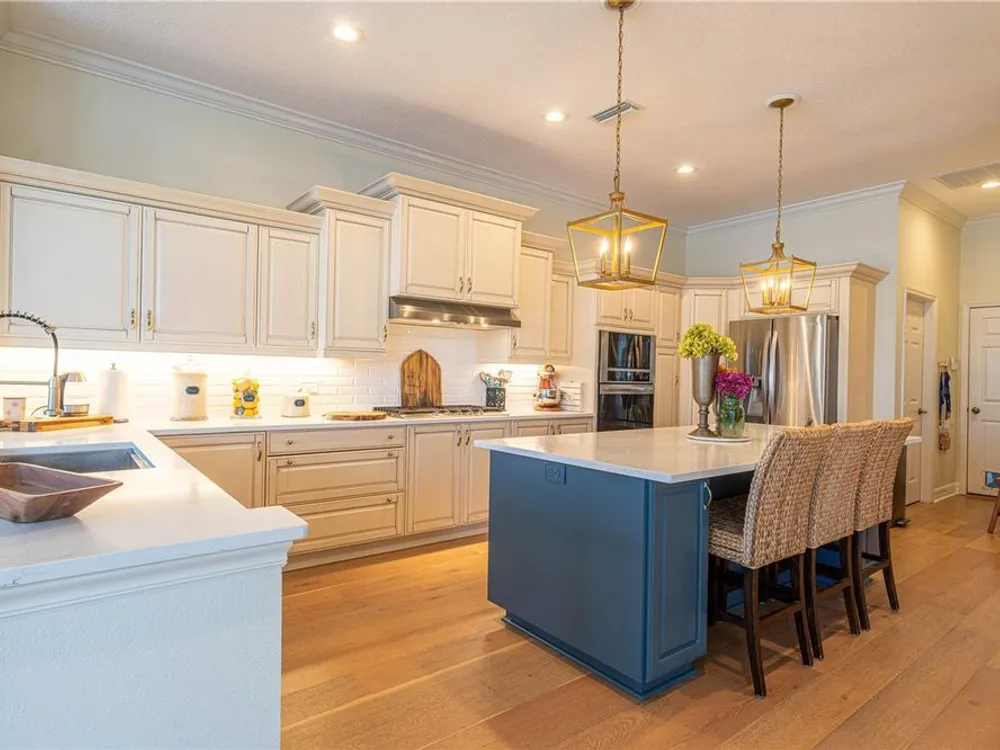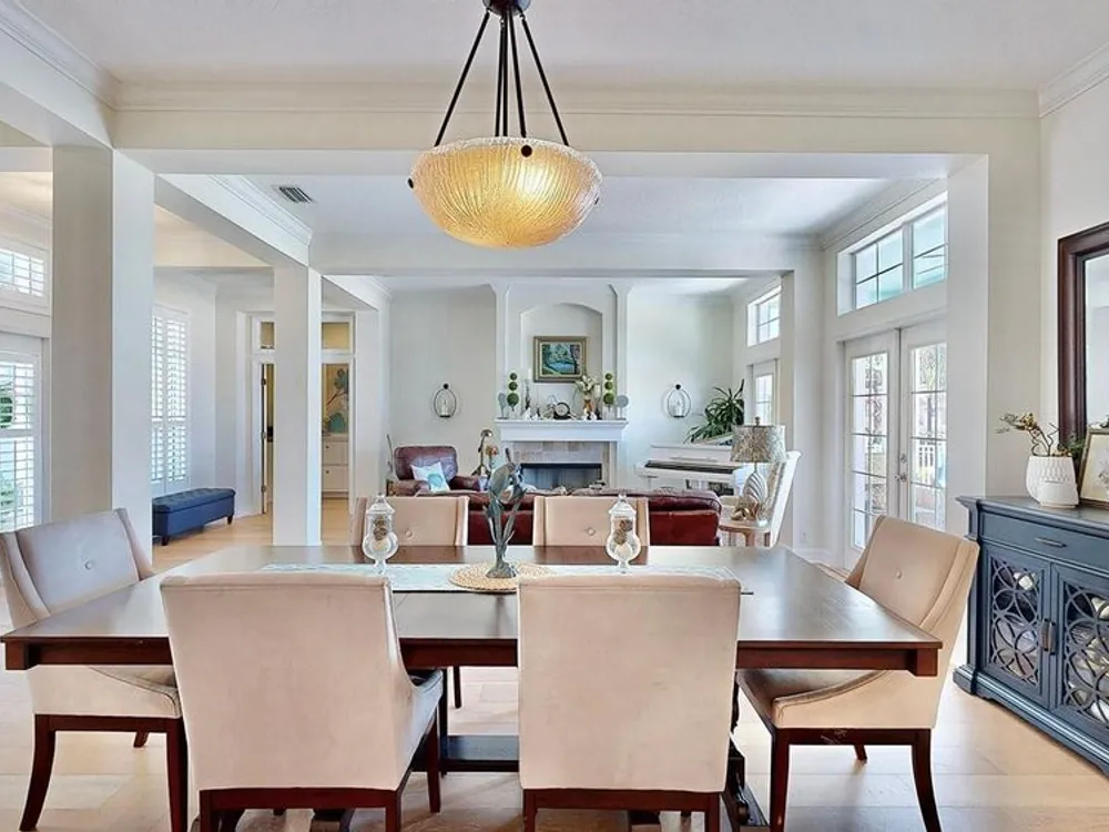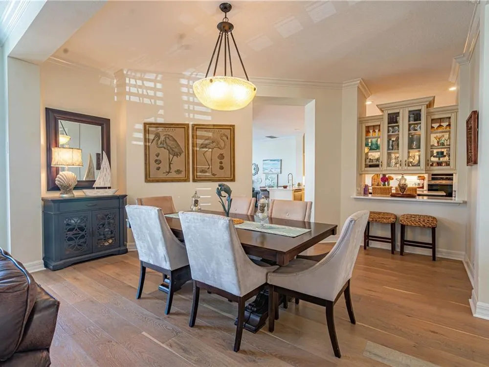 - Ceiling Fan(s), Crown Molding, Eat-in Kitchen, High Ceilings, Kitchen/Family Room Combo, Living/Dining Room, Main Level Primary, Walk-In Closet(s), Wet Bar