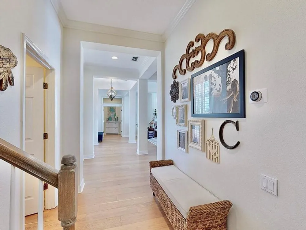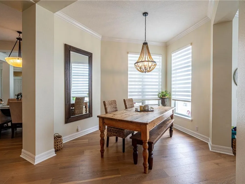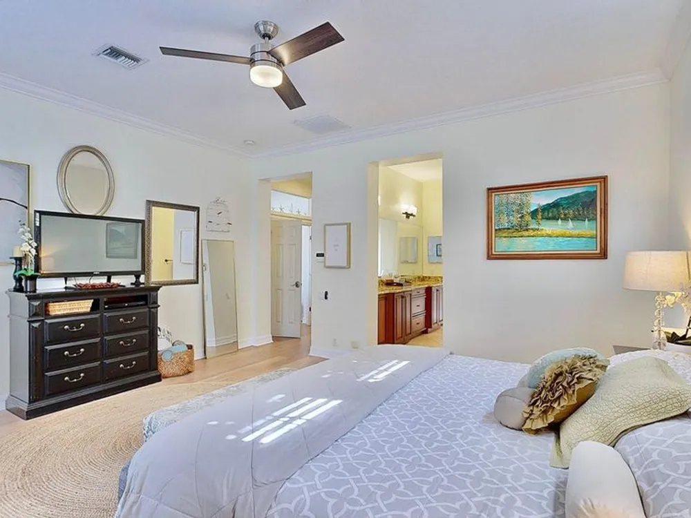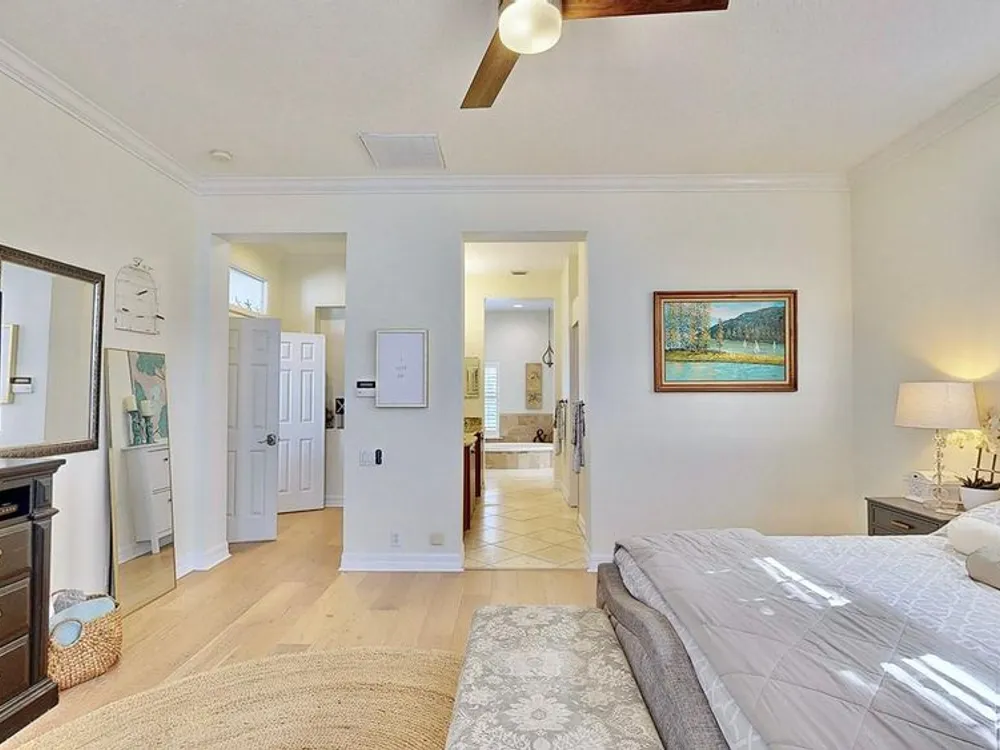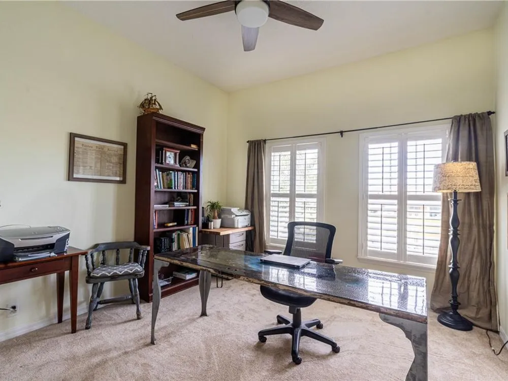 - Ceiling Fan(s), Crown Molding, Eat-in Kitchen, High Ceilings, Kitchen/Family Room Combo, Living/Dining Room, Main Level Primary, Walk-In Closet(s), Wet Bar