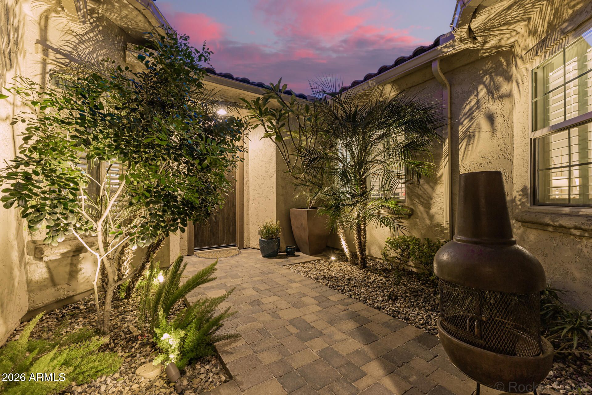Enjoy luxury living on this prime golf course lot complete with mountain views and fabulous sunsets. Professionally designed landscape with superb curb appeal. Enter through the private courtyard. Step into greatroom living with 10 ft ceilings and an Andersen window wall of glass. Gourmet kitchen upgrades include high end cabinetry, quartz counters, double ovens, gas cooktop and an island built for entertaining. Coffee bar area. Huge walk in pantry and ovesized laundry room. Beautiful dining area. Spacious master suite enjoys the views too. Double master bath vanities, walk in tiled shower and large closet with California closet organization. Guestroom offers ensuite bath for privacy. Flex space can be the third bedroom or office. Fabulous outdoor living for the most refined homeowner. Imagine a truly relaxing outdoor living space complete with stamped concrete patio that overlooks easy care synthetic turf, spa with soothing water feature and gas firepit to enjoy the evenings. Inside upgrades include plantation shutters, newer white oak flooring and designer paint. Great storage space with 2 car plus golf cart garage. This home is a true pleasure to own and is perfect for llving a golf lifestyle. HVAC 2022. Inquire about golf discounts at the adjacent Lone Tree golf course.