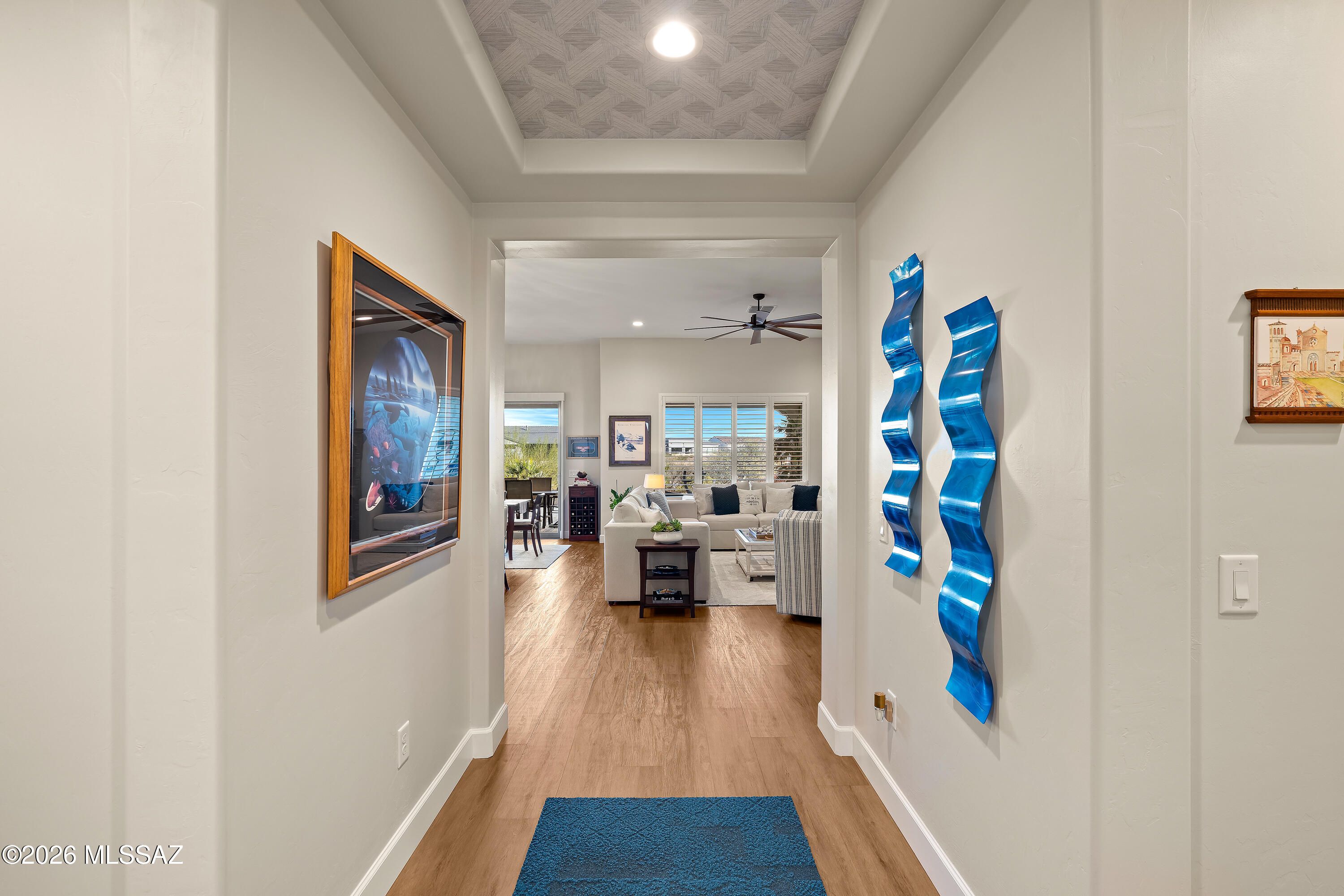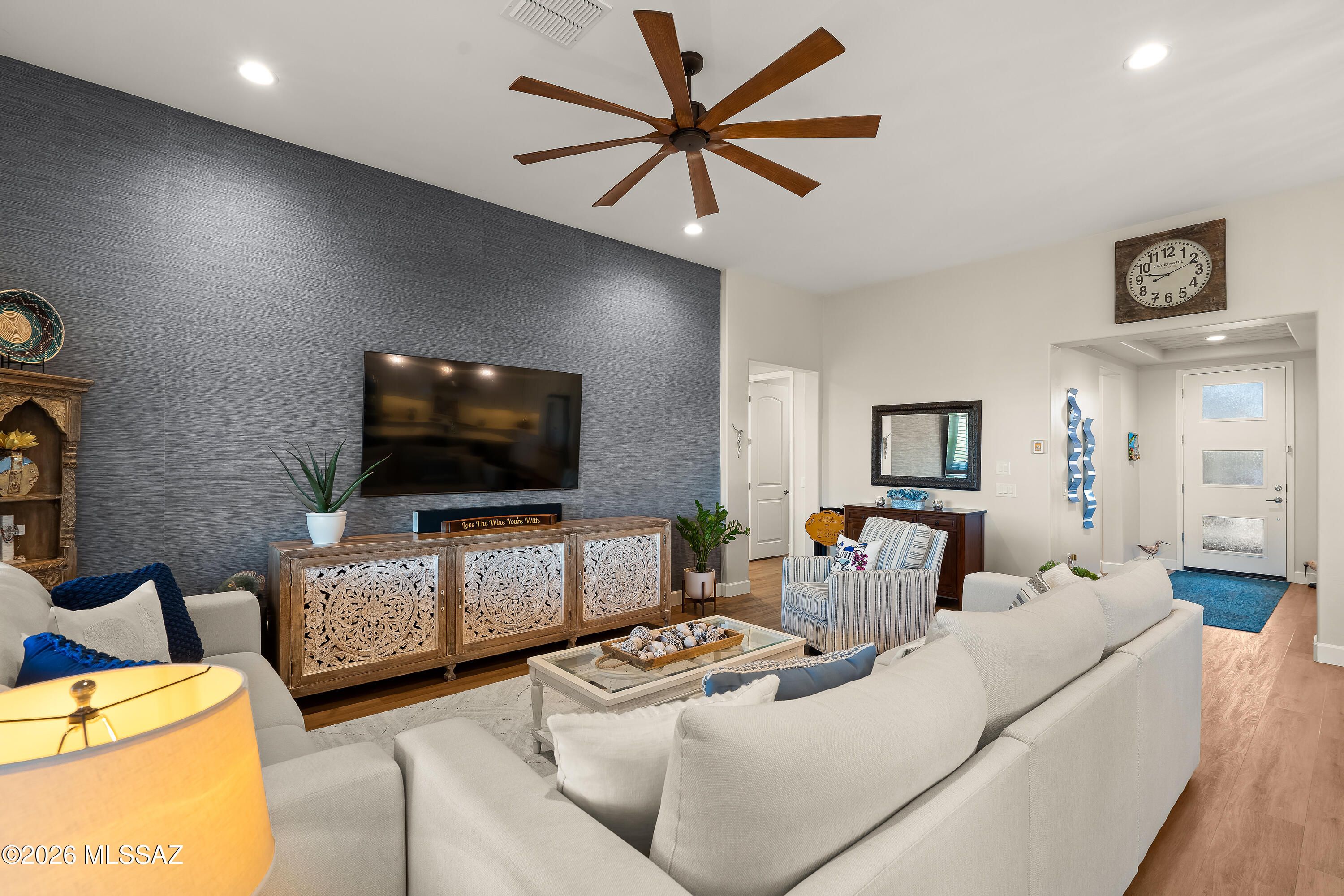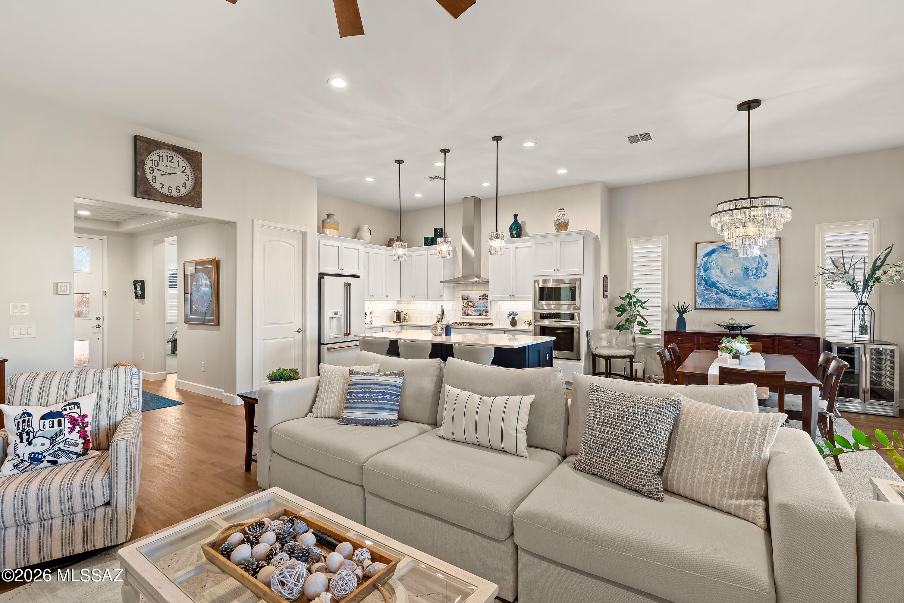 Sophisticated Desert Living in SaddleBrooke Ranch! Welcome home to this stunning Alora residence offering 1,995 sq ft of thoughtfully designed living space with 2 bedrooms and 2.5 baths, perfectly blending modern elegance with effortless comfort. Completed in 2021, this nearly new home offers the benefits of contemporary construction and designer upgradesa"without the wait to build. At the heart of the home is the chef's kitchen, beautifully appointed with sleek modern finishes, abundant cabinetry, and a spacious walk-in pantry, making it as functional as it is stylish. The open-concept design flows seamlessly into the great room, where gorgeous, upgraded lighting creates a bright, refined ambiance ideal for both entertaining and everyday living.