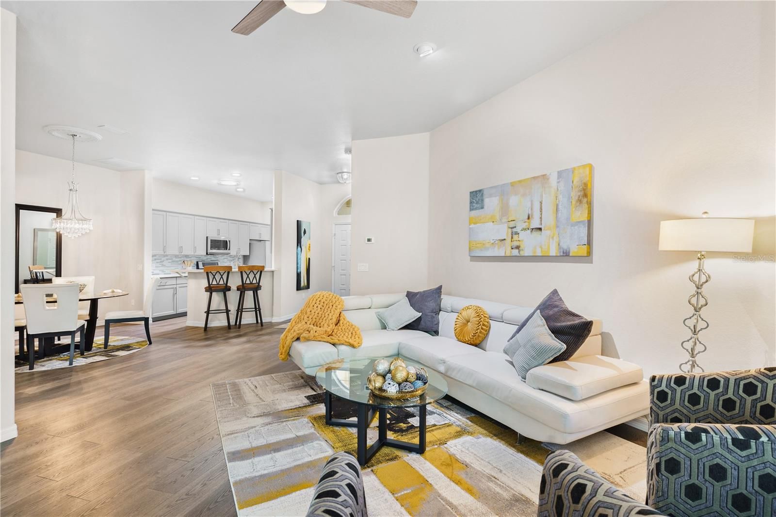 - Ceiling Fan(s), Eat-in Kitchen, High Ceilings, Living/Dining Room, Open Floorplan, Stone Counters, Vaulted Ceiling(s), Walk-In Closet(s)