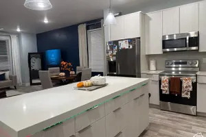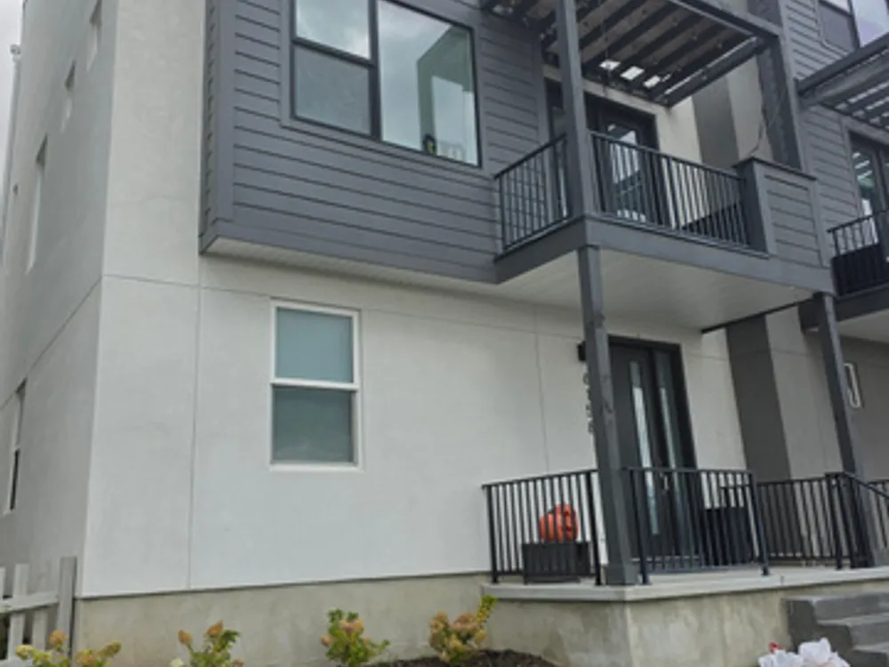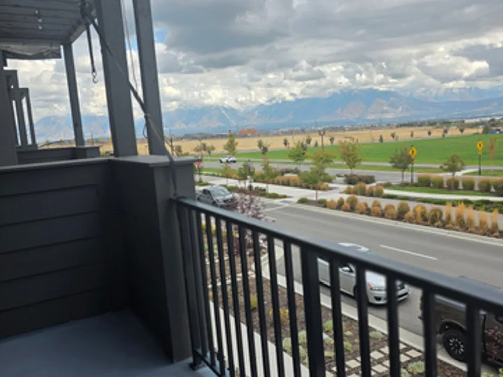 Modern Townhome Built in 2022 Prime Daybreak Location - Seller Financing Available. This stylish 3-bedroom townhome offers modern design, thoughtful details, and a fantastic location. Built in 2022, it features a fenced front patio, spacious 2-car garage with extra storage, and an outlet for an electric car charger. Inside, you'll find 9-foot ceilings, oversized picture windows, quartz countertops, a tile backsplash, laminate flooring, pendant lighting, and LED disc lighting. The second-floor patio provides beautiful views of the mountains, while the tankless water heater and smart home features-keyless entry, video doorbell, smart thermostat, and smart garage door opener-add comfort and convenience. Located in the vibrant Daybreak community, you'll enjoy access to a pool, parks, scenic walking trails, and expanding commercial developments. Just minutes from downtown Daybreak and the Salt Lake Bees' new ballpark, this home blends modern living with exciting amenities and entertainment options.