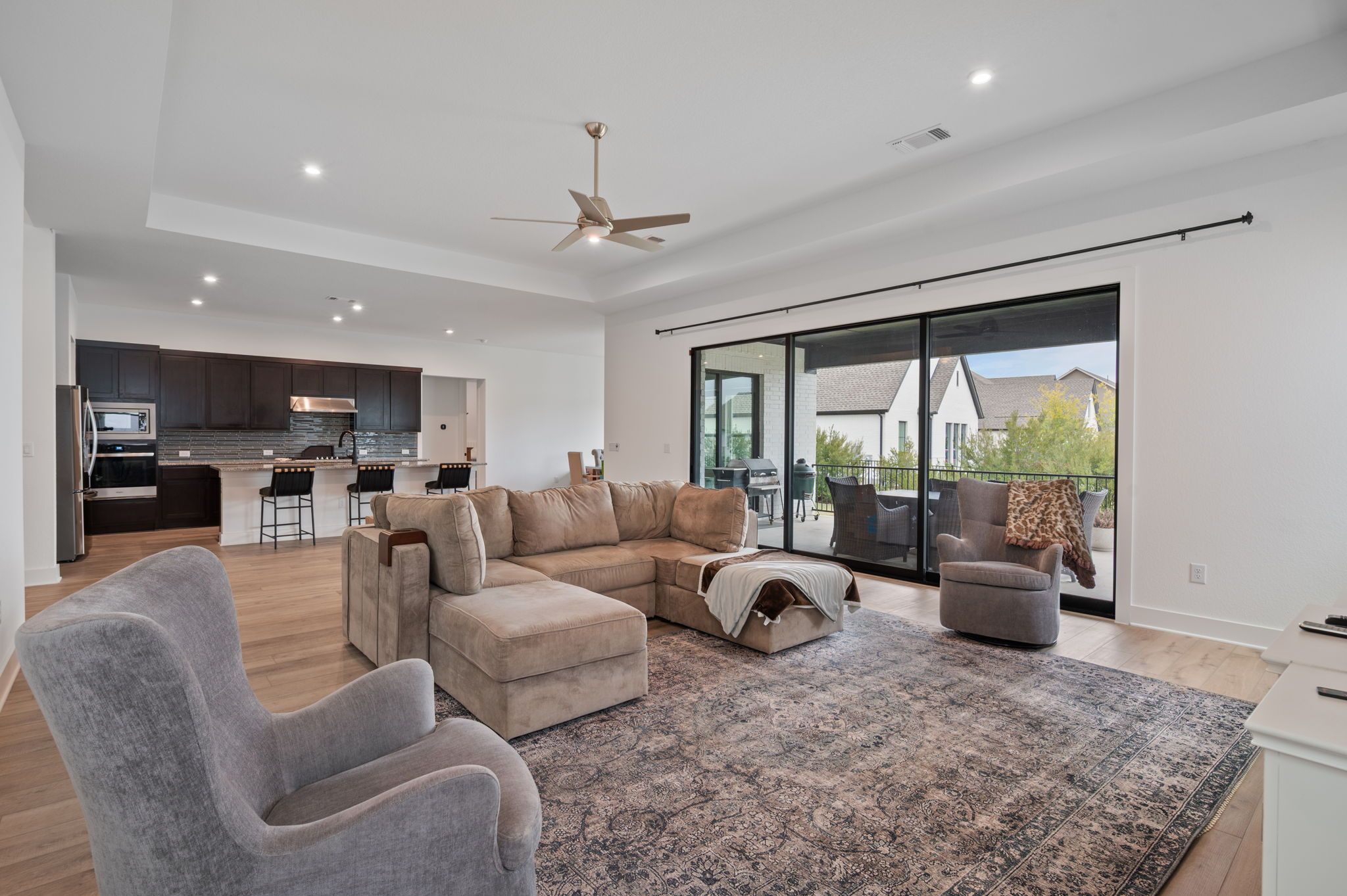 SINGLE-STORY Toll Brothers Luxury with over $100K in Upgrades in the Regency at Santa Rita Ranch Experience elevated, lock-and-leave living in the award winning 55+ community of Regency at Santa Rita Ranch. Located in the coveted Liberty Hill/North Austin area, this stunning 1-story luxury home offers incredible value, showcasing over $100,000 in premium enhancements. BETTER THAN NEW: Designed for effortless entertaining, the open-concept floor plan centers around a gourmet kitchen featuring a massive island, abundant cabinetry, and a built-in workspace, flowing seamlessly into the expansive great room and dining area. Upgraded hardwood/tile flooring spans the entire home (no carpet), leading you to a bright flex room (ideal for a home office or den) and a luxurious primary suite complete with two walk-in closets and a spa inspired bath with a frameless glass shower and seat. OUTDOOR OASIS: Step outside to your private retreat with an oversized extended covered patio which is pre-wired for audio and surrounded by privacy landscaping and metal fencing. COMMUNITY LIFESTYLE: Residents enjoy premier amenities including pickleball courts, resort-style pools, a state-of-the-art fitness center, and a vibrant social calendar. Equipped with a tankless water heater, water softener, and security pre-wiring, this vacant and move-in-ready home is the perfect backdrop for your next chapter.
