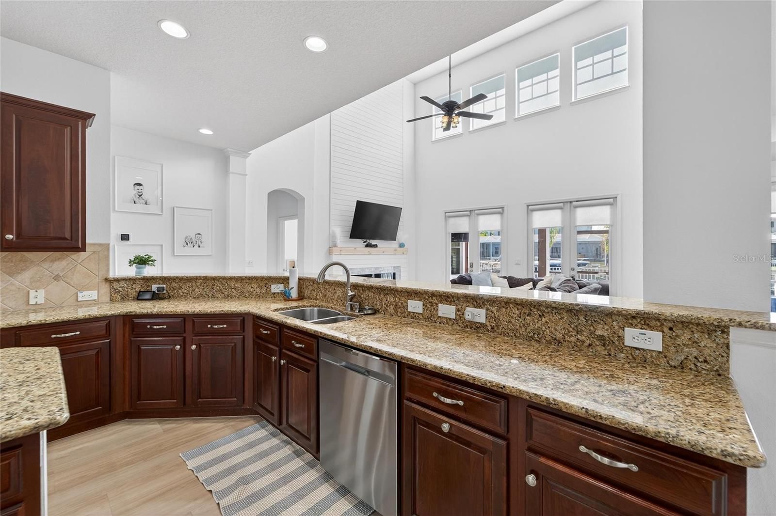- Cathedral Ceiling(s), Ceiling Fan(s), Chair Rail, High Ceilings, Kitchen/Family Room Combo, Open Floorplan, Main Level Primary, Solid Surface Counters, Stone Counters, Thermostat, Window Treatments