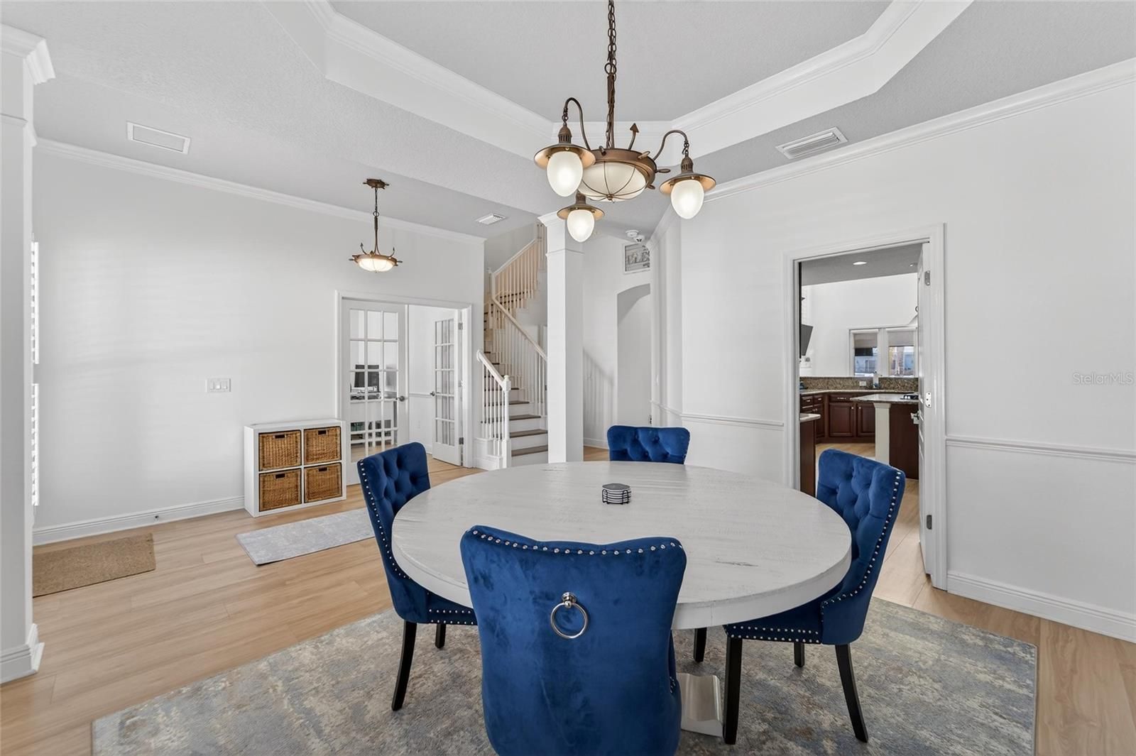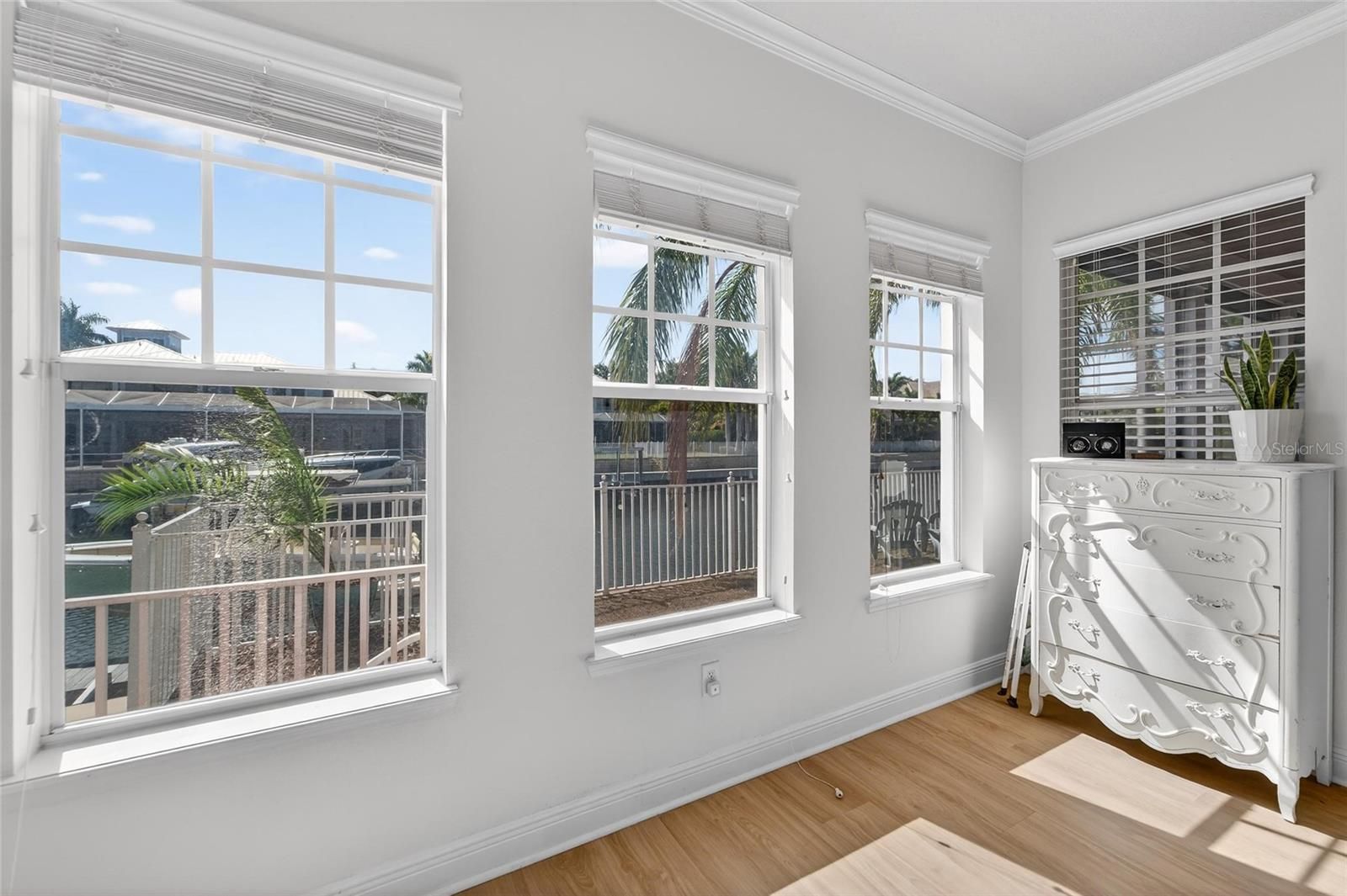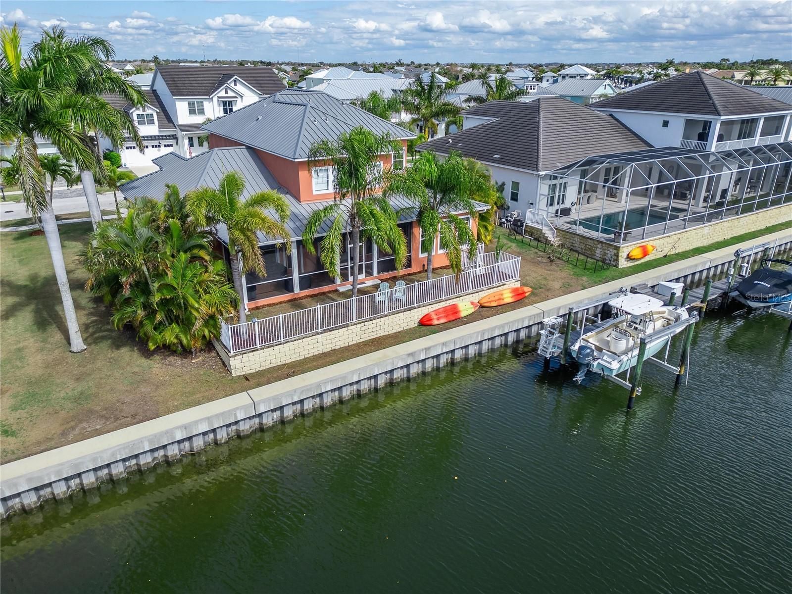 High and dry and by far the best value on the water in MiraBay, this light, bright, and move-in-ready Classic Coastal home offers the perfect blend of elegance, comfort, and Florida waterfront living. This meticulously maintained 4-bedroom, 3.5-bath residence is ideally situated between a quiet scenic street and a beautiful saltwater canal in the highly sought-after MiraBay community. The thoughtfully designed floor plan features a first-floor library or office, a spacious first-floor owner’s suite, and an open-concept kitchen, breakfast area, and family room with soaring ceilings and abundant windows that fill the home with natural light. The well-appointed kitchen is perfect for cooking and entertaining, offering stainless steel appliances, ample cabinet and counter space, a center island, wraparound breakfast bar, and inviting water views. An elegant open staircase leads to the second floor where you will find a second family room or game room, walk-in closets in every bedroom, two full bathrooms, and a charming veranda that adds a touch of Southern living. Upgrades throughout the home include plantation shutters, wood and tile flooring throughout (no carpet), custom shades in the family room, a screened patio, and an oversized two-car garage with epoxy flooring. A highlight of the property is the recently upgraded private boat dock equipped with water, electricity, storage, and a fish-cleaning station. Bring your boat and enjoy direct access through the mangrove canal to Tampa Bay and beyond, or simply fish from your dock while watching for the incredible aquatic life that frequently visits MiraBay waters, including dolphins, manatees, and stingrays. Residents enjoy access to the MiraBay Club’s resort-style amenities, including a fitness center, lap pool, resort pool with lighthouse slide, poolside grill and bar, lounge, kayaks and paddleboards for the lagoon, playgrounds, parks, tennis, basketball, pickleball courts, and more than 50 social clubs and activities for all ages. Zoned for A-rated Apollo Beach Elementary and conveniently located near Tampa, Sarasota, and the Gulf beaches, this home offers an unbeatable combination of location, lifestyle, features, and value—making 616 MiraBay the complete waterfront package.