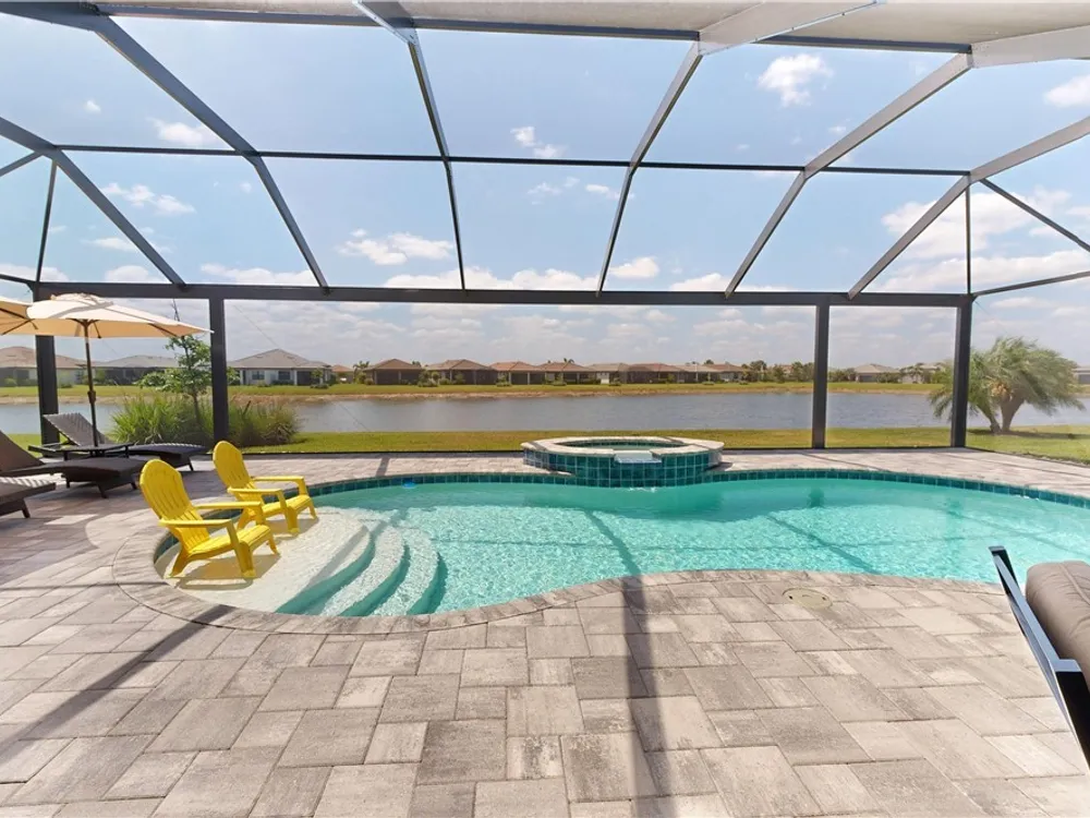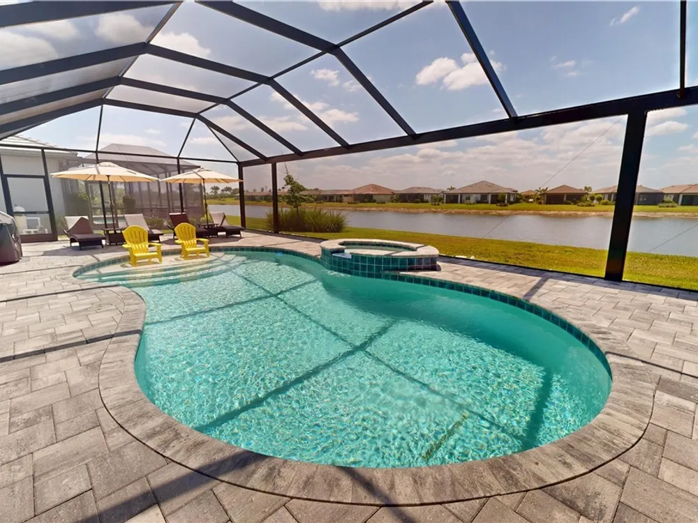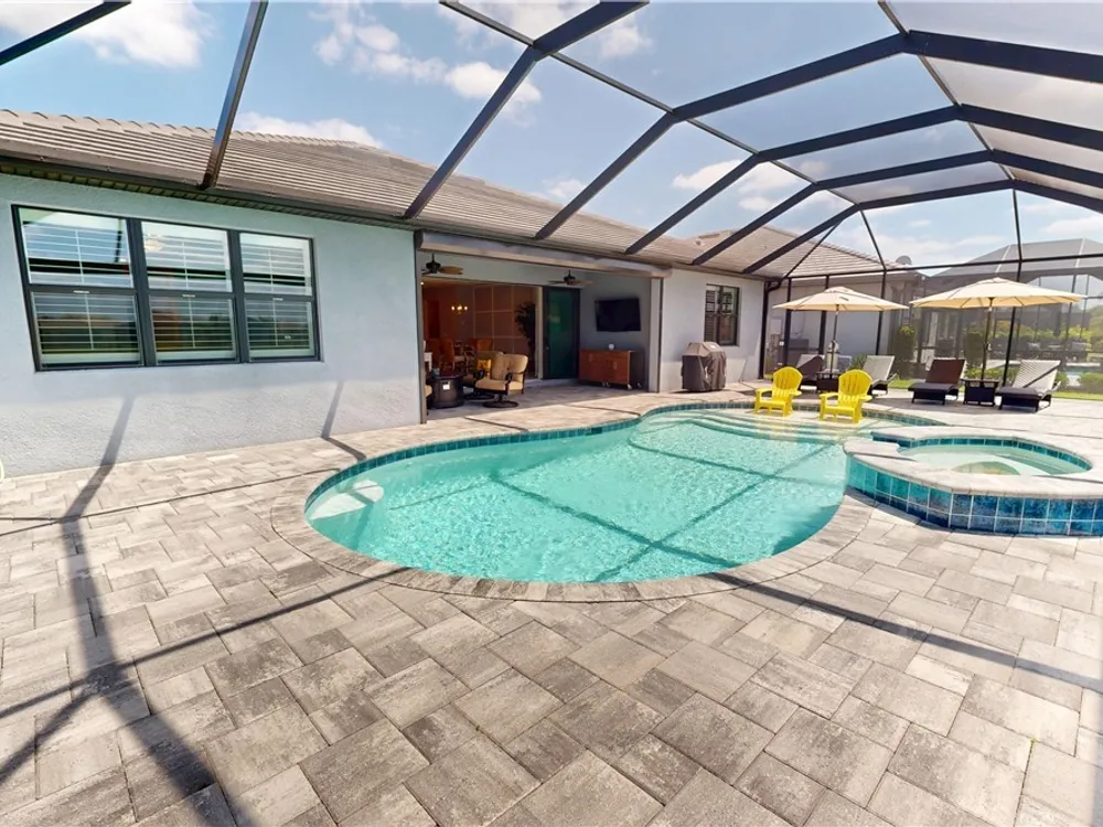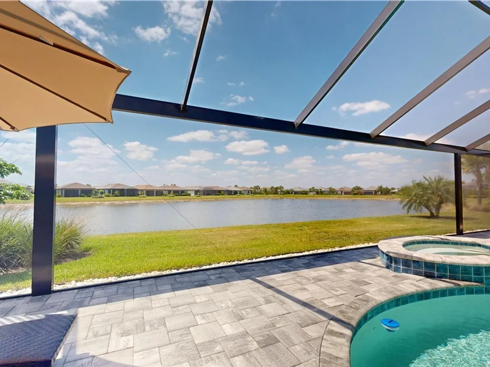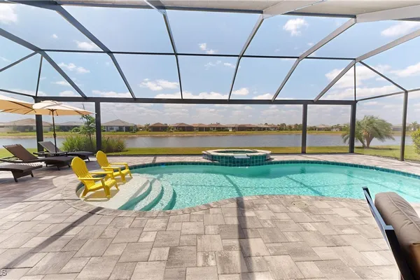 Del Webb Naples, Exceptionally Optioned “Stardom” Model Estate/Echelon Series Home w/Heated Custom Pool & Spa, Impact Windows & Doors, on Premium Water Lot, Stunning Lake Views, Stone Front Elevation, 2318 Sq.Ft. 2815 Total Sq.Ft. 2 Bedrooms, Den, 2 Full Baths, 1 Half Bath, 20’ x 20’1” 2 Car Garage with additional 11’2” x 14’8” Garage Storage Area Perfect for Golf Cart or Workshop. GOLF MEMBERSHIP INCLUDED. Options; Heated Pool & Spa w/Saltwater System, Panoramic Rear Screen Enclosure, Impact Zero Corner Sliders, Whole House Impact Glass, Walk-In Shower at Master Bath, Shower ILO Tub Bath 2, Gourmet Kitchen Option, SS Kitchen Aid Appliances & Exhaust Hood, 42” Kitchen Cabinets w/Crown/Convenience Pckg/Soft-Close/Rollout Trays, Quartz Tops, Tile Backsplash, 20” Porcelain Tiles on Diagonal Throughout, 8’ Interior Doors, Glass French Doors at Den, Finished Laundry Rm w/Utility Sink, Epoxied Garage Floor, Overhead Storage. Too Many Options to List. Property Complimented by Oasis Club Resort Style Amenity Center, Resort Pool/Lap Pool/Jacuzzi, Fitness Center, 12 Pickleball Courts/Tennis Courts/Bocce Courts, Hall, Golf Sim, Movement Rm, Activities Director. Championship Golf Course, Pro Shop. “Come Experience the Beauty that is Ave Maria”