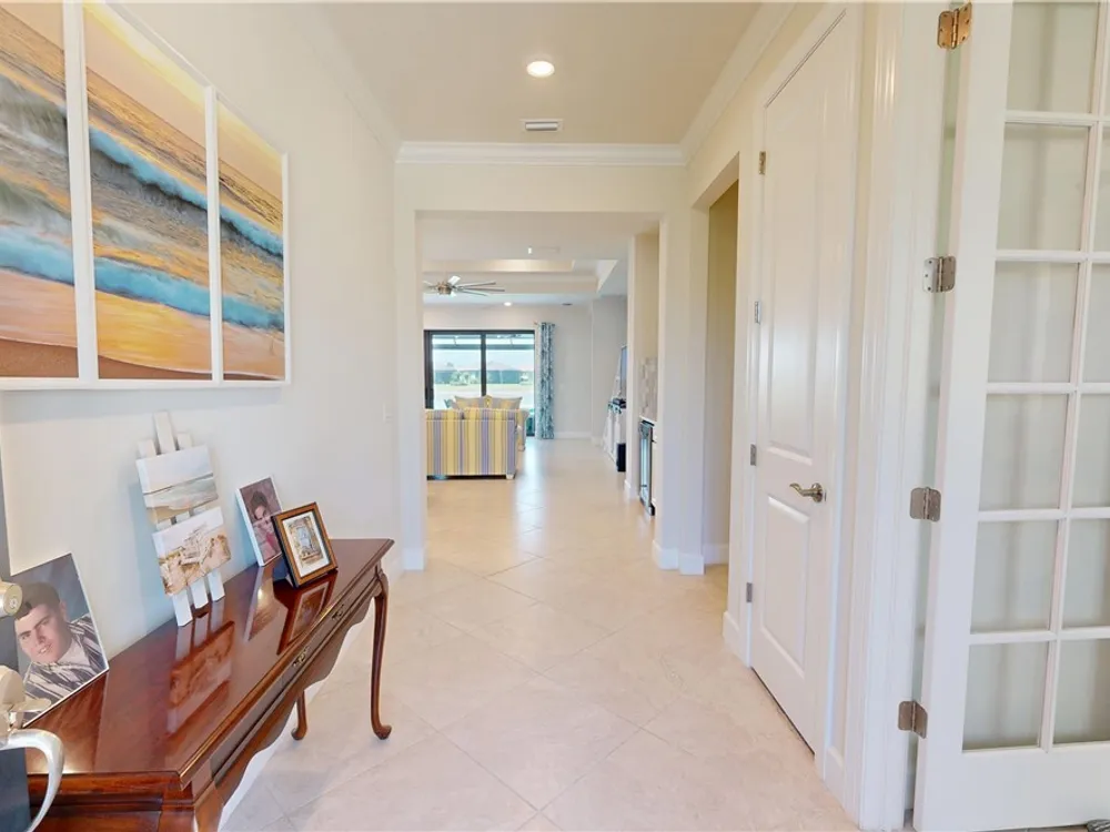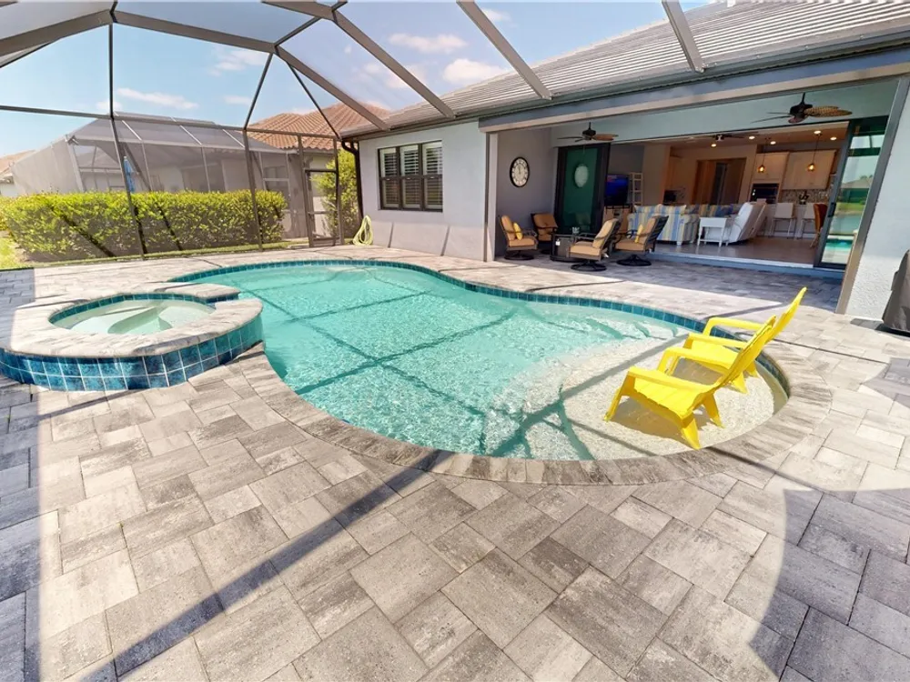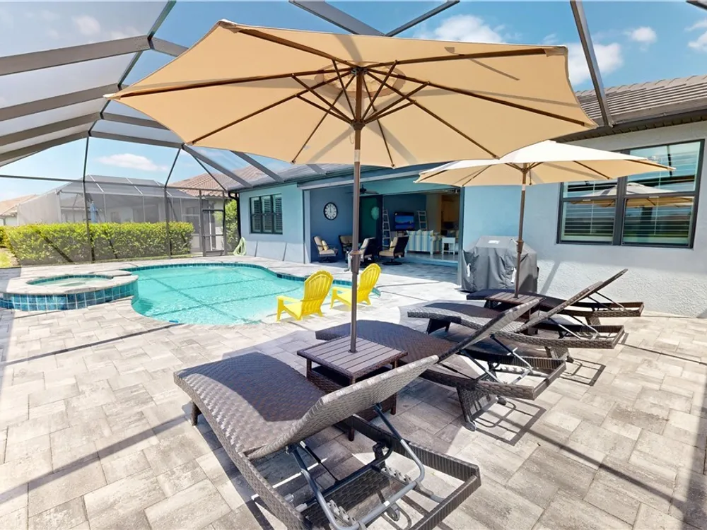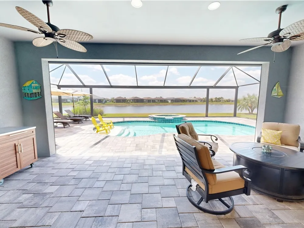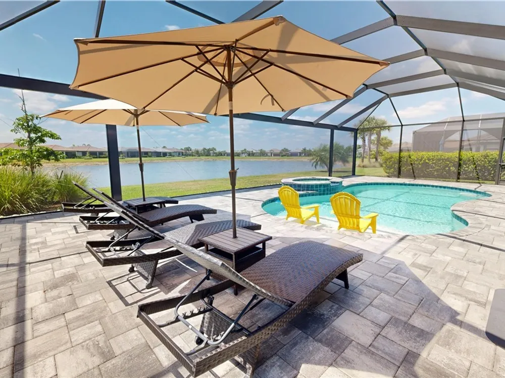 Del Webb Naples, Exceptionally Optioned “Stardom” Model Estate/Echelon Series Home w/Heated Custom Pool & Spa, Impact Windows & Doors, on Premium Water Lot, Stunning Lake Views, Stone Front Elevation, 2318 Sq.Ft. 2815 Total Sq.Ft. 2 Bedrooms, Den, 2 Full Baths, 1 Half Bath, 20’ x 20’1” 2 Car Garage with additional 11’2” x 14’8” Garage Storage Area Perfect for Golf Cart or Workshop. GOLF MEMBERSHIP INCLUDED. Options; Heated Pool & Spa w/Saltwater System, Panoramic Rear Screen Enclosure, Impact Zero Corner Sliders, Whole House Impact Glass, Walk-In Shower at Master Bath, Shower ILO Tub Bath 2, Gourmet Kitchen Option, SS Kitchen Aid Appliances & Exhaust Hood, 42” Kitchen Cabinets w/Crown/Convenience Pckg/Soft-Close/Rollout Trays, Quartz Tops, Tile Backsplash, 20” Porcelain Tiles on Diagonal Throughout, 8’ Interior Doors, Glass French Doors at Den, Finished Laundry Rm w/Utility Sink, Epoxied Garage Floor, Overhead Storage. Too Many Options to List. Property Complimented by Oasis Club Resort Style Amenity Center, Resort Pool/Lap Pool/Jacuzzi, Fitness Center, 12 Pickleball Courts/Tennis Courts/Bocce Courts, Hall, Golf Sim, Movement Rm, Activities Director. Championship Golf Course, Pro Shop. “Come Experience the Beauty that is Ave Maria”