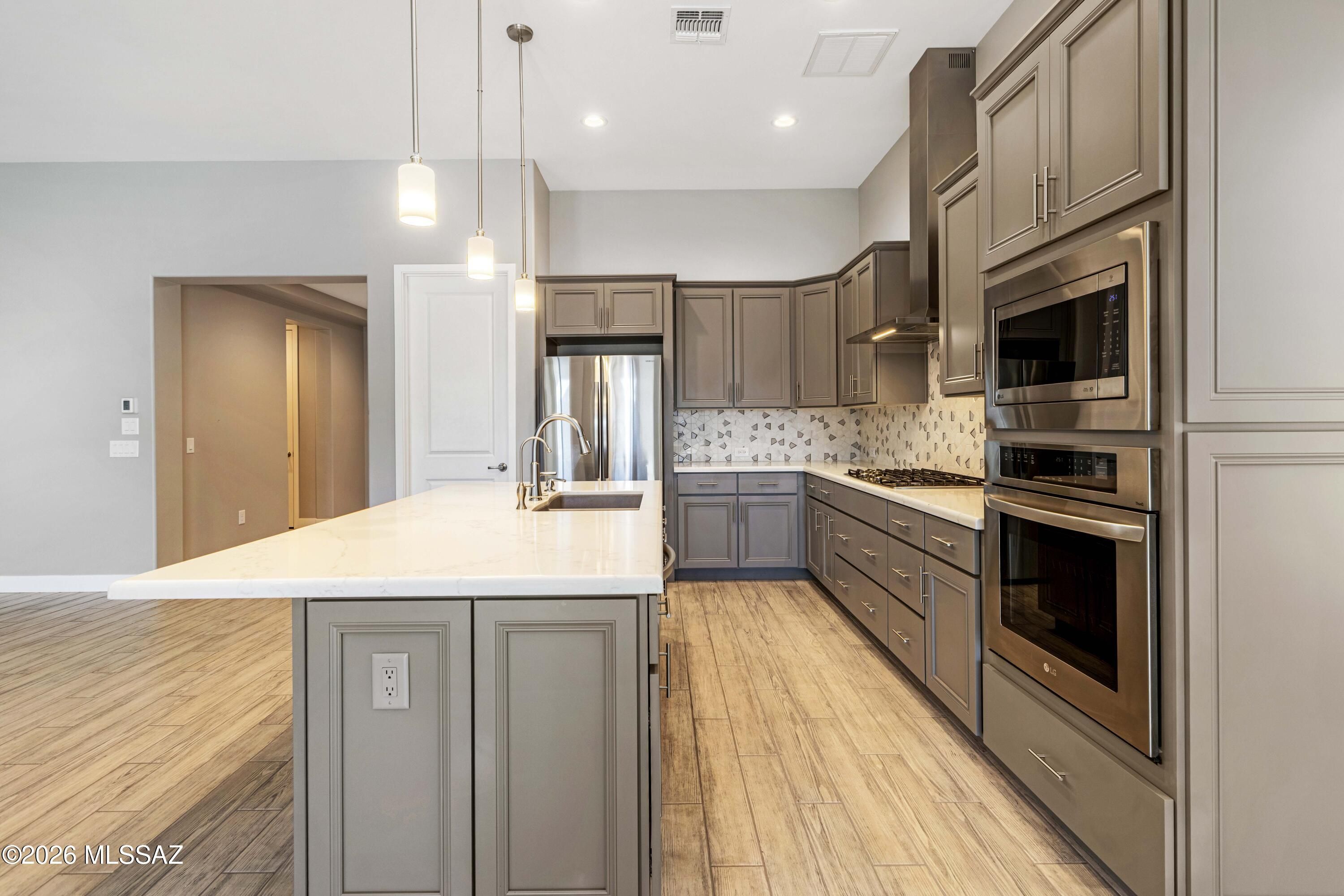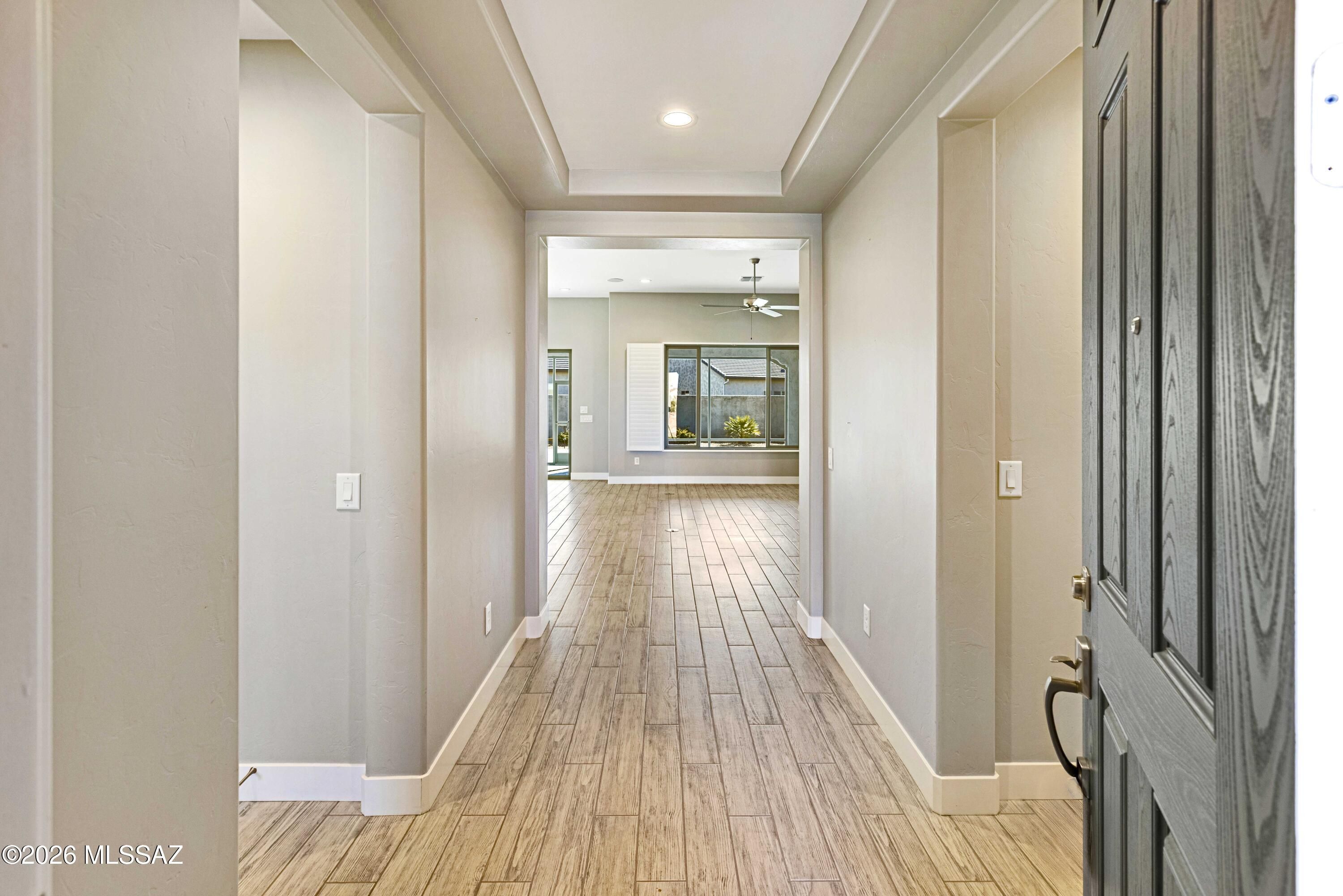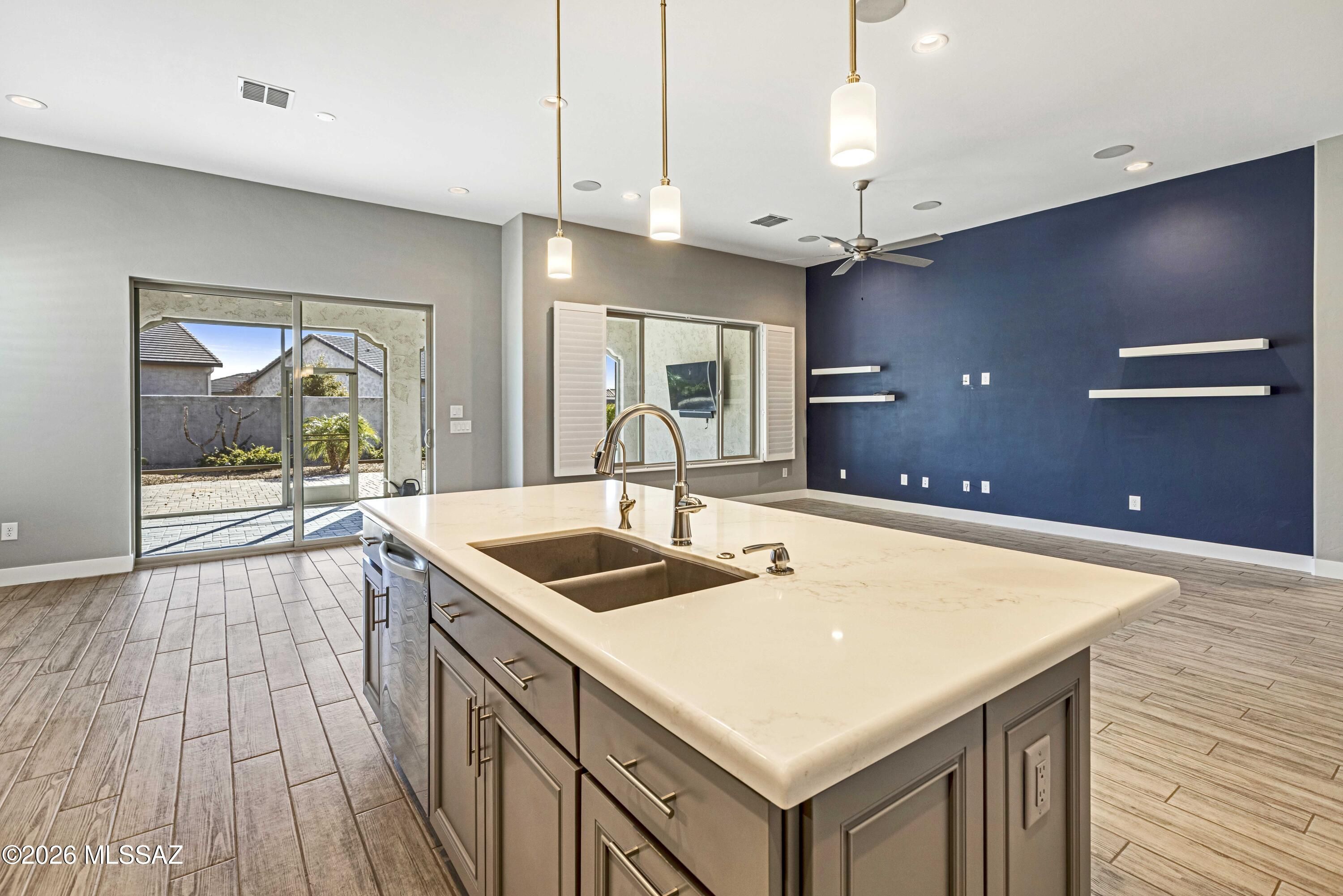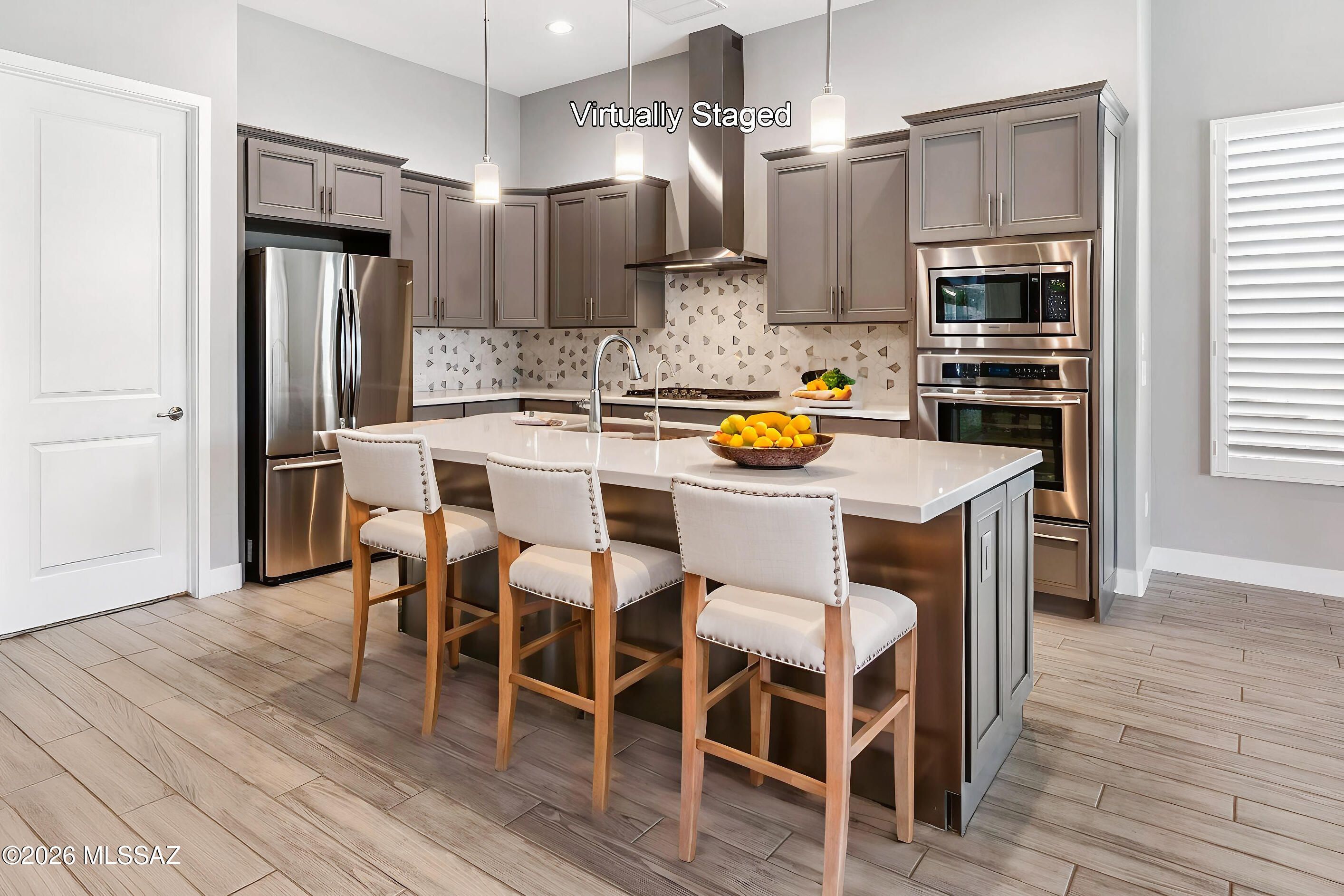 Experience sustainable luxury in this stunning 2022 Alora model at SaddleBrooke Ranch! This energy-efficient gem features a leased solar system with NO monthly fees. The home boasts every structural extension available: master suite, dining area, den, and garage. The gourmet chef's kitchen is a showstopper with 42'' soft-close cabinetry, quartz counters, and custom pull-outs. High-end finishes include rare solid core doors, a tankless water heater, and whisper-quiet fans. The epoxy-floored garage features a dedicated golf cart bay and workbench. Relax in the screened-in porch or the backyard oasis with mature fruit trees. Why buy new when you can have all of this? Move-in ready perfection with premium upgrades and mature landscaping that new construction can't match!