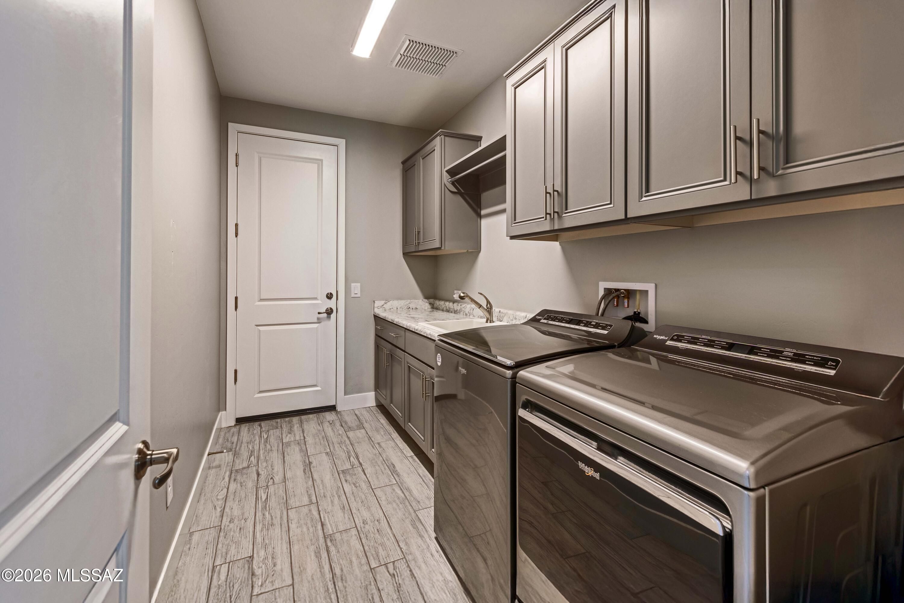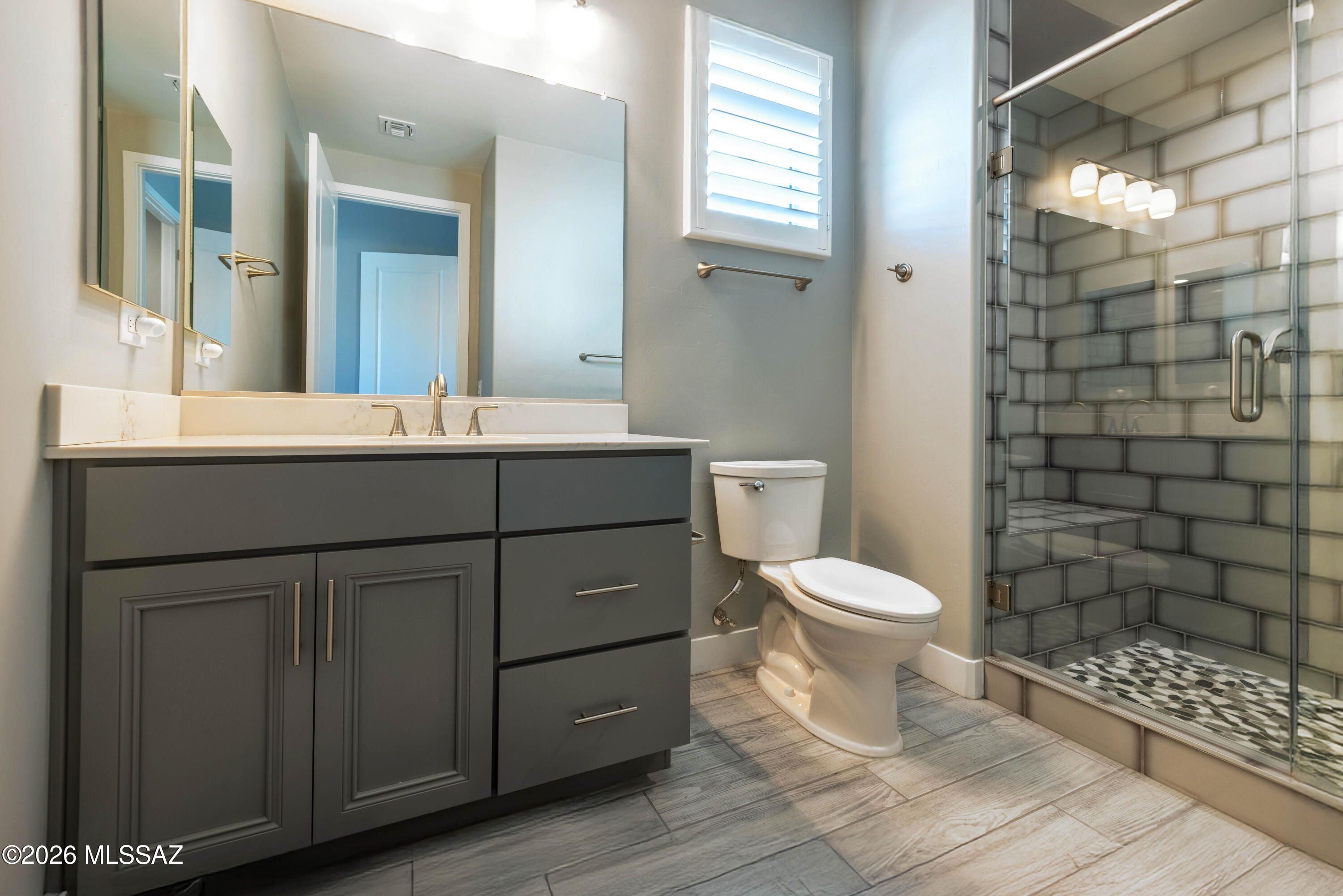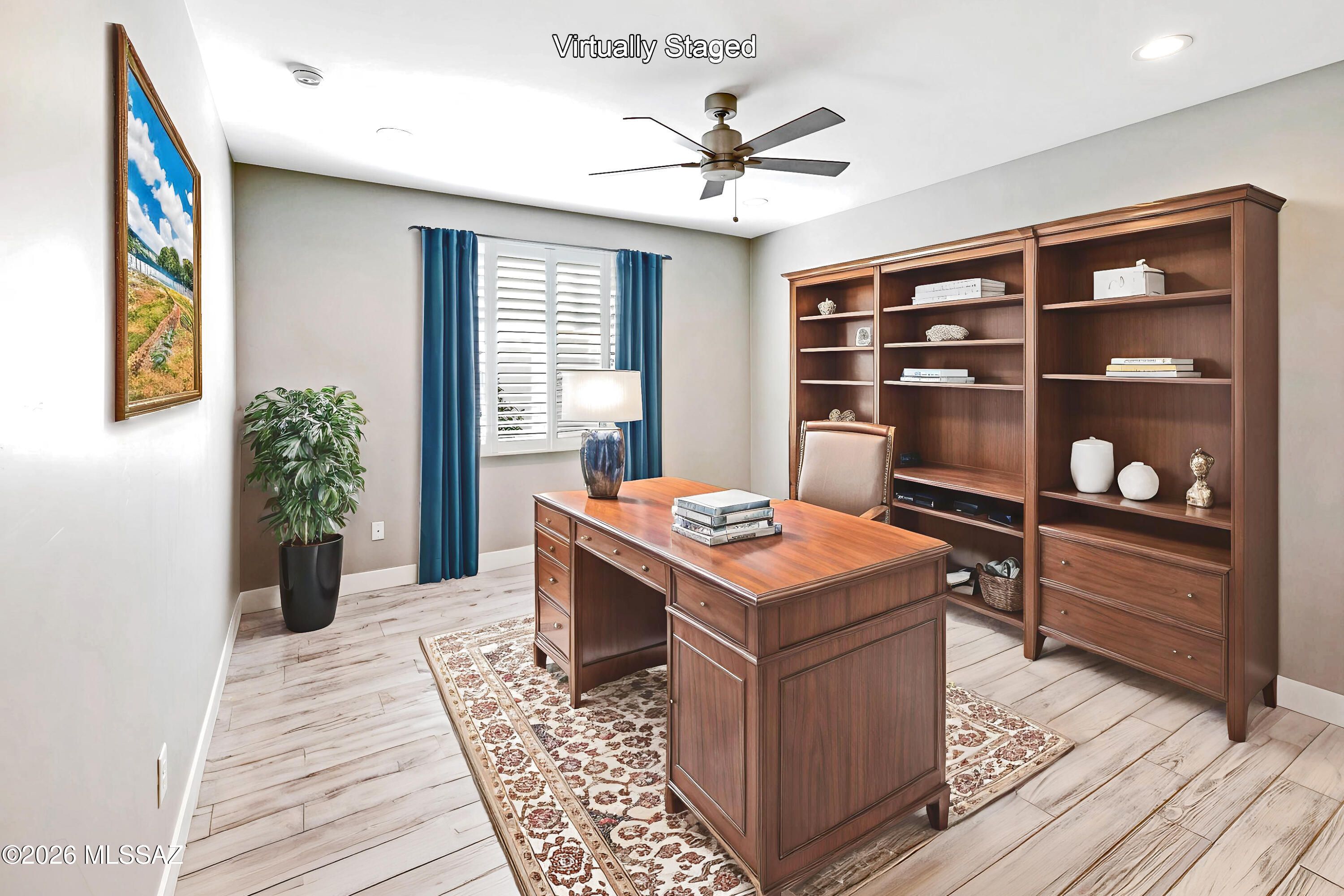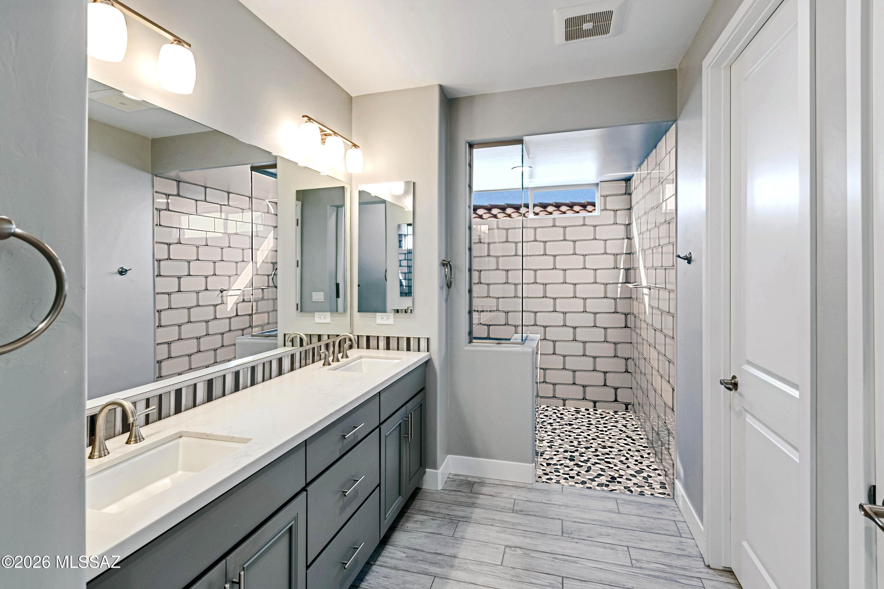 Experience sustainable luxury in this stunning 2022 Alora model at SaddleBrooke Ranch! This energy-efficient gem features a leased solar system with NO monthly fees. The home boasts every structural extension available: master suite, dining area, den, and garage. The gourmet chef's kitchen is a showstopper with 42'' soft-close cabinetry, quartz counters, and custom pull-outs. High-end finishes include rare solid core doors, a tankless water heater, and whisper-quiet fans. The epoxy-floored garage features a dedicated golf cart bay and workbench. Relax in the screened-in porch or the backyard oasis with mature fruit trees. Why buy new when you can have all of this? Move-in ready perfection with premium upgrades and mature landscaping that new construction can't match!