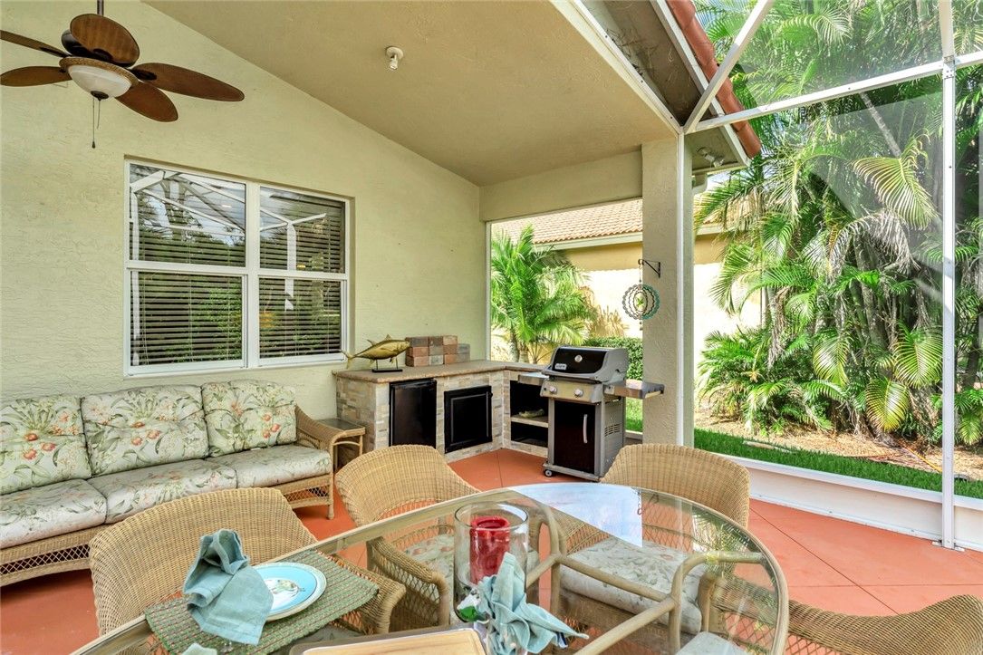 Woodfield 55+ Community – 3BR/2BA enjoys peace & privacy w/ preserve location. Beautifully maintained 2,150 sf w/volume ceilings, tile floors, impact windows & island kitchen. Walk in tub & huge 11x6 closet in primary suite. Extended screened patio with summer kitchen is perfect for entertaining or relaxing outdoors. Active social calendar & resort-style clubhouse with pool, HarTru tennis, fitness, billiard rm, Bocce & onsite manager. Conveniently located near Vero Beach’s shopping, dining & cultural venues & events. Sizes are approx/subj to error.