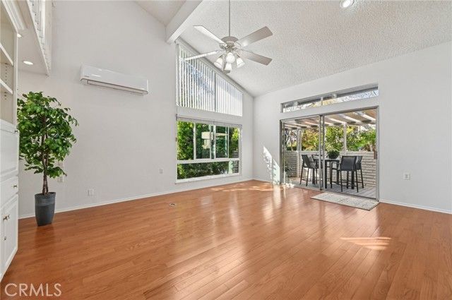 Enjoy comfort, space, and a wonderful sense of community in this beautifully upgraded “New Seville” two-story townhome, ideally located just a short stroll from scenic Aliso Creek Park—one of the most beloved walking areas in Laguna Woods. Step inside to a bright and inviting living room with soaring cathedral ceilings and large dual-pane windows that fill the home with natural light and peaceful green views. The open floor plan offers an easy flow between the living, dining, and kitchen areas—perfect for relaxed living or visiting with family and friends. You’ll love the recently installed wood-look laminate flooring, recessed lighting, and the comfort of energy-efficient ductless mini-split systems throughout. A lovely tiled front patio is the perfect spot for morning coffee or an afternoon visit with neighbors. Updated kitchen features refaced cabinets, granite countertops, and a large window over the sink—ideal for anyone who enjoys cooking with a view. The adjacent dining area includes attractive glass-front cabinetry for displaying your favorite dishes or collectibles. The home offers a bedroom and bath on each level, giving flexibility for guests or caregivers. The downstairs primary suite includes a washer/dryer, recessed lighting and an upgraded bathroom with a granite-topped vanity and a low-step lounging tub/shower for easy access. Upstairs, a spacious loft overlooks the living area—great for a reading nook, TV space, or office—and the upstairs bedroom opens to the full-size balcony where you can enjoy the sunset and soft evening breezes. Upstairs bath includes a walk-in shower with built-in seat and stylish glass barn-door enclosure. With its light-filled interior, thoughtful updates, and prime location near creekside walking paths, this charming townhome offers both comfort and independence—a wonderful place to enjoy the best of Laguna Woods living. Residents enjoy a 27-hole championship golf course, a 9-hole executive par 3 course, pickleball and tennis courts, lawn bowling, gyms, clubhouses, swimming pools, horse stables, gardening centers, artist studios, computer workrooms and classes + over 200 clubs and organizations. NOTE:HOA LANDSCAPING IN PROGRESS. NEW EXTERIOR PHOTOS WILL BE ADDED ONCE COMPLETED!