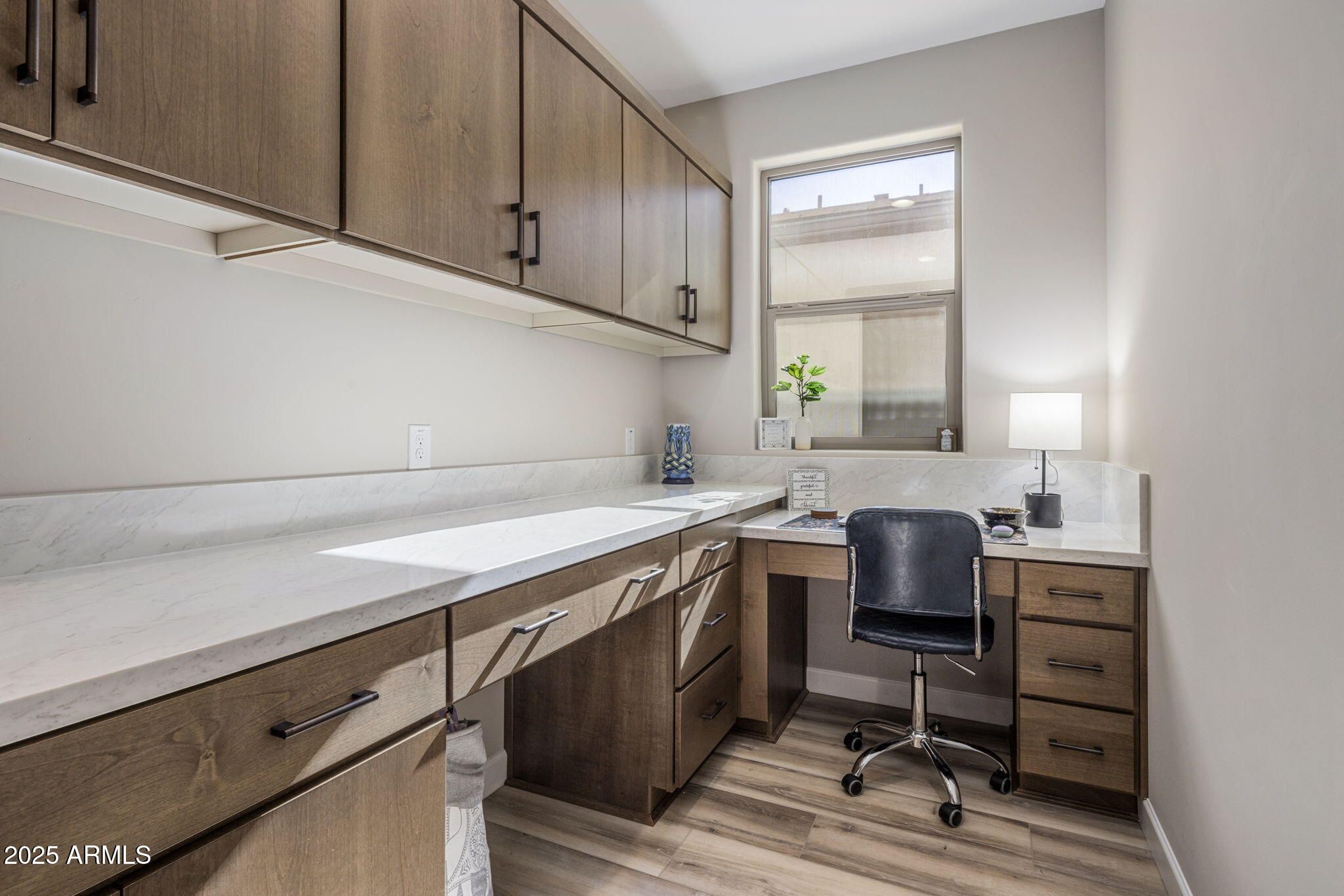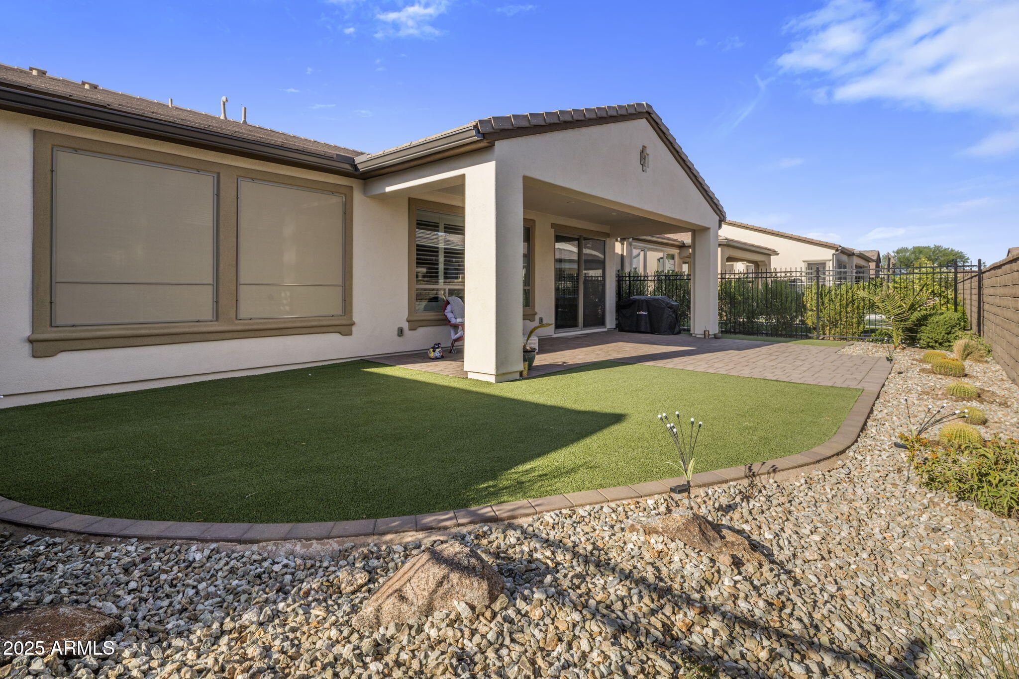 Why Wait for New Construction? Move-In Ready & Packed with Upgrades! Skip the long wait times and extra expenses of a new build! This beautifully maintained, lightly lived-in homebuilt in 2022 is move-in ready and loaded with high-end finishes. Offering 2 bedrooms, 2 bathrooms, plus a dedicated office, this thoughtfully designed residence features a spacious open-concept great room with a split floor plan, ideal for added privacy when guests visit. The chef's kitchen is a true showstopper, complete with quartz countertops, a large island with gas cooktop, custom tile backsplash, stainless steel appliances, a farmhouse sink, soft-close cabinetry, and more. Throughout the home, you'll find engineered wood plank flooring, brand-new shutters, surround sound, and an oversized laundry room with a utility sink, abundant storage, and a built-in workstation. Retreat to the luxurious primary suite featuring a custom tiled walk-in shower with bench, double vanities, and an oversized walk-in closet. The guest bathroom includes a tub with custom tile surround, wall-mounted cabinetry, and under-mount lighting for a touch of elegance. Step outside to a newly finished backyard oasis featuring expansive paver patios, artificial turf, low-maintenance landscaping, multiple palm trees, and a brand-new drip systemall within a fully fenced yard for added privacy. Why buy new when you can save thousands and move in tomorrow? Don't miss this exceptional opportunity!