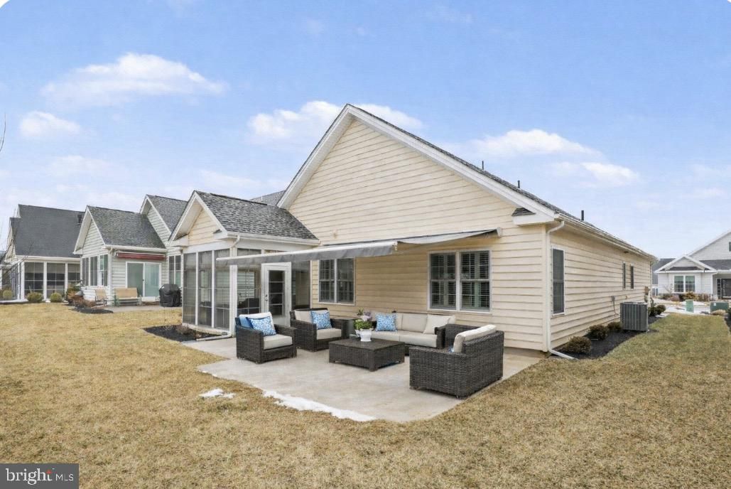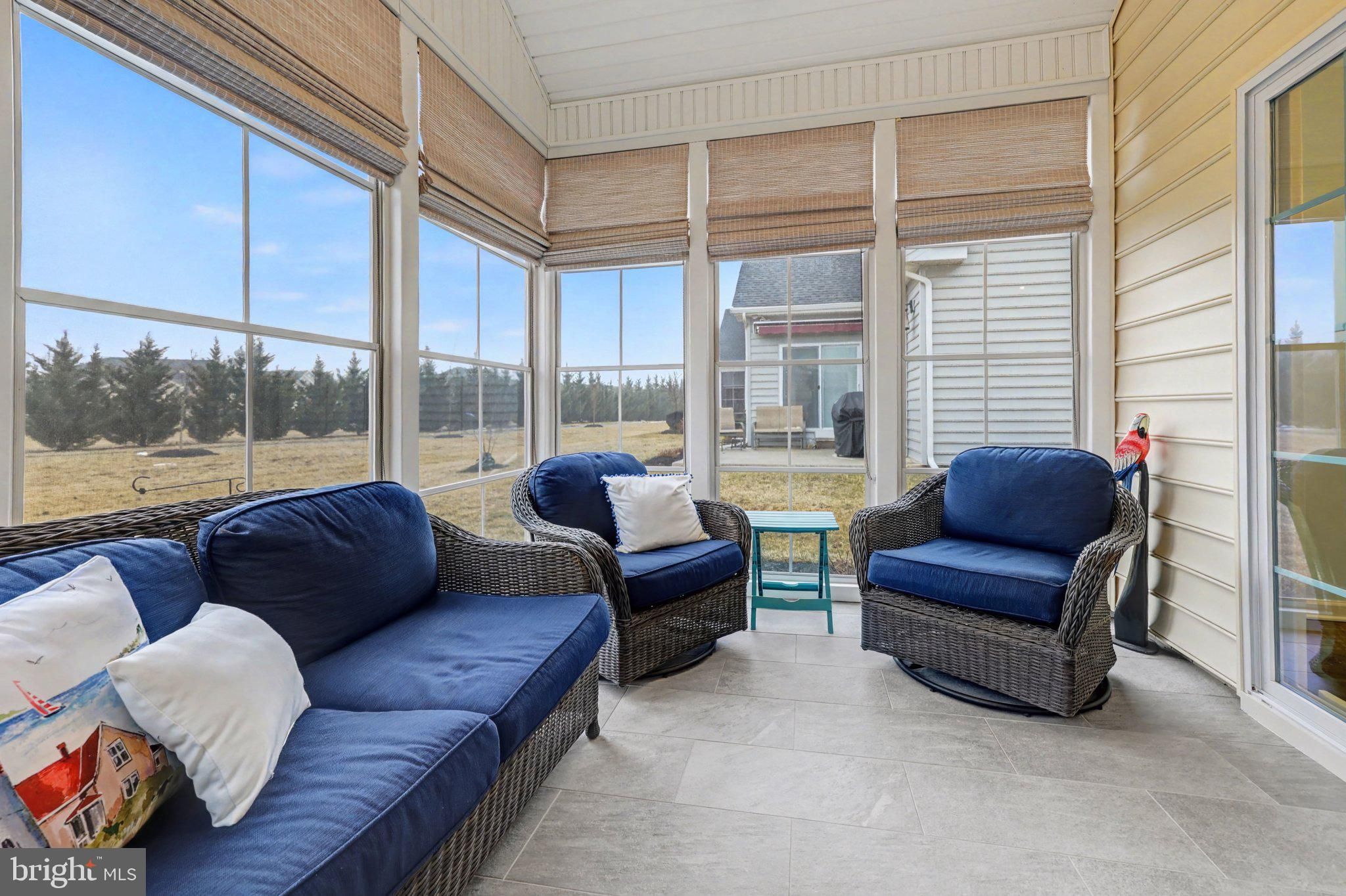 Beautiful detached home located in the highly desirable Active Adult community of Traditions of America at Silver Spring, offering convenient first-floor living and a modern, open layout. This home is light, with airy finishes and crisp design elements that create a subtle coastal inspired feel . A 3-bedroom, 2-bath home, the third bedroom—currently used as a home office—that can easily function as a true bedroom.The inviting kitchen blends warmth and style with rich wood cabinetry, crisp white countertops, and a spacious center island perfect for gathering. Modern white appliances and a bright tile backsplash add a fresh touch, while pendant and recessed lighting create a welcoming glow. Open to the dining area and filled with natural light, it’s a beautiful and functional heart of the home. The primary suite is a relaxing retreat with walk-in closets, and a private en-suite bath. Step outside to enjoy the large screened-in patio with a retractable awning, overlooking lush greenery and an idyllic gazebo—creating a peaceful and private outdoor setting. The 3 season room is ideal for outdoor dining or simply unwinding in comfort. In addition, the second floor offers an ideal space for extra storage or a dedicated hobby room. Every nook has been thoughtfully designed to maximize additional storage throughout the home. Residents enjoy an exceptional resort-style lifestyle with access to a beautifully appointed clubhouse, indoor and outdoor pools, pickleball and tennis courts, bocce, a putting green, hot tub, saunas, fitness and exercise rooms, billiard room, library, media room, and a spacious event room for gatherings and celebrations. Whether you’re staying active, connecting with neighbors, or simply relaxing, there’s something here for everyone. Experience the ease of low-maintenance living in a vibrant community designed to help you truly enjoy every day. Shopping and Restaurants only a few miles away!