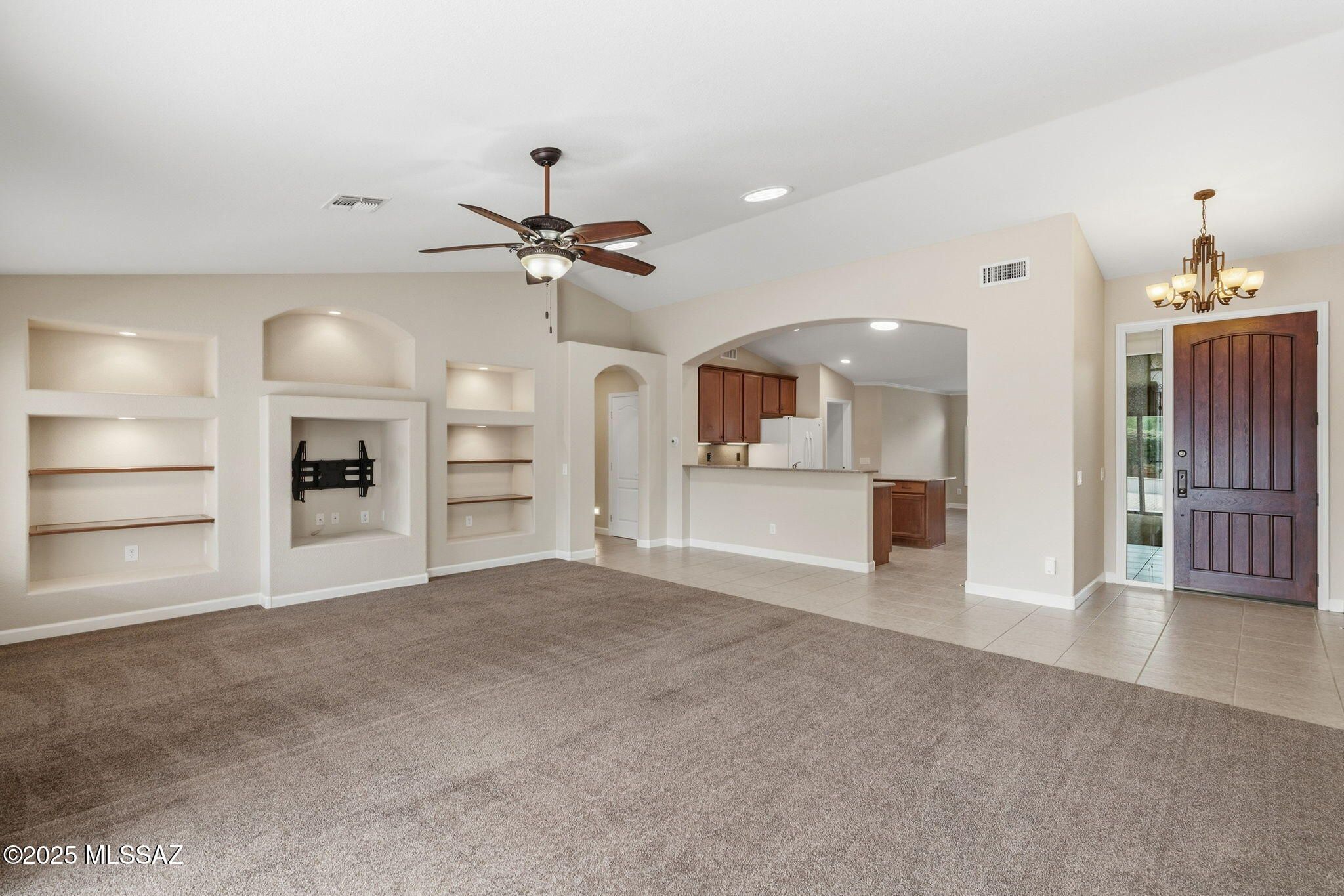- Ceiling Fan(s), Entertainment Center, Entrance Foyer, High Ceilings, Solar Tube(s), Split Bedrooms, Vaulted Ceiling(s), Walk-In Closet(s)