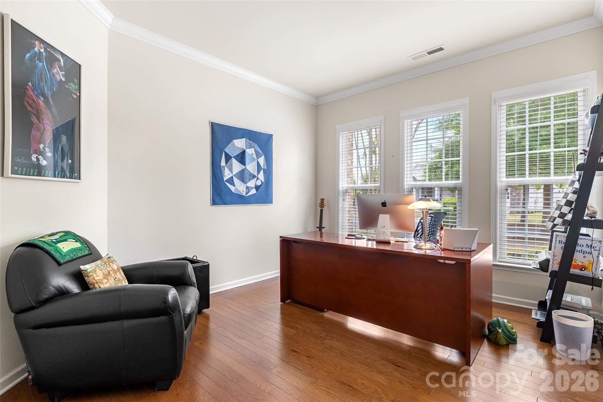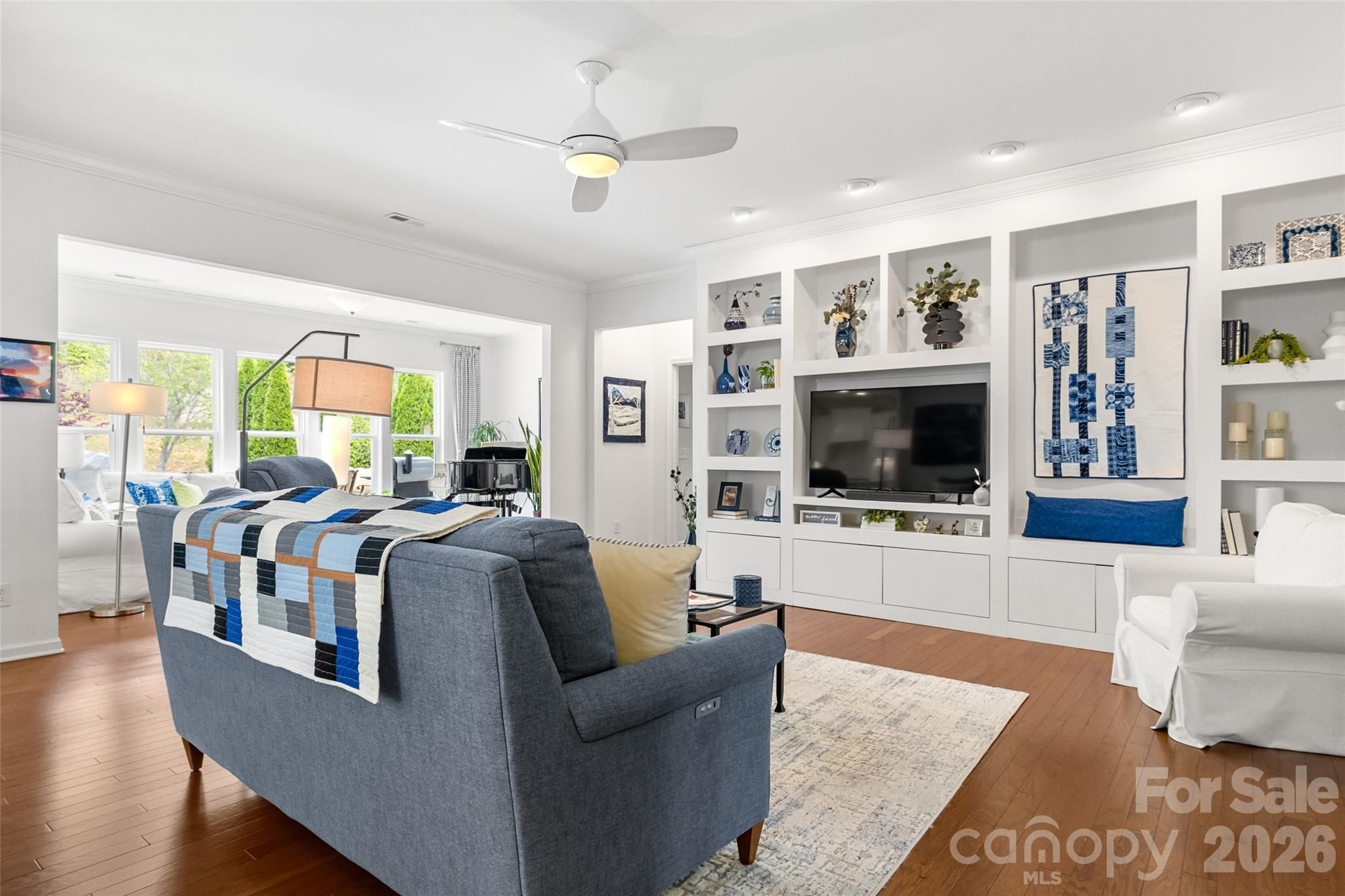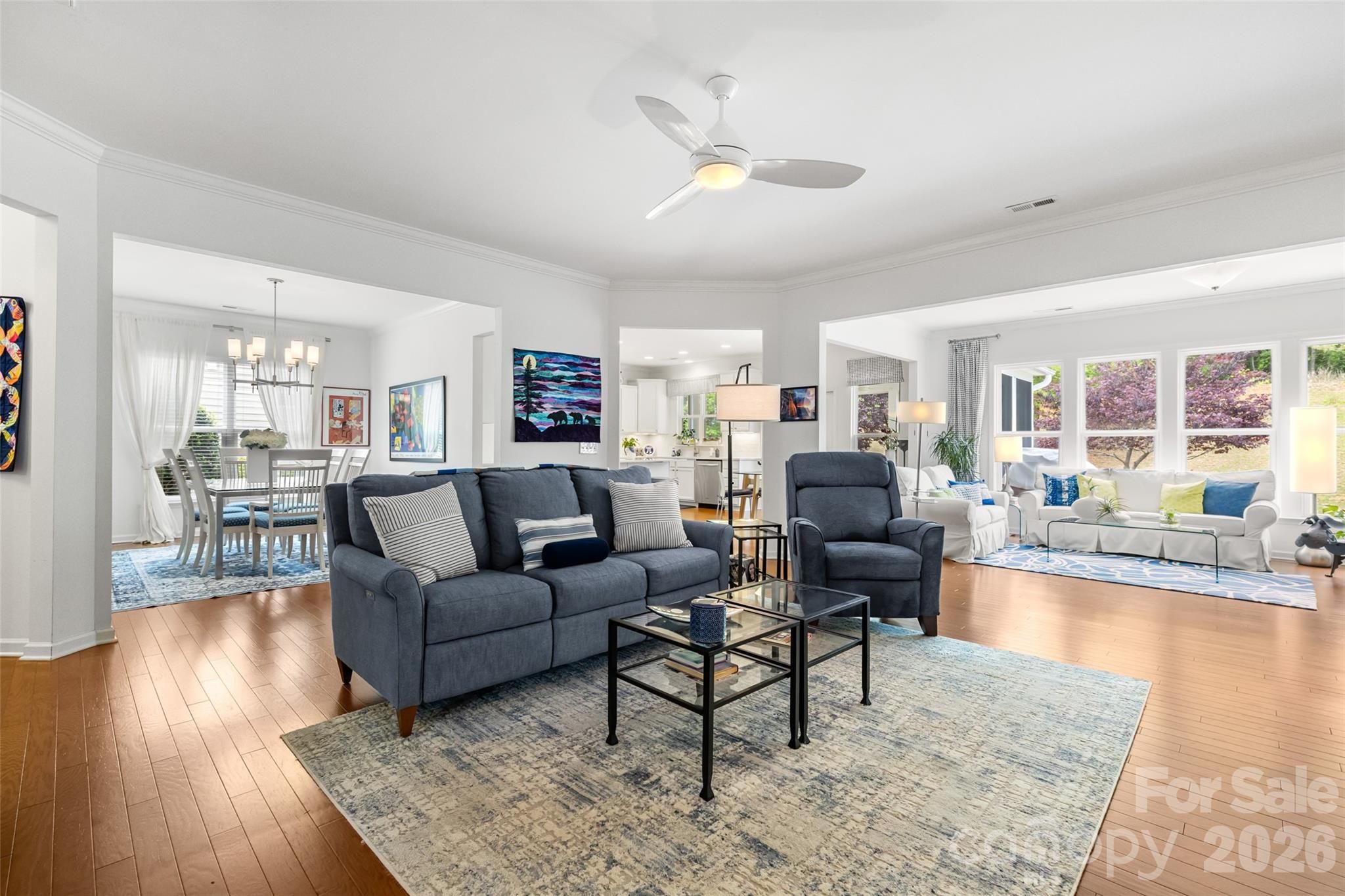Welcome to this beautiful Crestwood Meadow home in Sun City Carolina Lakes, where thoughtful design and inviting spaces come together effortlessly. A paver driveway extension leads to a charming walkway and covered front entry, setting the tone for what awaits inside. Just off the foyer, elegant double doors open into a private home office or study - perfect for remote work or a quiet retreat. As you continue down the front hallway, you’ll find two generously sized secondary bedrooms with access to a full hall bath, offering comfort and privacy for overnight guests. The home then opens into a spacious, open-concept living area designed with both everyday living and entertaining in mind. The great room is anchored by a striking wall of built-in shelving with accent lighting, creating a warm and polished focal point. A formal dining area with a chandelier provides the perfect setting for gatherings, while the adjacent kitchen and sunroom truly shine. A wall of windows fills the sunroom with natural light, creating a bright and cheerful space to relax. The kitchen features an island with seating, gas range, tile backsplash, stainless steel appliances, and a cozy breakfast nook - each space offering lovely views of the backyard. Tucked away at the rear of the home, the spacious primary suite offers a peaceful retreat. The ensuite bath includes a walk-in shower with glass enclosure and a dual sink vanity. One of the home’s standout features is the screened porch, complete with a cathedral ceiling, expansive tile flooring, and dual ceiling fans. This inviting outdoor space is perfect for enjoying warm spring days in comfort and privacy. Just beyond, a custom patio provides additional room to soak up the sun or host gatherings with ease. Living here also means access to the exceptional, resort-style amenities of Sun City Carolina Lakes, including golf, indoor and outdoor pools, tennis and pickleball courts, scenic walking trails, water access, and more - offering a lifestyle as impressive as the home itself.