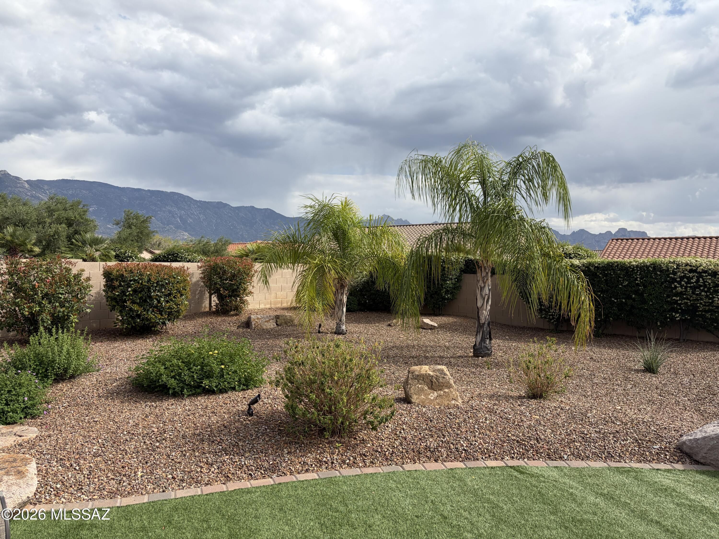 This Laredo has it all! Casita, golf cart garage and mountain views. Featuring an open concept floorplan, 3 bedrooms, 3 full-bathrooms, three solar tubes for additional light, den with murphy bed, spacious covered patio, kitchen island, SS appliances, and Stonite countertop compliment the beautiful cabinetry. This home is set up for entertaining. Start enjoy the SaddleBrooke lifestyle today!