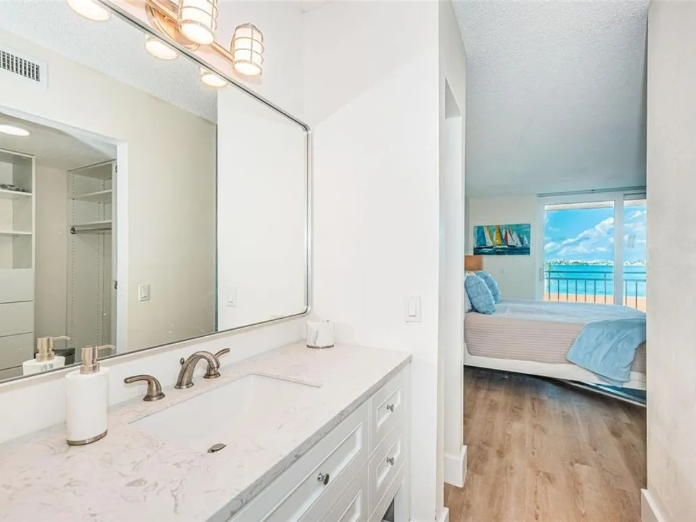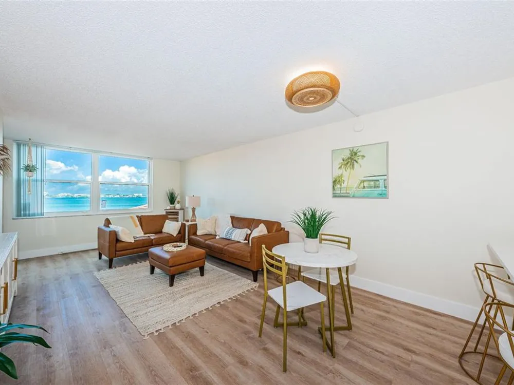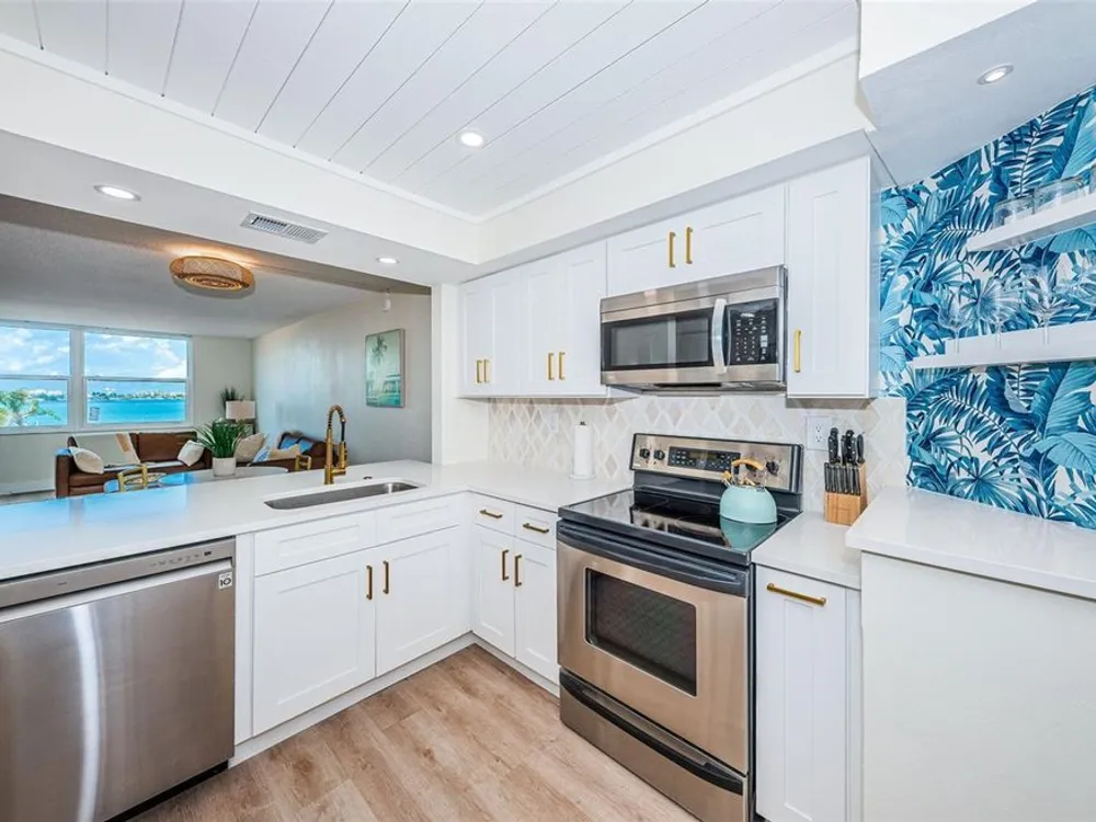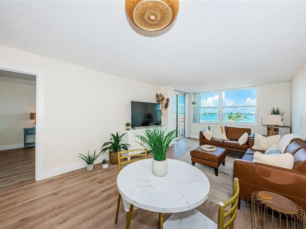 Stunning Condo @ Isla Del Sol with Dual-Purpose Investment: Your Florida Getaway + Seasonal Rental Opportunity. Breathtaking water views & stunning sunsets from this beautifully remodeled 1 bed / 1.5 bath condo — fully furnished and truly turn-key. Whether you’re looking for a weekend retreat, full-time residence, or immediate rental investment, this property is ready for you. The spacious primary bedroom features an updated en-suite bath, a generous walk-in closet, and direct access to the oversized balcony where you can soak in sweeping views of Boca Ciega Bay. The completely renovated kitchen includes new cabinetry, quartz countertops, modern fixtures, and updated appliances. Additional upgrades include luxury vinyl flooring throughout, new bathroom vanities and fixtures, and hurricane-rated windows and sliding doors. Enjoy resort-style amenities with a pool and spa located right on the waterfront. Assigned parking space #72 included. Optional golf, tennis, yacht, or social memberships at Isla Del Sol Yacht & Country Club. All this just minutes from the award-winning beaches of Fort De Soto Park and St. Pete Beach, and with quick access to I-275 — only 15 minutes from the vibrant restaurants, shopping, and nightlife of downtown St. Petersburg.