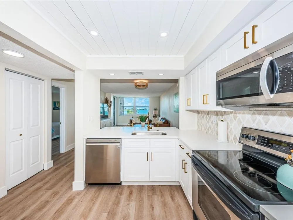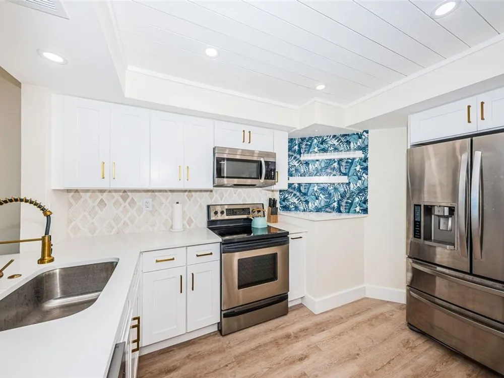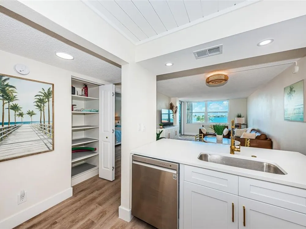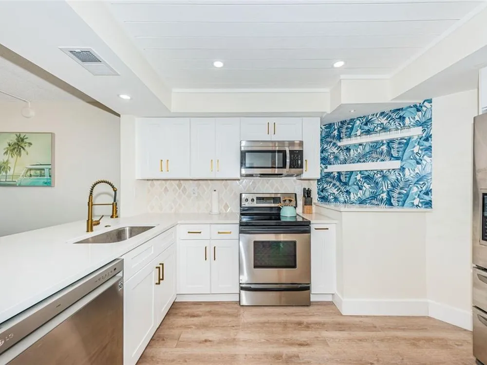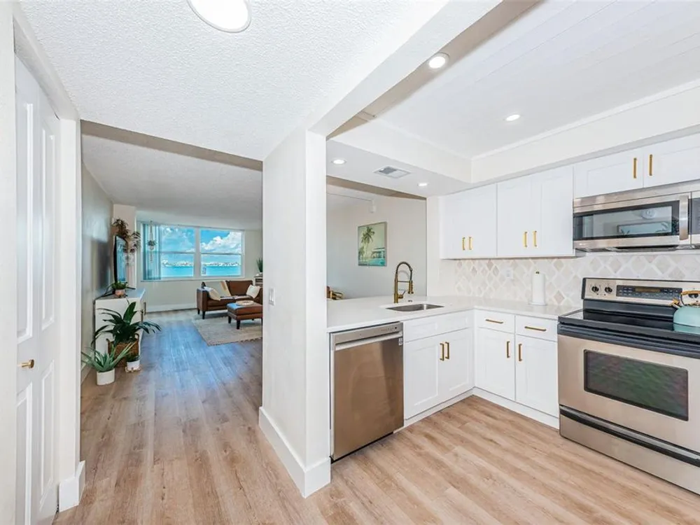 Stunning Condo @ Isla Del Sol with Dual-Purpose Investment: Your Florida Getaway + Seasonal Rental Opportunity. Breathtaking water views & stunning sunsets from this beautifully remodeled 1 bed / 1.5 bath condo — fully furnished and truly turn-key. Whether you’re looking for a weekend retreat, full-time residence, or immediate rental investment, this property is ready for you. The spacious primary bedroom features an updated en-suite bath, a generous walk-in closet, and direct access to the oversized balcony where you can soak in sweeping views of Boca Ciega Bay. The completely renovated kitchen includes new cabinetry, quartz countertops, modern fixtures, and updated appliances. Additional upgrades include luxury vinyl flooring throughout, new bathroom vanities and fixtures, and hurricane-rated windows and sliding doors. Enjoy resort-style amenities with a pool and spa located right on the waterfront. Assigned parking space #72 included. Optional golf, tennis, yacht, or social memberships at Isla Del Sol Yacht & Country Club. All this just minutes from the award-winning beaches of Fort De Soto Park and St. Pete Beach, and with quick access to I-275 — only 15 minutes from the vibrant restaurants, shopping, and nightlife of downtown St. Petersburg.