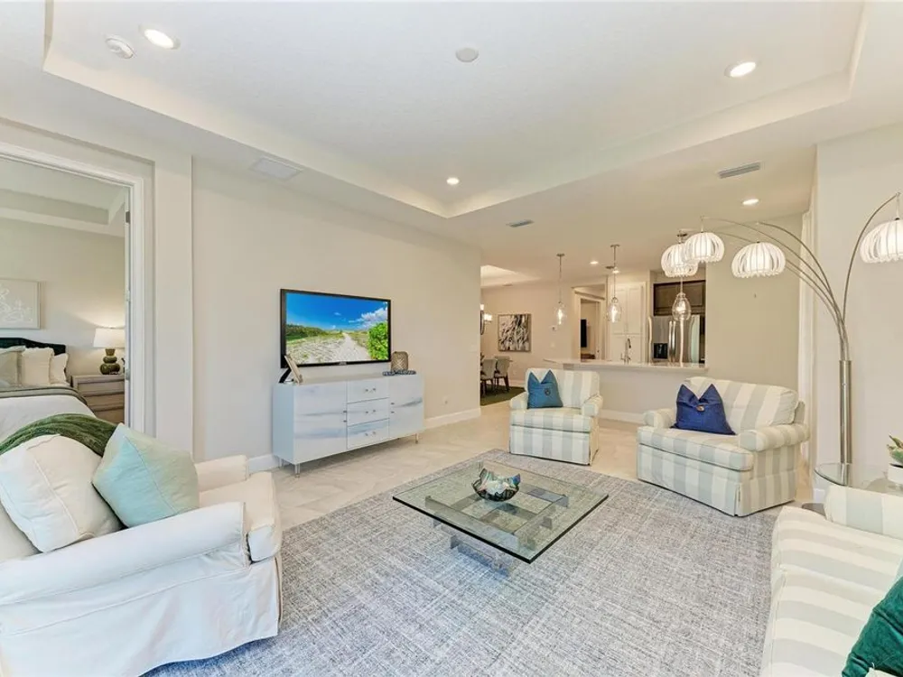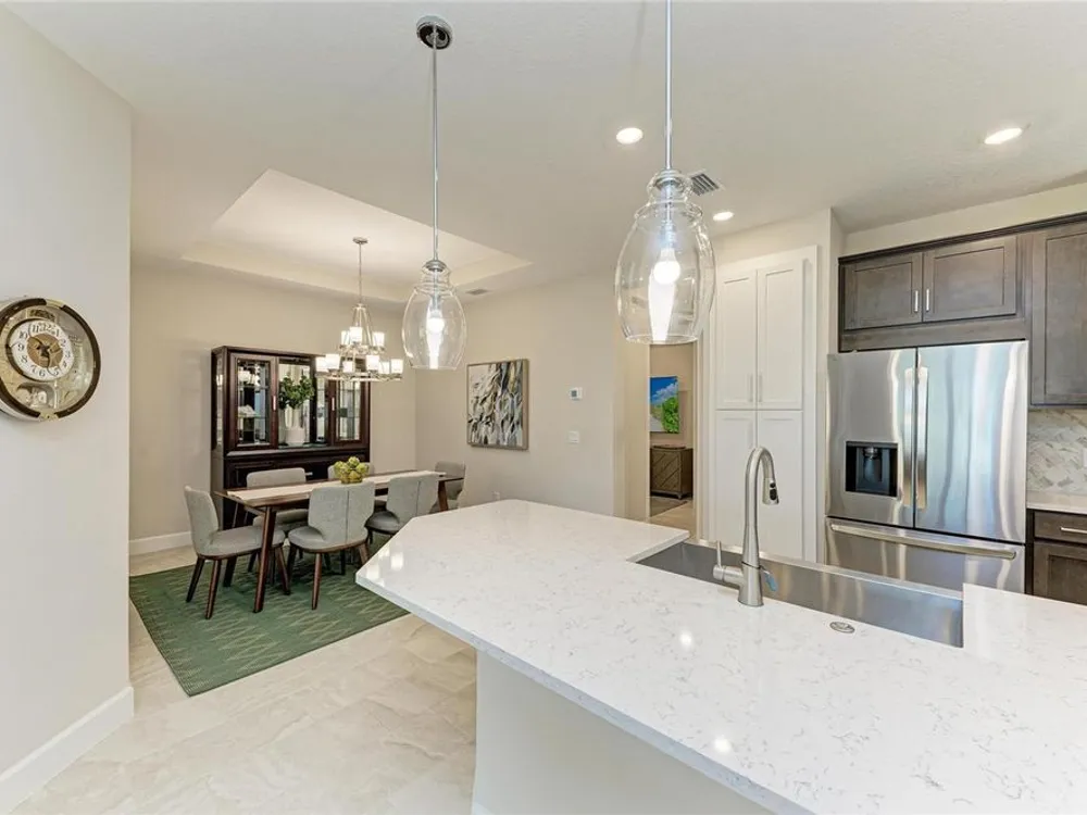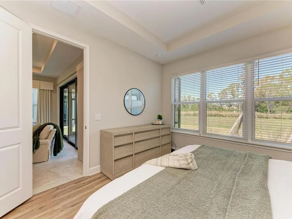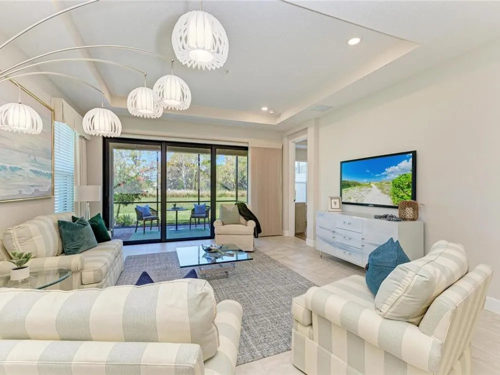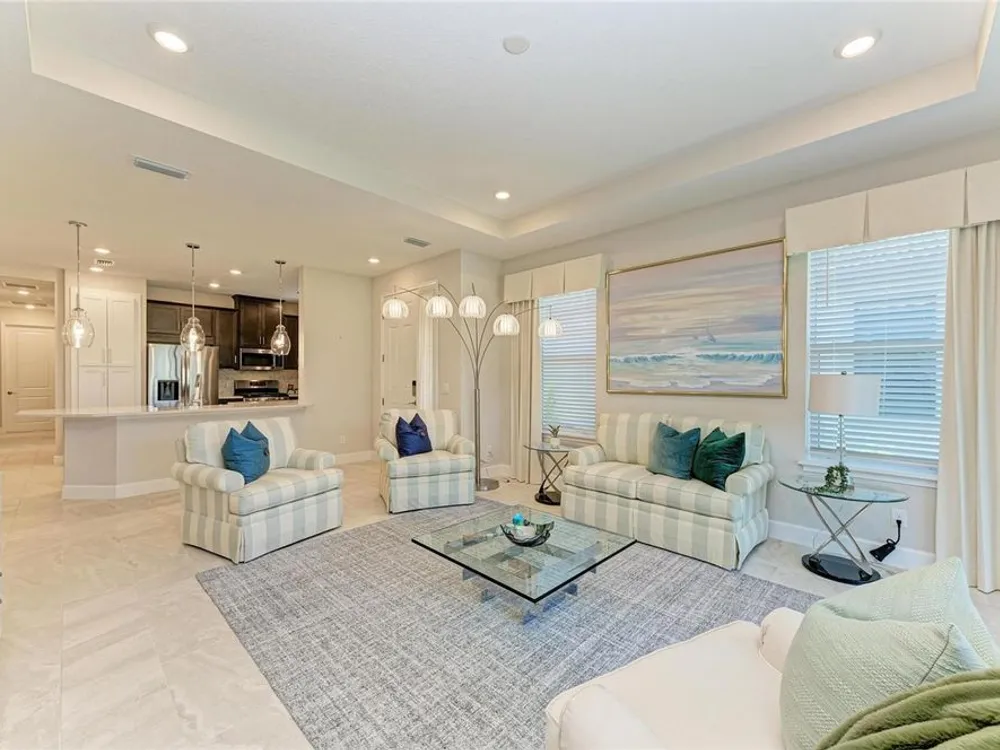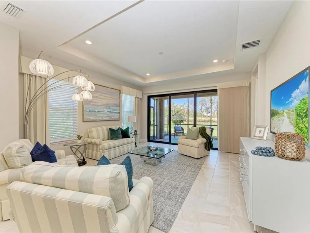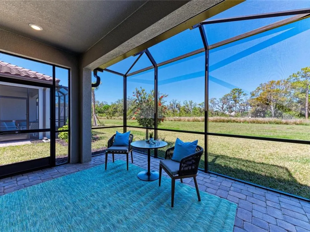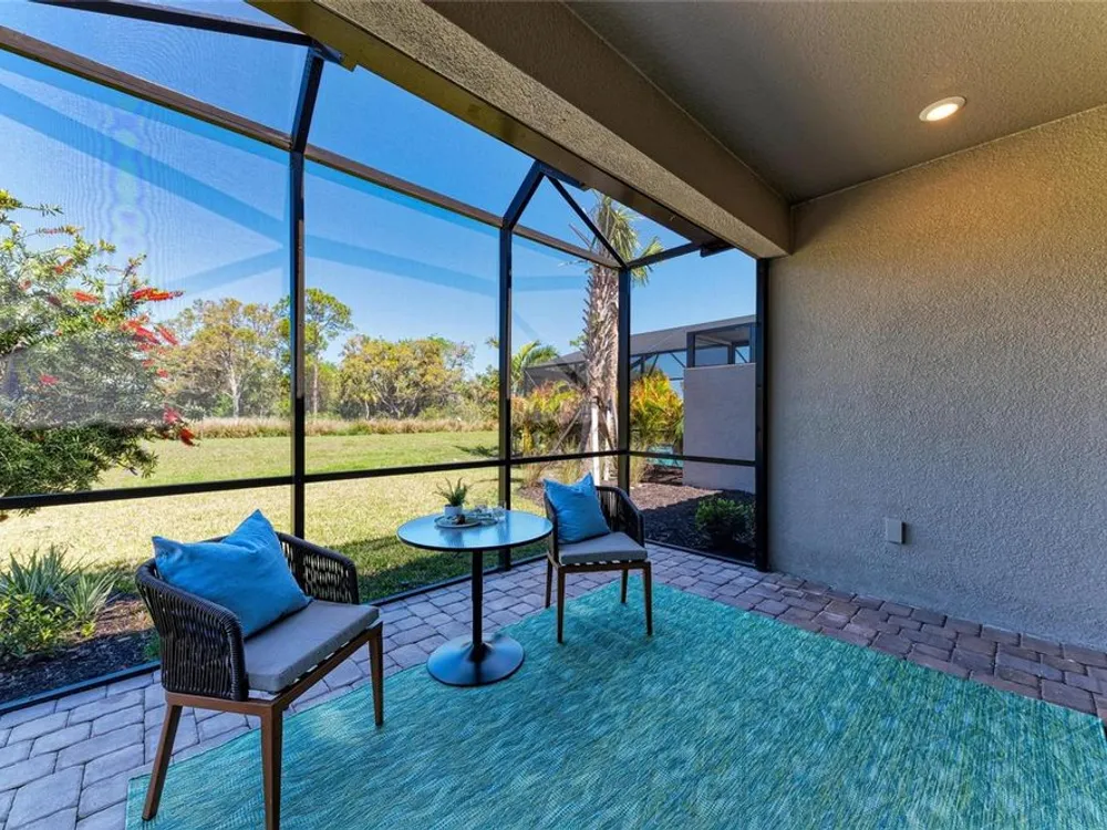 Embrace the best of Florida living in this beautifully crafted 2024-built villa, where timeless design and everyday comfort come together in the desirable, maintenance-free community of Esplanade at The Heights. Nestled within a gated neighborhood offering resort-inspired amenities and an unbeatable location, this popular Ibis twin villa by Taylor Morrison impresses with two bedrooms, two bathrooms, and a versatile study/den that can easily serve as a third bedroom. Thoughtfully selected upgrades throughout add comfort, sophistication, and functionality. For peace of mind, impact-resistant windows and sliding glass doors offer energy efficiency, a quiet interior, and protection without the need for storm shutters—perfect for seasonal residents or full-time homeowners alike. The Gathering Room welcomes you with abundant natural light, an elegant tray ceiling with recessed lighting, and sliders that open to an extended screened-in lanai overlooking tranquil preserve views—a perfect spot for morning coffee or evening relaxation. The chef’s kitchen is a showstopper with natural gas cooking, a charming farmhouse sink, quartz countertops, customized pantry closet, and pull-out drawers—all illuminated by sunshine from a picturesque window. The adjacent dining area, complete with a tray ceiling and stylish chandelier, is ideal for hosting family and friends. The primary suite offers a serene retreat at the rear of the home, featuring a tray ceiling, laminate flooring, and a spa-like en-suite bath with a frameless glass shower and spacious walk-in closet. The guest bedroom, also with laminate flooring, includes a private en-suite bath and is conveniently located near the study/den, which boasts pocket doors and recessed lighting for privacy and versatility. Additional highlights include a well-appointed laundry room with a sink, storage cabinet, and newer washer and dryer units; 8-foot doors; smart home features; and chic pendant lighting over the breakfast bar. The two-car garage is equally impressive, featuring epoxy flooring and a reinforced storm-rated garage door. Life at Esplanade at The Heights is all about enjoying every day. The community’s clubhouse offers a full-service spa, fitness center, and on-site Lifestyle Manager who curates engaging events and social gatherings. Outdoor amenities include a resort-style heated pool, cabana, and lighted courts for tennis, pickleball, and bocce ball. Residents can also enjoy picturesque trails on Mount Tumalo, fitness stations, a Bark Park, and numerous clubs and activity groups. Perfectly located near top-rated schools, UTC shopping and dining, downtown Sarasota and Bradenton, I-75, and Gulf Coast beaches—and with no CDD fee—this home delivers the best of Florida’s relaxed, luxury lifestyle.