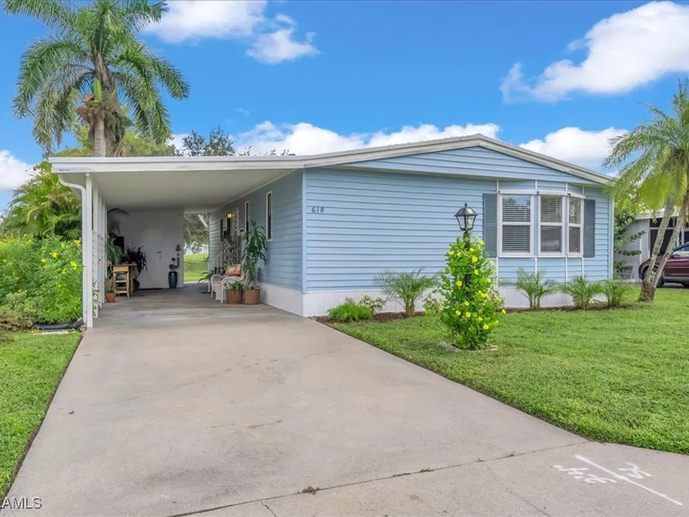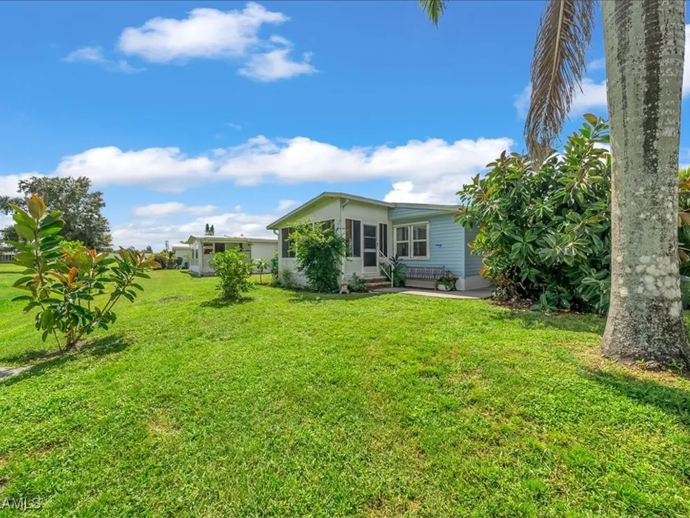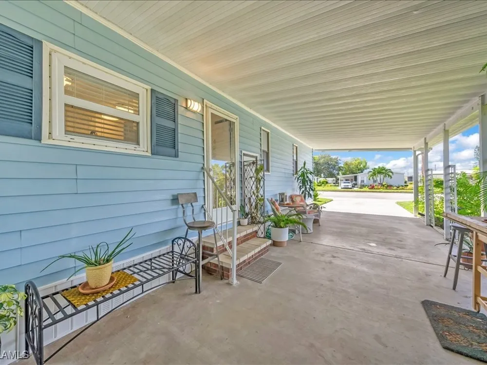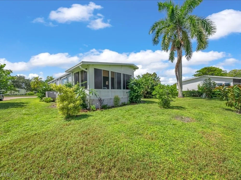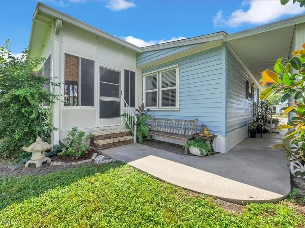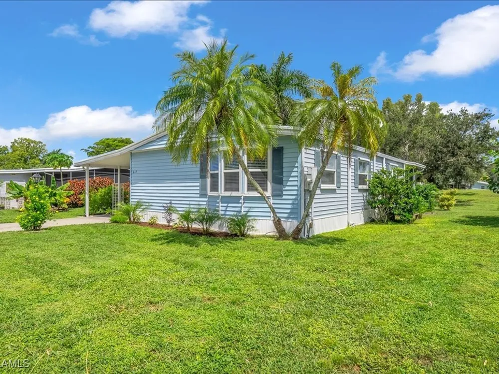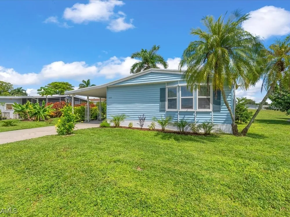 Do not miss this opportunity - extensive updates, light and bright home in the popular 55+ community of Riviera Golf Estates with low HOA's. Yes! You own the land! New SHINGLE roof 2020, all new windows 2021, entire skirting completed September 2025. Underneath foundation completely redone September 2025, including anchor tie downs, leveling and lifetime warrantied vapor barrier. New washer & dryer & refrigerator 2024, luxury vinyl plank flooring & new plywood under in 2024. Updated guest bathroom, and freshly painted large primary bedroom. Vaulted ceilings in a light filled great room, with a dining area and built in cabinets just off the kitchen. The great room opens out to a large Florida room where you have views of the open landscaped backyard area, very private. Kitchen is updated with newer stainless steel appliances, and great flow to the rest of the home. Outside sitting areas, gardens to view, and a spacious storage shed with washer and dryer located within the carport area, feels like an extension of the inside! Very friendly community featuring a newly done saltwater pool, with lap lanes, many social activities in the clubhouse. Enjoy the fitness and billiard rooms, pickleball, tennis, bocce and shuffleboard! All of this located just 15 mintues from the famous 5th Ave restaurants & boutiques and the gorgeous Gulf beaches!