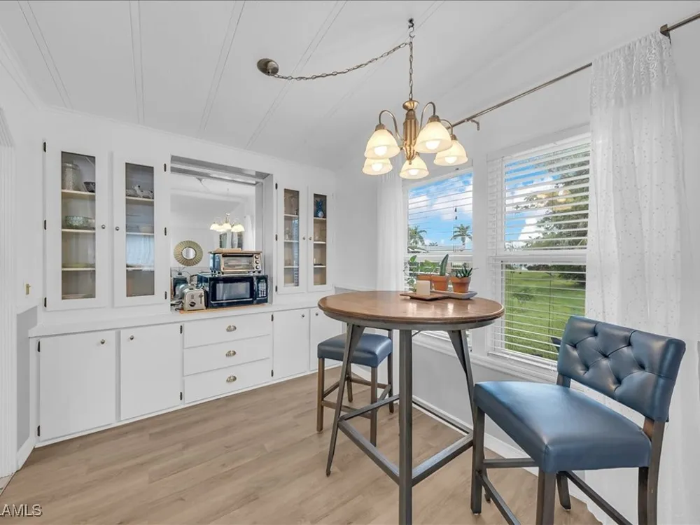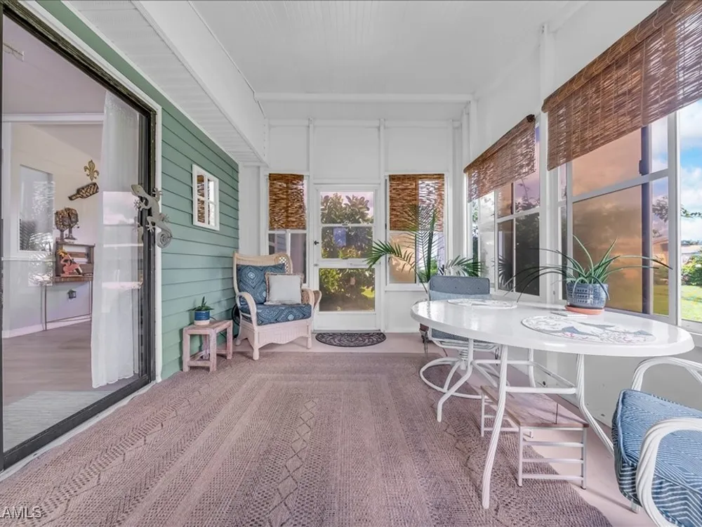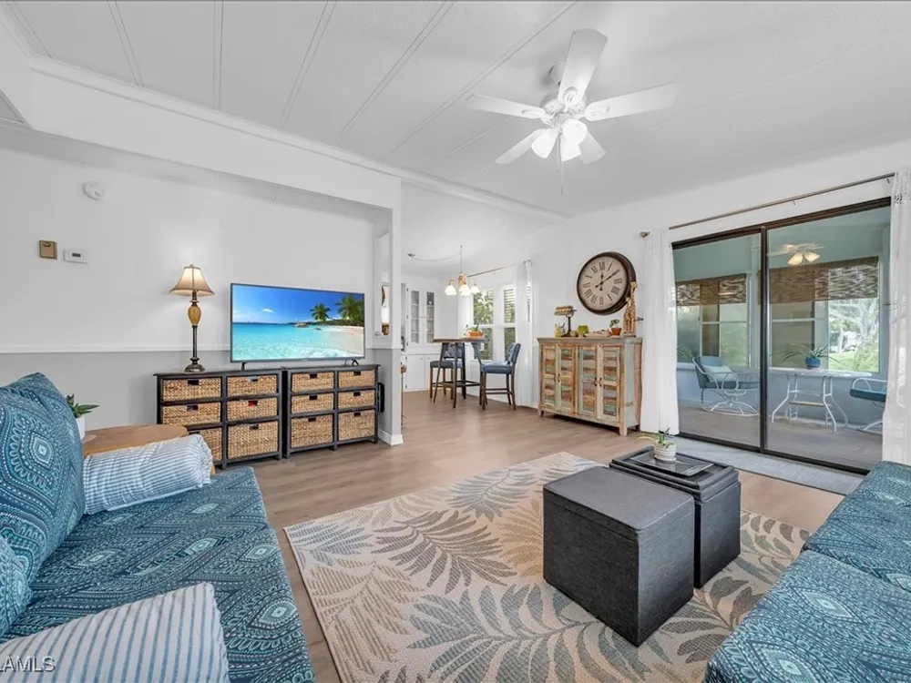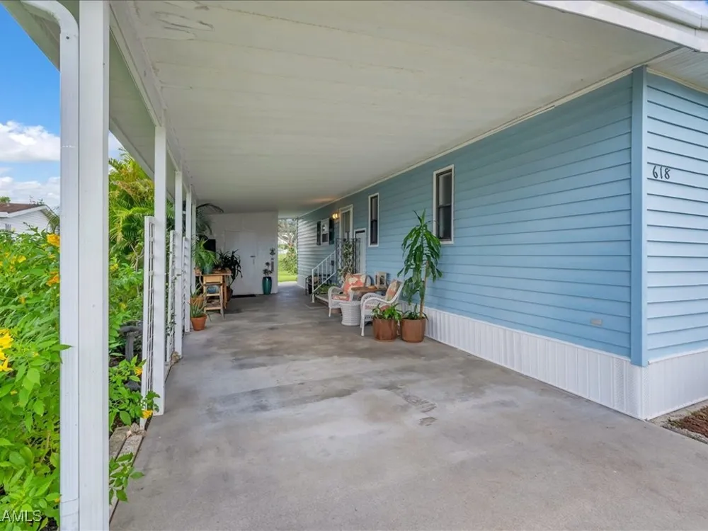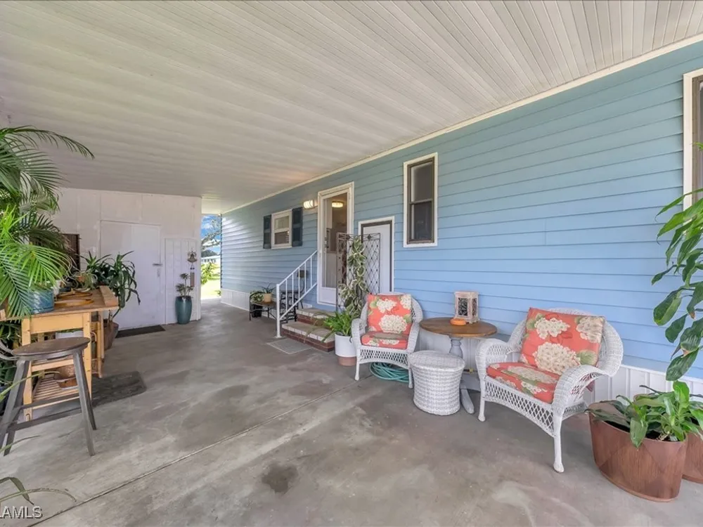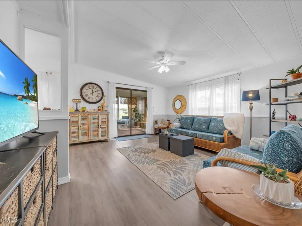 Do not miss this opportunity - extensive updates, light and bright home in the popular 55+ community of Riviera Golf Estates with low HOA's. Yes! You own the land! New SHINGLE roof 2020, all new windows 2021, entire skirting completed September 2025. Underneath foundation completely redone September 2025, including anchor tie downs, leveling and lifetime warrantied vapor barrier. New washer & dryer & refrigerator 2024, luxury vinyl plank flooring & new plywood under in 2024. Updated guest bathroom, and freshly painted large primary bedroom. Vaulted ceilings in a light filled great room, with a dining area and built in cabinets just off the kitchen. The great room opens out to a large Florida room where you have views of the open landscaped backyard area, very private. Kitchen is updated with newer stainless steel appliances, and great flow to the rest of the home. Outside sitting areas, gardens to view, and a spacious storage shed with washer and dryer located within the carport area, feels like an extension of the inside! Very friendly community featuring a newly done saltwater pool, with lap lanes, many social activities in the clubhouse. Enjoy the fitness and billiard rooms, pickleball, tennis, bocce and shuffleboard! All of this located just 15 mintues from the famous 5th Ave restaurants & boutiques and the gorgeous Gulf beaches!