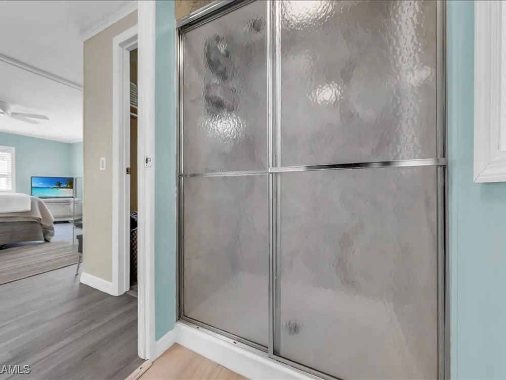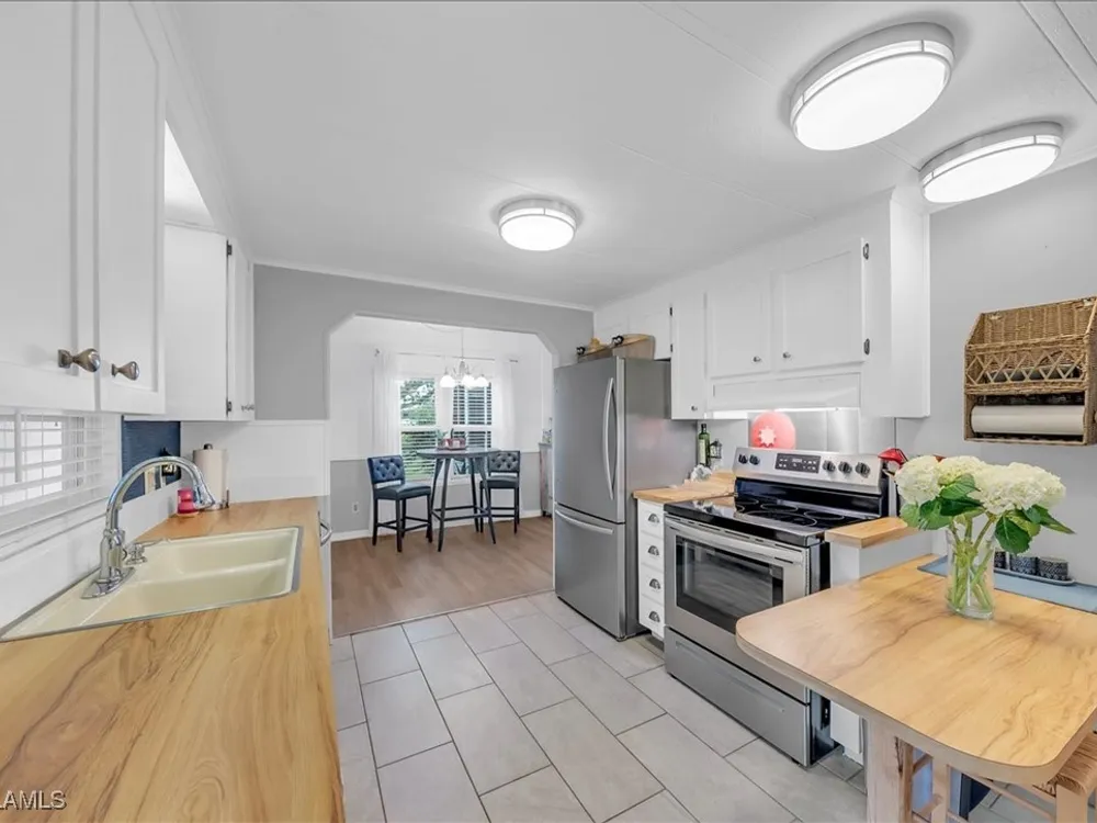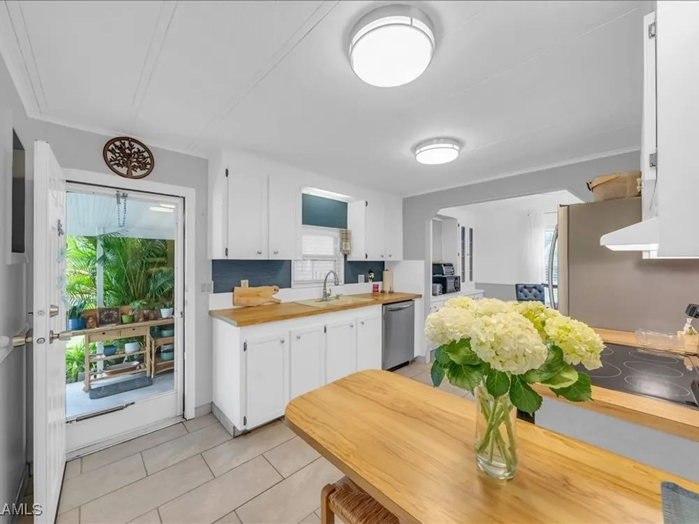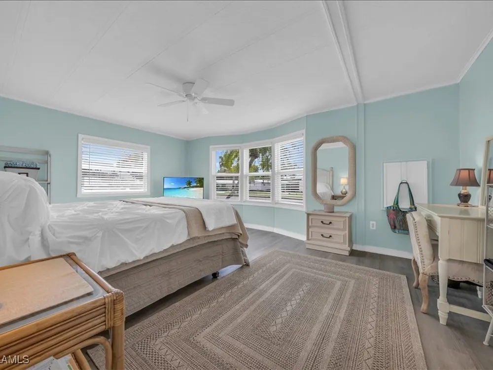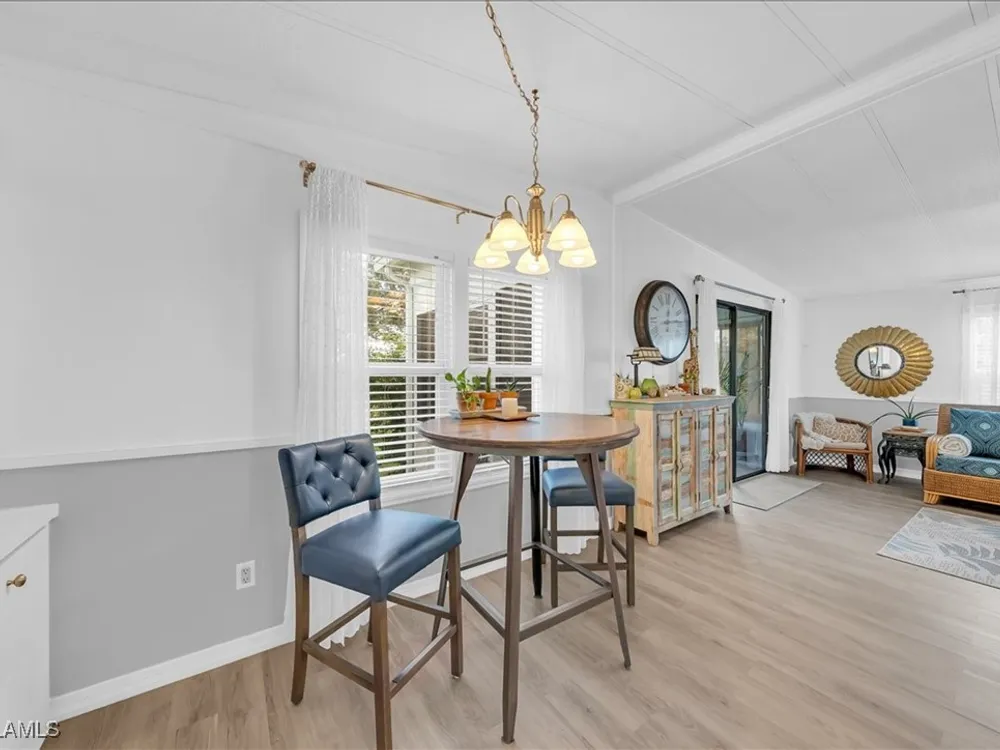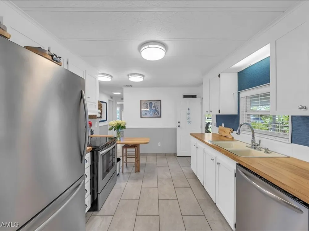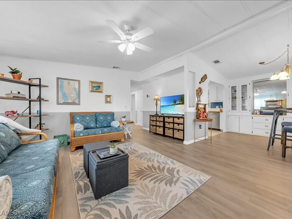 Do not miss this opportunity - extensive updates, light and bright home in the popular 55+ community of Riviera Golf Estates with low HOA's. Yes! You own the land! New SHINGLE roof 2020, all new windows 2021, entire skirting completed September 2025. Underneath foundation completely redone September 2025, including anchor tie downs, leveling and lifetime warrantied vapor barrier. New washer & dryer & refrigerator 2024, luxury vinyl plank flooring & new plywood under in 2024. Updated guest bathroom, and freshly painted large primary bedroom. Vaulted ceilings in a light filled great room, with a dining area and built in cabinets just off the kitchen. The great room opens out to a large Florida room where you have views of the open landscaped backyard area, very private. Kitchen is updated with newer stainless steel appliances, and great flow to the rest of the home. Outside sitting areas, gardens to view, and a spacious storage shed with washer and dryer located within the carport area, feels like an extension of the inside! Very friendly community featuring a newly done saltwater pool, with lap lanes, many social activities in the clubhouse. Enjoy the fitness and billiard rooms, pickleball, tennis, bocce and shuffleboard! All of this located just 15 mintues from the famous 5th Ave restaurants & boutiques and the gorgeous Gulf beaches!