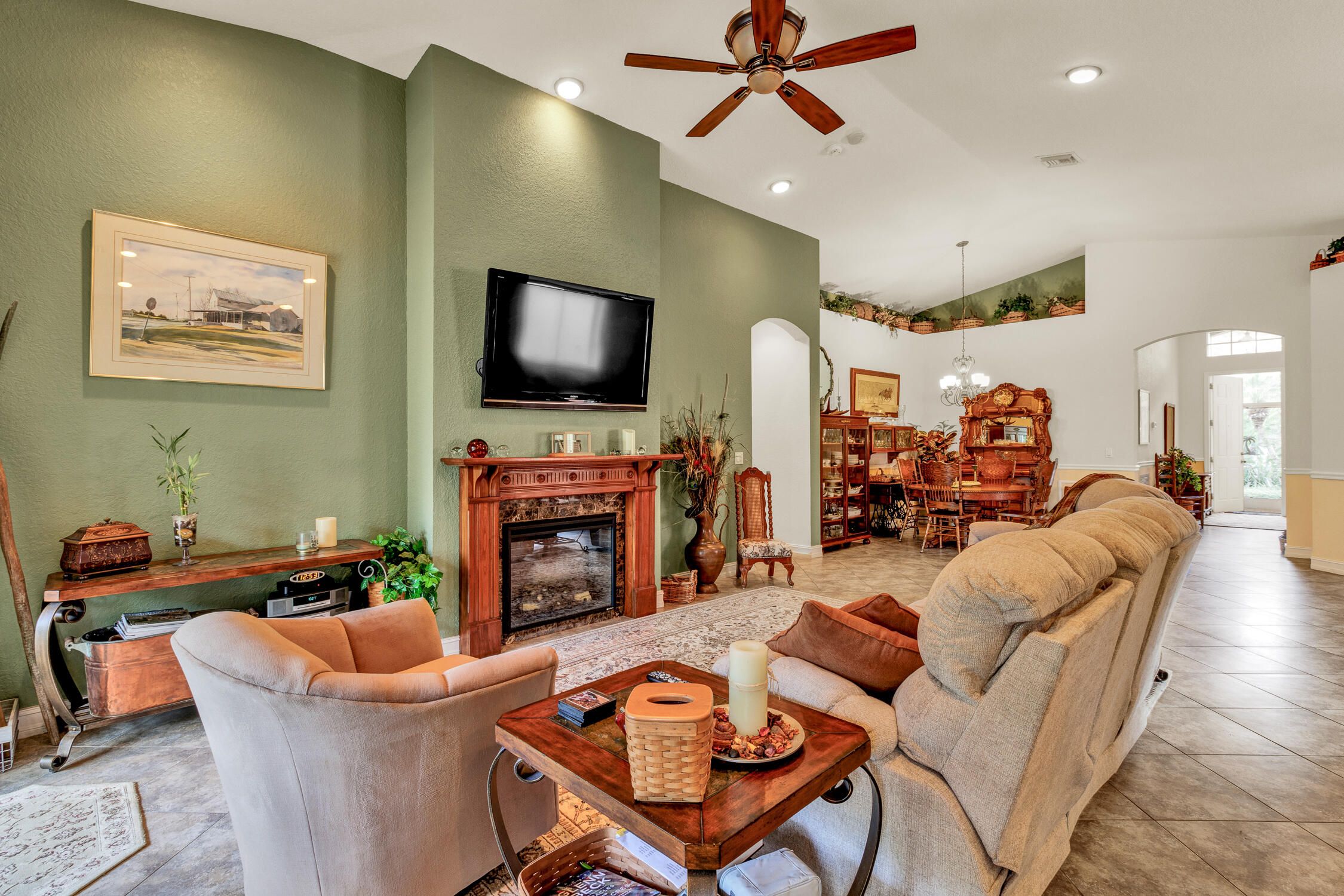 What a private setting. The kitchen is large and has a spacious eat-in area. Vaulted ceilings. Built-in electric fireplace. Very large newly re-screened lanai overlooks a preserve & is full of peaceful views. Bay window in the primary bedroom. Airconditioned 2-car garage. Fully tiled home. No carpet here! Clubhouse w/heated pool & spa, lots of social activities, bocce ball, tennis, billiards & fitness center. Cable TV & internet included in the HOA. Close to Vero's great beaches. Must see!