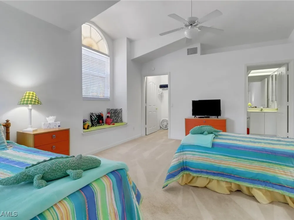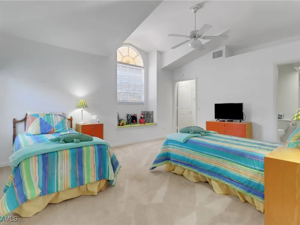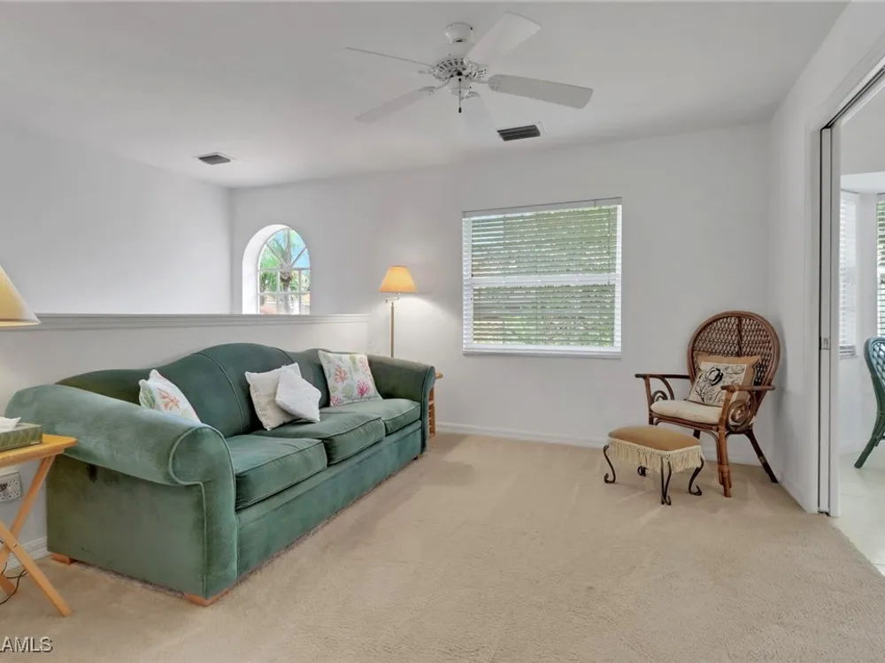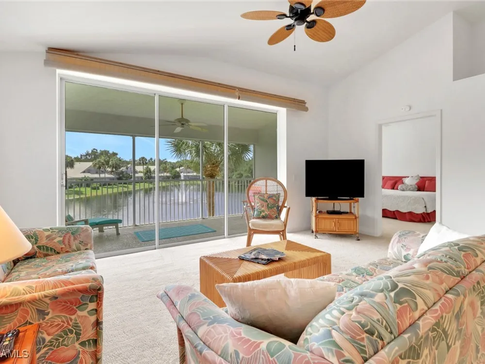 Welcome to this light and bright second-floor condo offering 3 spacious bedrooms, a versatile den, and 3 full bathrooms. Located in the highly desirable Clubside Reserve neighborhood within The Vineyards, this residence is perfectly positioned just 50 steps from the mailboxes and 60 steps from the community pool—convenience at its best! Enjoy serene lake and fountain views from the comfort of your screened lanai, where the evening ambiance is enhanced by the fountain’s soft night lighting. Inside, the freshly painted interior offers an inviting, open layout filled with natural light. A chair lift provides easy access between floors, making the home accessible for all. This property is being sold fully furnished for your convenience, though furnishings are optional for those who prefer a fresh start. Whether you’re looking for a seasonal retreat or full-time residence, this condo checks all the boxes. Don’t miss this rare opportunity to own in one of Naples’ most sought-after communities!