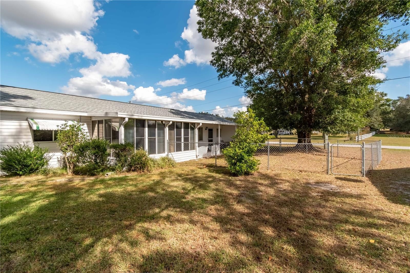 Welcome home to this beautifully maintained 2-bedroom, 2-bath residence in the sought-after Spruce Creek 55+ community of Ocala. This fully furnished turn key gem is move-in ready — right down to the dishes, pots, and pans — so you can start enjoying Florida living from day one! This home would be great for the snow bird who wants to move right in without a lot of fuss. The cute front porch is fully screened and is pleasant for sitting out and enjoying the Florida evenings. Step inside to find a warm country-style decor with comfortable furnishings and plenty of natural light. The home features a spacious Florida room with air conditioning, perfect for year-round relaxation or entertaining guests. There is a long covered porch off of the Florida room for additional relaxation and for enjoying quiet mornings or evening breezes. A new roof (November 2025) and low-maintenance vinyl siding provide peace of mind and easy upkeep. The fenced backyard offers a distinct space for pets, gardening or just distinguishing your own yard space. You’ll also appreciate the 2-car garage which has been painted and has finished floors. There is a distinct work area with plenty of cabinetry. The laundry is also out here and there is an access door to the backyard. Spruce Creek offers wonderful amenities including a clubhouse, community pool, and a full calendar of social activities — everything you need to stay connected and have fun in this friendly and active community lifestyle. Enjoy the best of Ocala’s 55+ living — comfort, community, and carefree living all in one! Best of all this is not an HOA community. There is a low monthly fee to cover some of the homeowner fees including shared amenities, trash, pickup, security and water. Come and check out this beautiful and cozy home today!