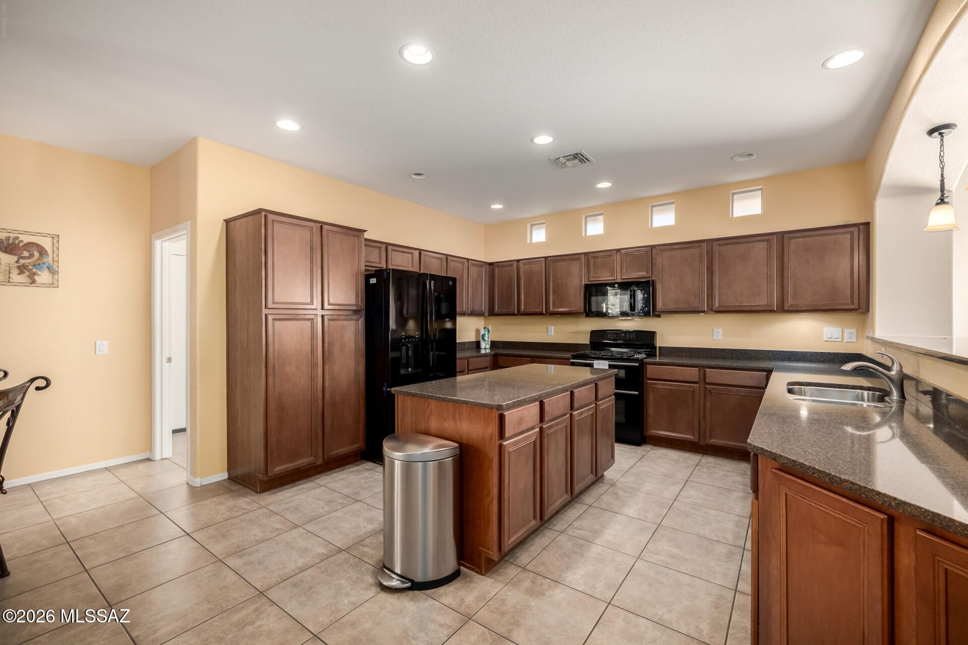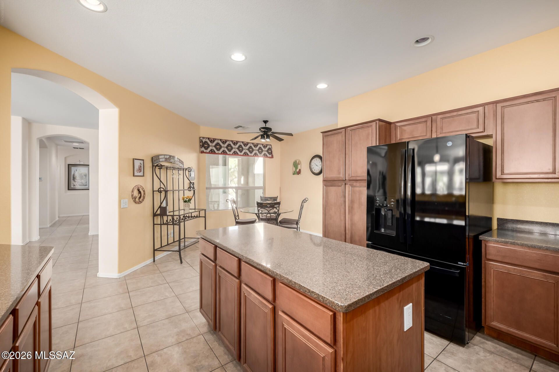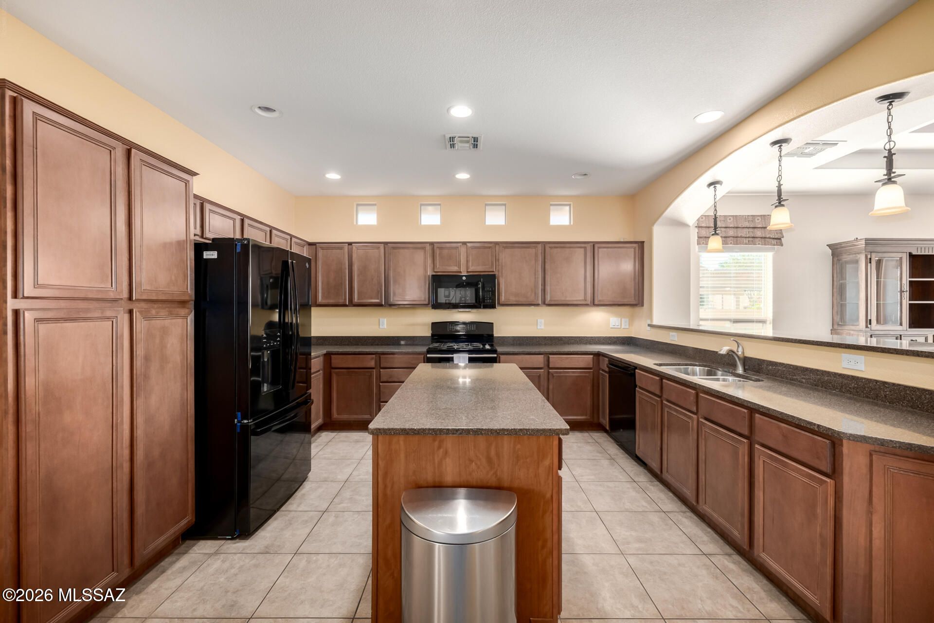 Prepare to be amazed! Check out this fantastic 2 bed, 2 bath with a den property now for sale in Saddlebrooke! Nestled on a premium corner lot and featuring great curb appeal, a low-maintenance desert landscape, a 2-car garage, and a paver driveway. Step inside to discover a spacious great room with a custom palette throughout--perfect for entertaining. The fabulous kitchen is equipped with ample cabinetry, granite countertops, recessed lighting, built-in appliances, a center island, serving window, and a cozy breakfast nook. You'll love the primary suite, boasting elegant wood-look flooring, a carpeted walk-in closet, and a private bath with dual vanities.