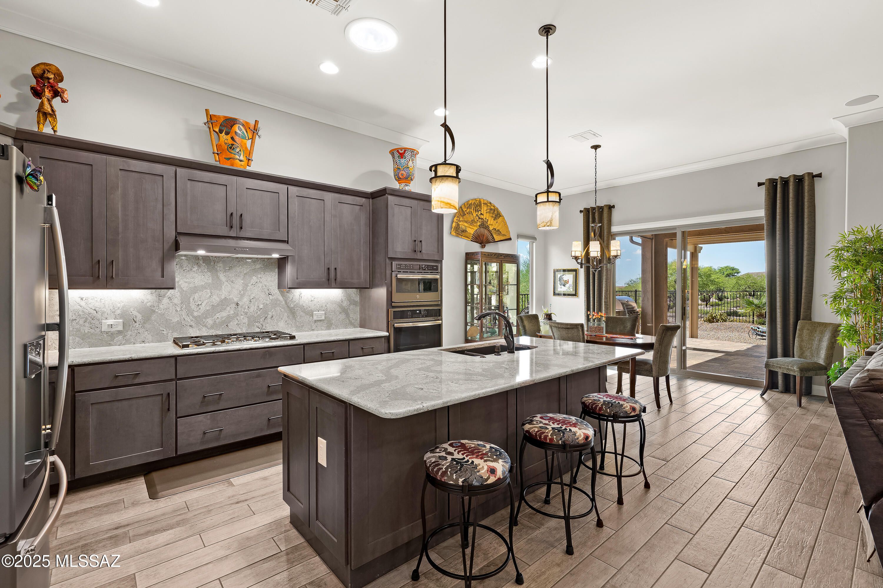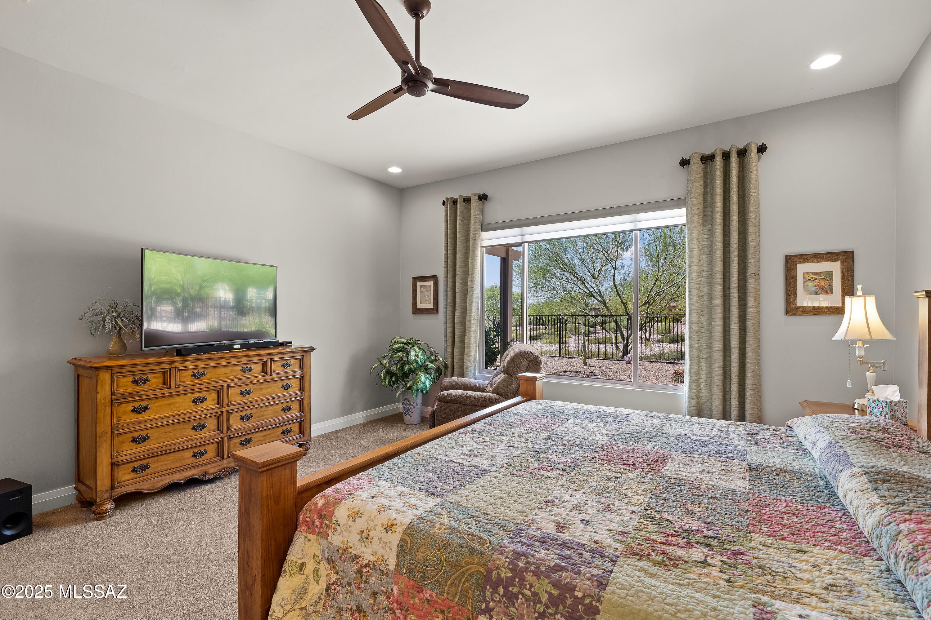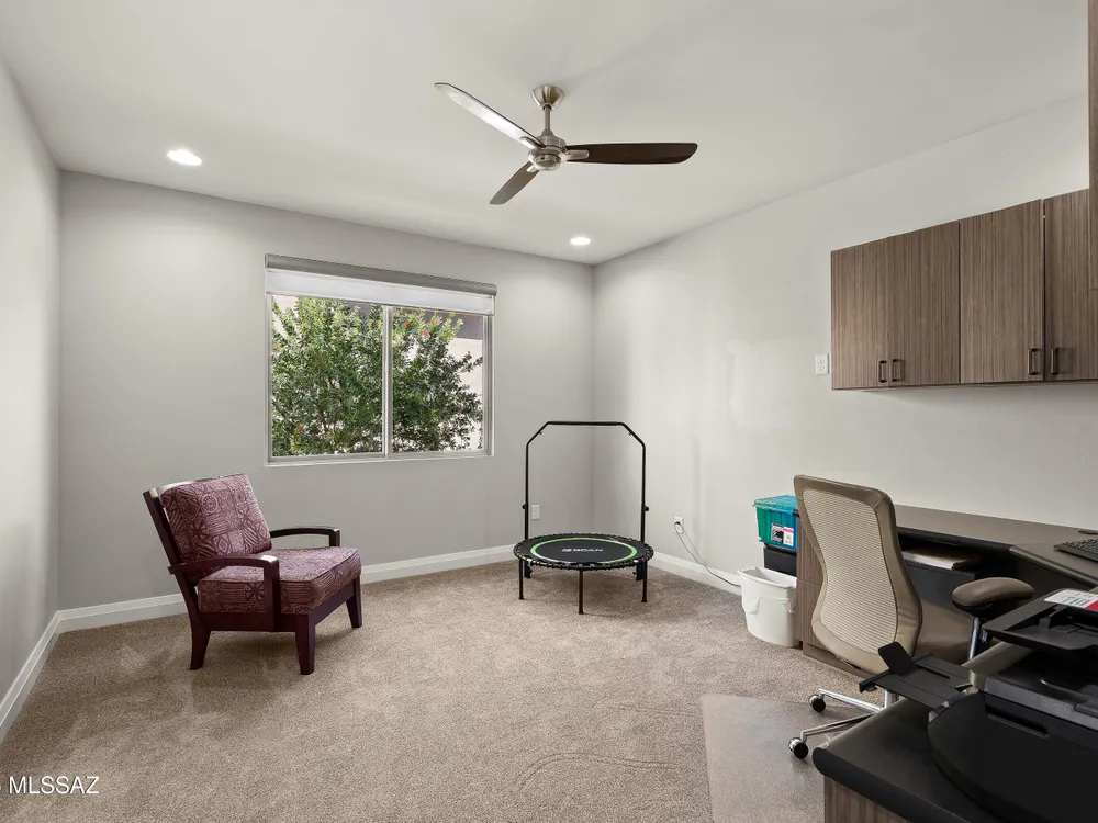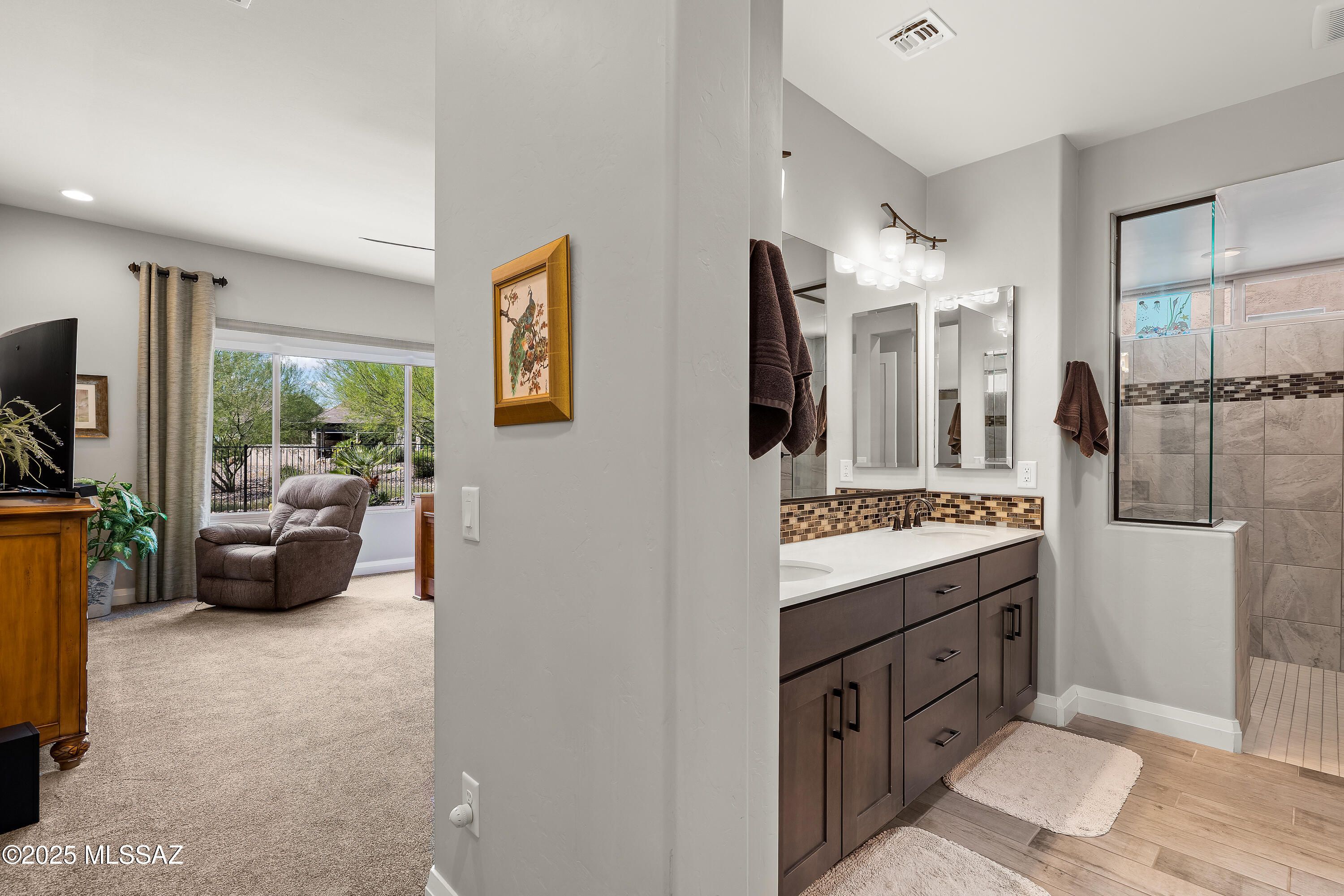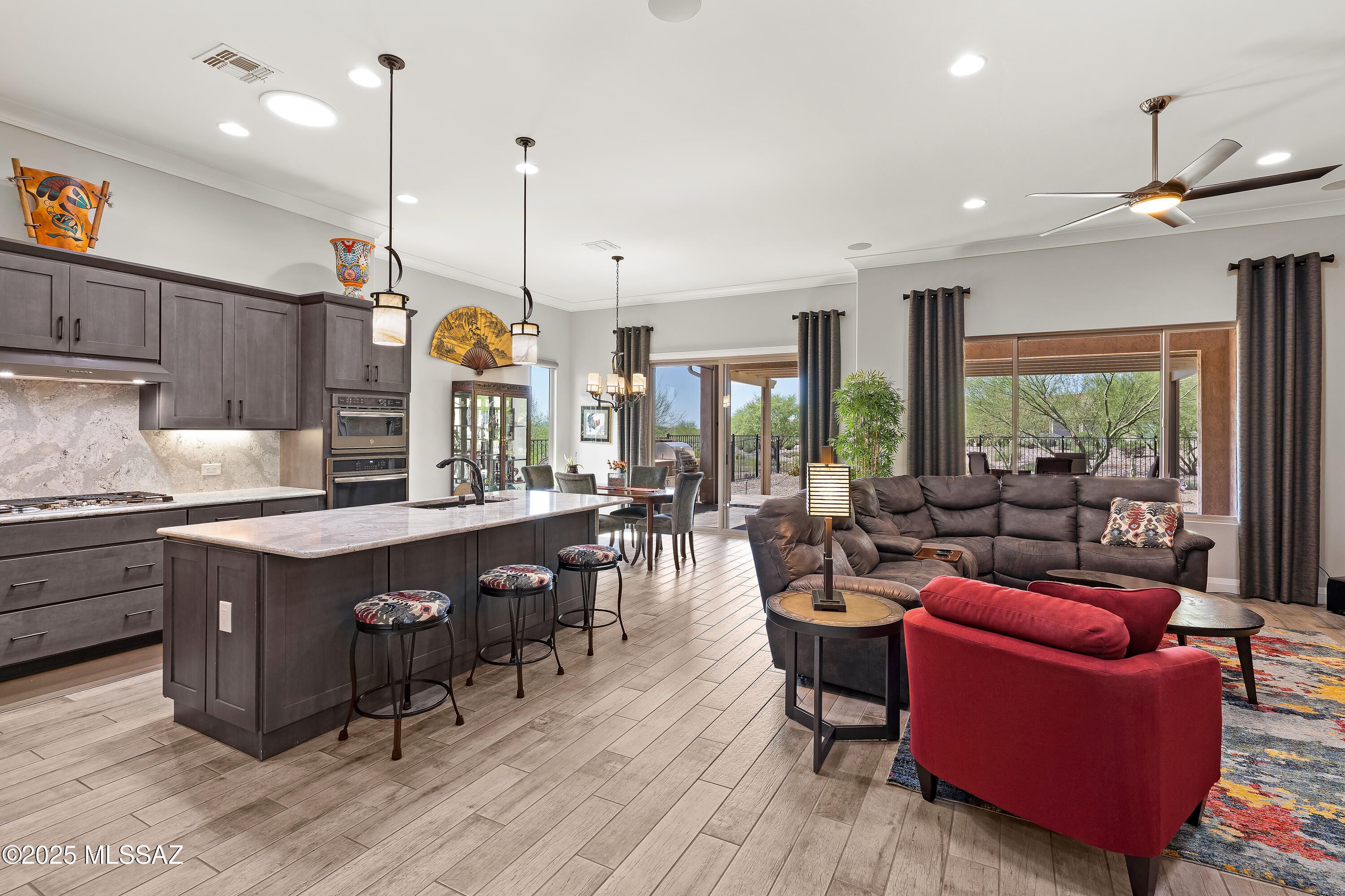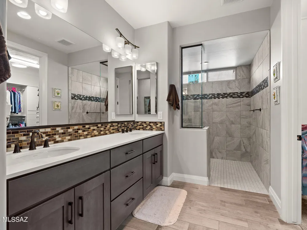 Discover the Popular Alora Model in SaddleBrooke Ranch! Step into this beautifully upgraded and meticulously maintained Alora home, perfectly located in the vibrant, resort-style community of SaddleBrooke Ranch. Designed for both comfort and entertaining, this residence boasts a chef's kitchen complete with stainless steel appliances, quartz countertops, and upgraded cabinetry--all seamlessly flowing into a spacious great room ideal for gatherings. The dedicated dining area opens to an extended covered patio with built-in BBQ and convenient rolling shades, perfect for indoor-outdoor living. The backyard is fully fenced and boasts an amazing pergola. Retreat to the private owner's suite, featuring a luxury walk-in shower, a custom-organized walk-in closet, and a peaceful atmosphere.